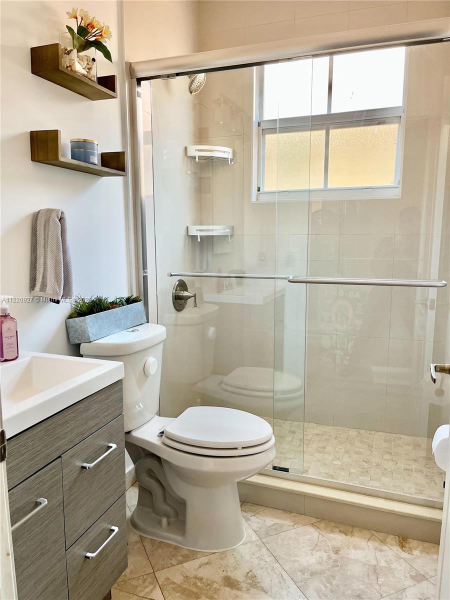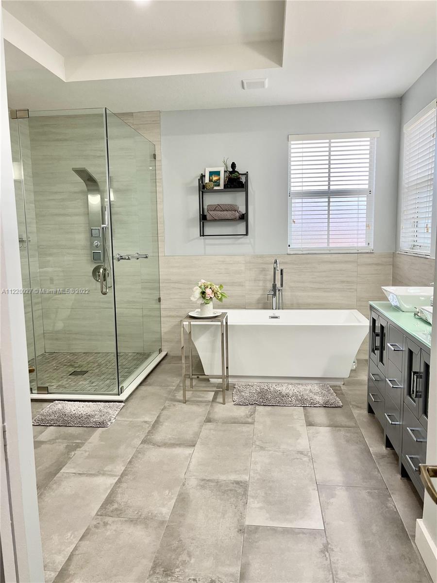 PRICE TO SELL! Gorgeous lake front home featuring 4 bedrooms and 4 full bathrooms (1 bedroom, 1 full bathroom downstairs). Located in one of the most sought out neighborhoods in Doral. Tastefully updated bathrooms and kitchen. Marble flooring throughout. Spacious master bedroom with a recently updated custom walk-in closet. There is also an additional loft area upstairs, which can be used as a study/office room or extra family room. Both A/C units are new. Enjoy relaxing days in your lakefront yard with a freshly placed lawn and new sprinkler system. The backyard is an empty canvas for you to build your entertainment area and/or pool. The home also has a seawall recently installed. Resort style amenities roaming security and much more.