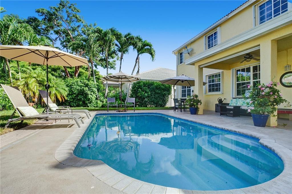 HUGE REDUCTION! Compare to other homes in Weston! Beautiful 5 bedroom, 3 bathroom home in the highly desirable community of The Ridges. Sparkling pool resurfaced 2 months ago, two new A/C units inside and out. High vaulted ceilings and one bedroom and bathroom downstairs. Upstairs is the large Master bedroom with a bonus room attached - can be used as an office, or at-home gym. All windows have hurricane accordion shutters and new hurricane impact sliding patio door. Fantastic Clubhouse, pool and many walking paths, running trails, parks and recreational areas. Walking distance to Weston Library, elementary, middle and high schools - All A+ schools. The perfect family home and neighborhood. Happy Hour - Friday August 5th 4-7pm.