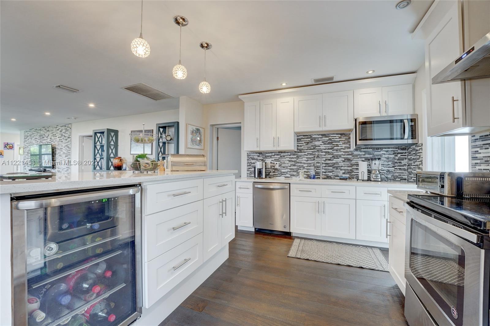 Beautiful Hollywood Hills remodeled four-bedrooms; two-bathroom, home is sure to grab your attention. The remodeled open concept kitchen is equipped with stainless steel appliances and a built in Wine fridge. This will be the perfect place for entertaining with friends and family. The home has recessed lighting throughout which brightens the expansive space. Custom walk-in closet in master bedroom, Hardwood flooring and hurricane impact Windows and doors. The circular driveway holds multiple vehicles and additional parking in the one car garage. Roof is less than four years old, and AC is less than two years old. Best of all no HOA fee. This home is ready to move in. Sale does NOT include Fireplace or Jacuzzi. ***PLEASE CONTACT LISTING AGENT TO SCHEDULE SHOWINGS***
