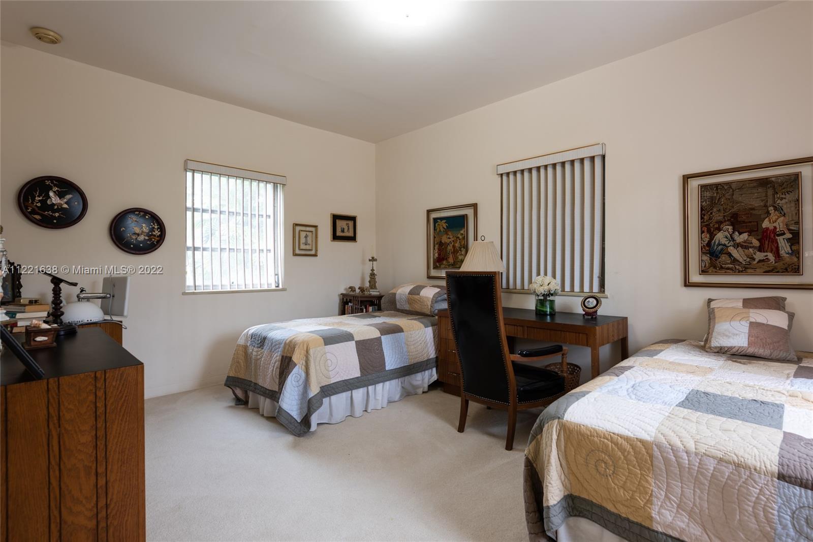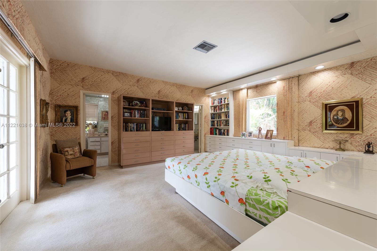 Grand home on exclusive La Gorce Island. This stately 5 bedroom 2 story home boasts a perfect layout. Featuring an elegant foyer entry leading to spacious living room with fireplace, oversize family room with built-in wet bar, formal dining room, and eat-in kitchen, are all part of the timeless design and architectural allure. Envious floor plan with 4 bedrooms and 4.5 baths upstairs, featuring a large principal suite with his and hers bathrooms, ample closets, and private access to oversized balcony. Impressive garden and grounds with private patio and room for a pool. Full house generator, 2 car garage, and separate laundry room. Great location, great lot, great potential. Square footage living area per appraisal is 4,098.