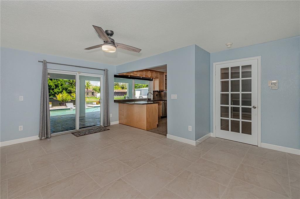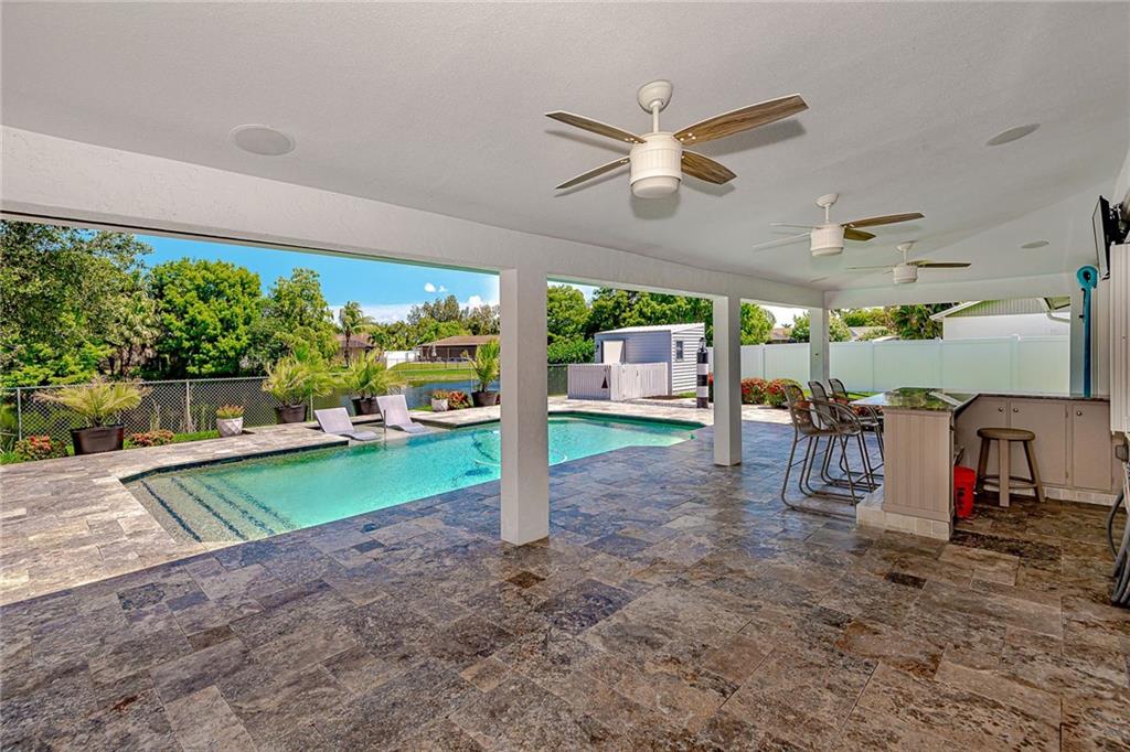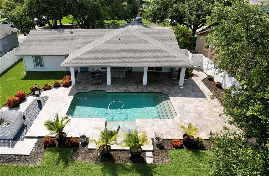 Original Owners kept this Lakefront Home in Magnificent Condition. Upgraded Patio 14X30 Vaulted roof. Granite top bar, 3 bar stools, 42 " TV & Large Gas BBQ Great for Entertaining! REMODELED heated pool w a Sun Ledge. Extended Travertine Deck, Patio & Walkways. Salt water system. Custom Kit cabinets, SS Appliances & Granite counters. Beautiful 24X24 Tiles in the Living, Dining, Family Rm & Halls. 9X36 Tiles in the Bedrms. Bathrms are Remodeled, Fam Bathrm has Marble Fls & walls! Mstr has custom walk in closet & 2nd bdrm has Custom Closets. Knockdown walls & ceilings. New A/C Unit. A/C in the 2CG Could be used as a Gym, Workshop or Storage. ALL DOORS & WINDOWS ARE HURRICANE IMPACT. Fully fenced backyard w double gated side entrance, Perfect for storing your Boat or RV. No Mandatory HOA!