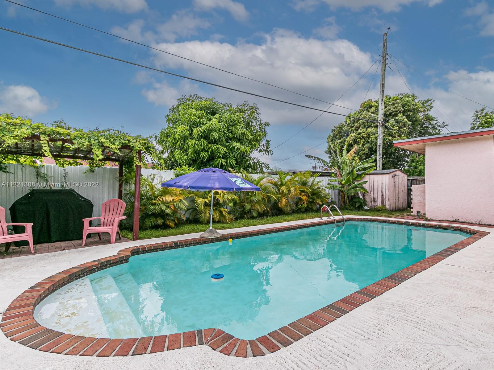 HOME WITH FULL POTENTIAL 3 BEDROOMS AND 2 1/2 BATHS WITH POOL, CARPOT, WE BAR. COVERED PATIO. ACCORDION HURRICAINE SHUTTERS. PRIVATE FENCE YARD. WITH ADDIONAL GUEST ROOM.HOUSE NEEDS WORKS.