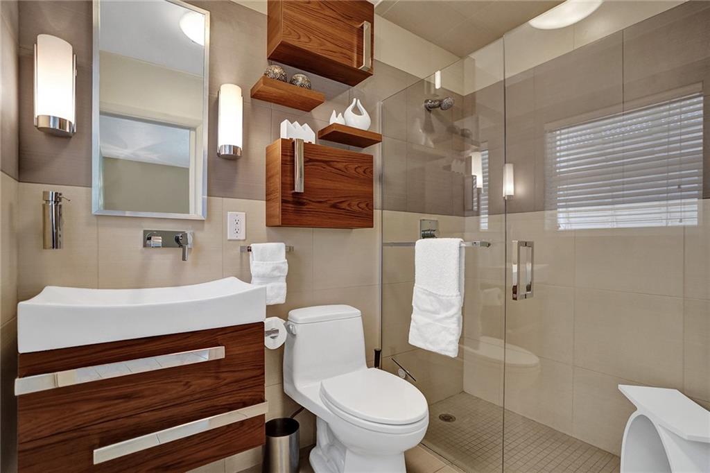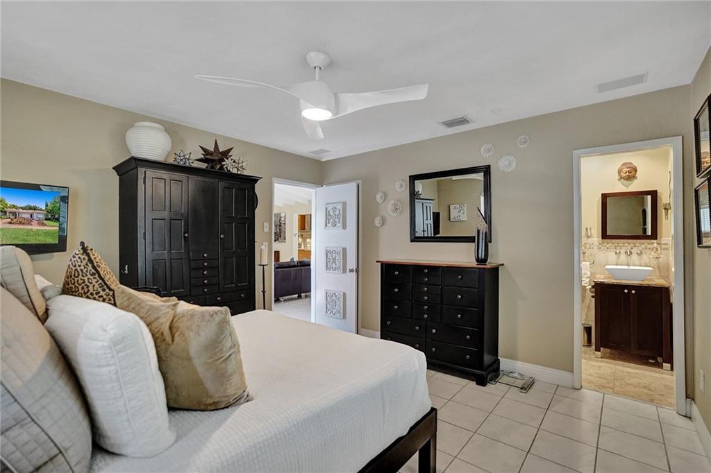 Beautiful & tastefully updated home located in hot Poinsettia Heights neighborhood! Wonderful open floor plan w/ spacious living room, cool vaulted beam ceilings & romantic wood burning fireplace. Amazing chefs kitchen with sleek modern Italian style cabinets, granite counters with breakfast bar & high-end stainless appliances. Generous size bedrooms both with en-suite bathrooms updated to the highest standards w/ floor-to ceiling tile, glass enclosed shower & ultra modern fixtures. Amazing rear garden totally fenced & private surrounded by lush tropical landscaping w/ ample space to design your own pool. Other notable features include; clay barrel tile roof 3 years old still under warranty, brand new A/C, Impact glass windows & doors in addition to accordion shutters for full protection.