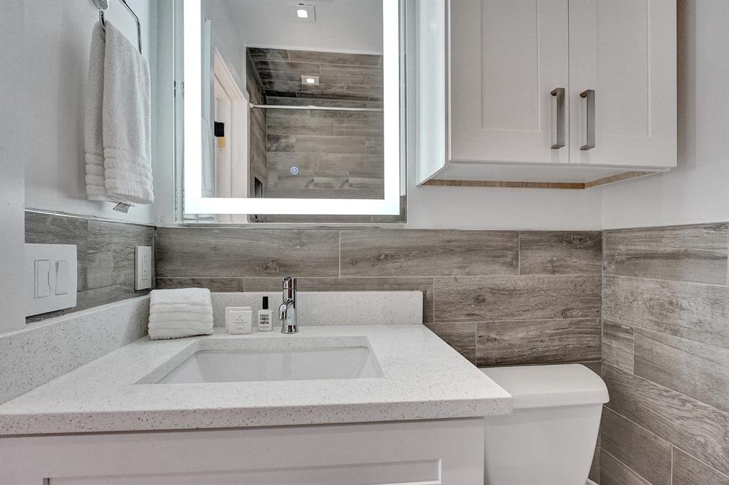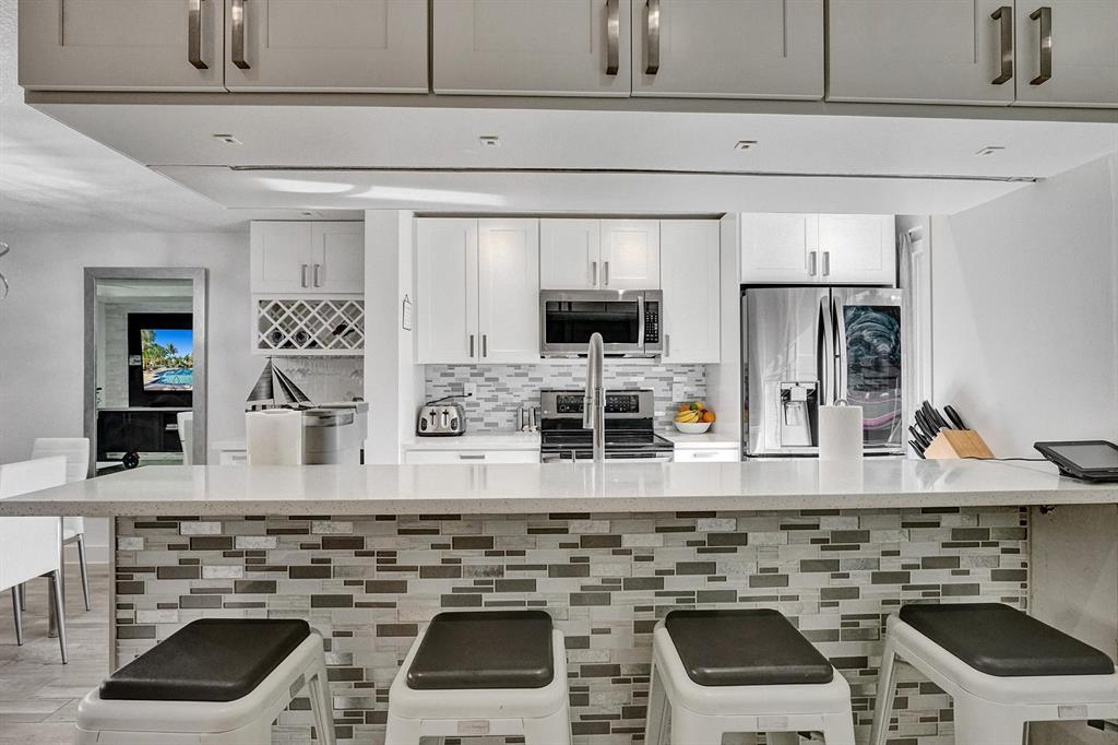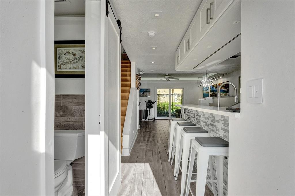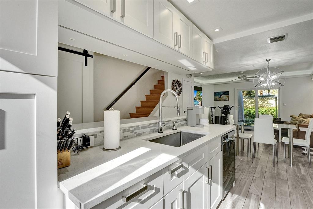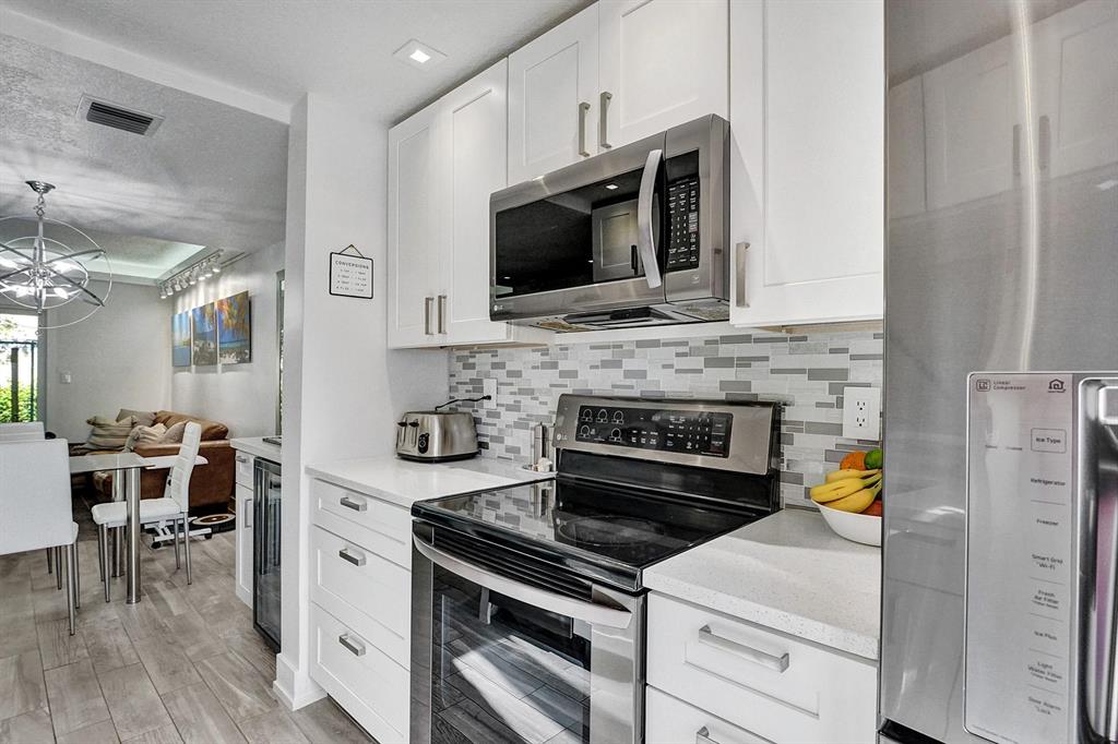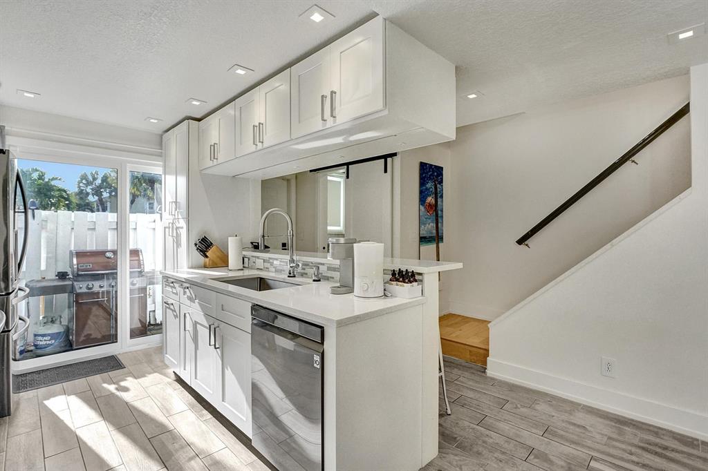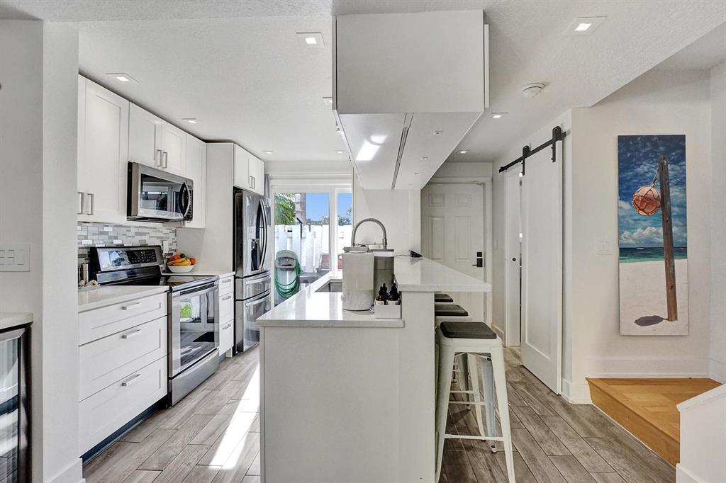 Welcome to one of Pompano Beaches FINEST townhomes. Located in the waterfront community of Sun Harbor, this garden view unit has undergone a HIGH END renovation where NO details were overlooked. EVERYTHING is done here so bring your clothes and toothbrush. LG appliances with oversized refrigerator in kitchen including washer/dryer upstairs. Updated electrical panel with generator input and easy transfer switch. LED recessed lighting through-out, IMPACT Windows and Sliding doors, white QUARTZ counter tops with custom white shaker cabinets. This unit has tons of additional cabinet and pantry storage as well as a TANKLESS water heater. Up the stairs you will find 2 main bedrooms with vaulted ceilings and En-suite baths. Bathroom features include double RAIN SHOWER heads, custom lighting and