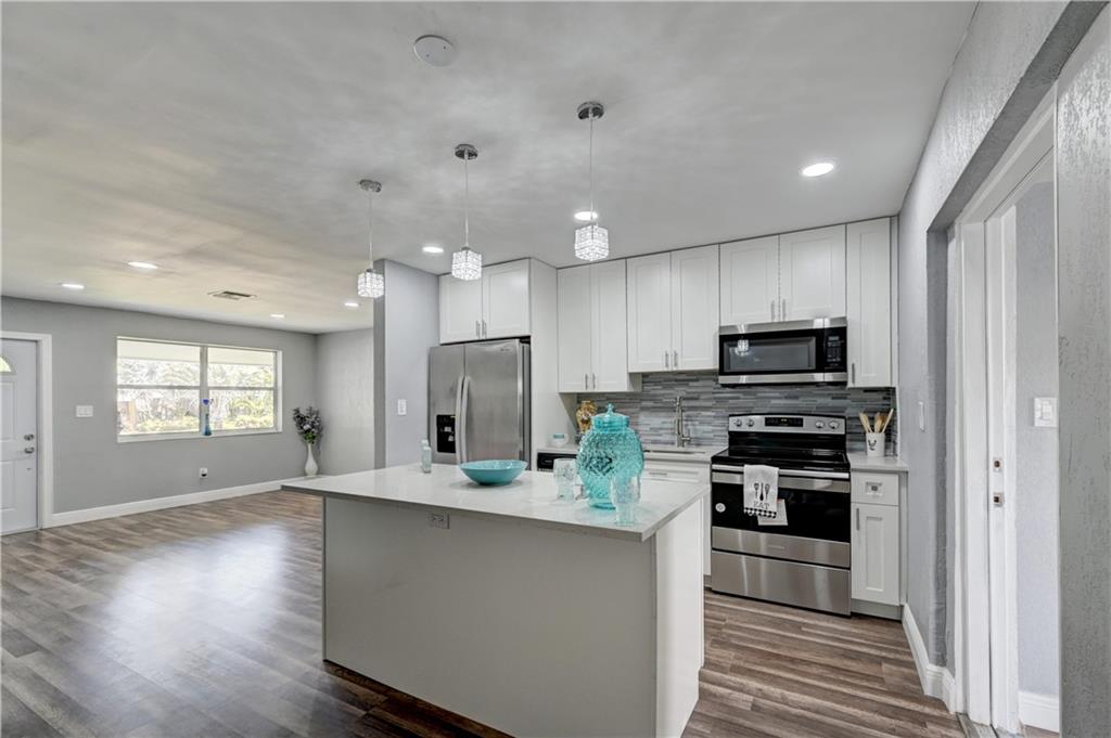 NEW*NEW*NEW comes to mind on this completely remodeled 4 bedrooms 2 bathrooms single family home located in East Pompano Beach! This open floor plan home features NEW shaker wood kitchen cabinets with NEW stainless-steel appliances & quartz counter tops, NEW flooring laminate in living areas and tile, NEW remodeled bathrooms, NEW light features and electrical main, NEWER AC handler, LIKE-NEW fence, NEW front and back landscaping, NEW paint inside and outside, NEW water heater, NEW laundry room, NEW ROOF... On top of this huge backyard with fruit trees & room for a boat, trailer tool shed and more... This perfect location is move-in ready with NO HOA, a mile from the beach, close to restaurants and shopping, close to I-95 and more... Don't missed this opportunity run before is gone!
