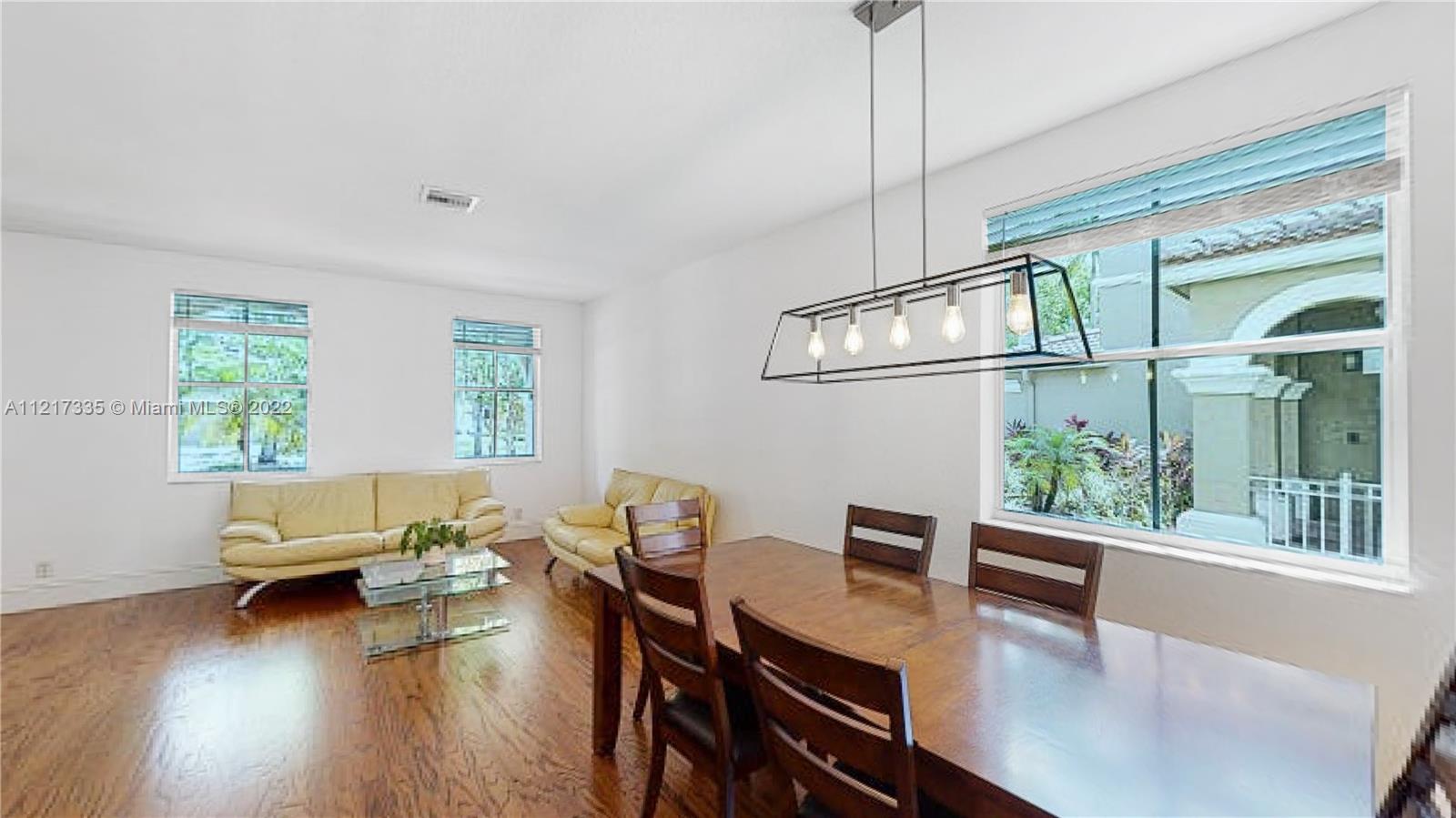 Immaculate two-story home located in a highly demand community of Savanna. This 2,800sf 4 bedroom/4-bathroom home has a spacious floor plan with great entertaining space. Upgrades include an open kitchen with 42” cabinets, quartz countertops and stainless-steel appliances. Formal dining area with built-in bar. Hardwood flooring throughout the house. Laundry room and full bath on 1st floor. Oversized private backyard with covered patio. Plenty of room for a swimming pool! Two AC units; 2015 and 2020. The community has amazing amenities including a clubhouse, resort-style pools, soccer field, biking/jogging trail, basketball courts, and more. A-rated school. Accordion Shutters upstairs- must see!