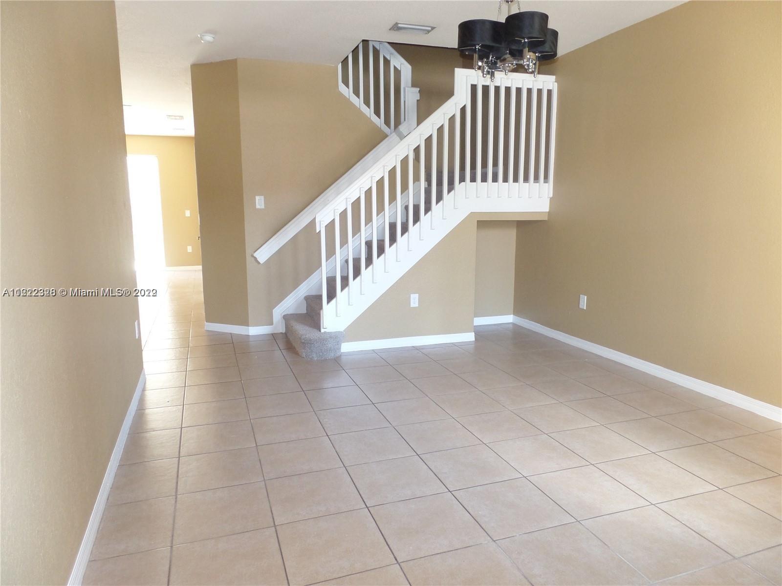 Beautiful townhome in the heart of Miramar. 4 bedrooms 3 full baths, 2 primary bedrooms, one of which is located on the first floor. The primary bedroom on the second floor has a retreat room/sitting area that could be an optional 5th bedroom(as per builder plan), convenient laundry room located on the second floor. Neutral tile downstairs, wood floor in the downstairs bedroom, upgraded kitchen with stainless appliances, formal living/dining area + family room, private fenced patio, 1 cg, and a spacious, open & liveable floorplan. Can't beat it with nearly 2200 sq feet of living space. Selling as-is but home is in very good condition with new AC 2021, and new exterior paint 2021. Tenant occupied until July 31, 2022. Please see broker remarks for showing instructions & add'l information.