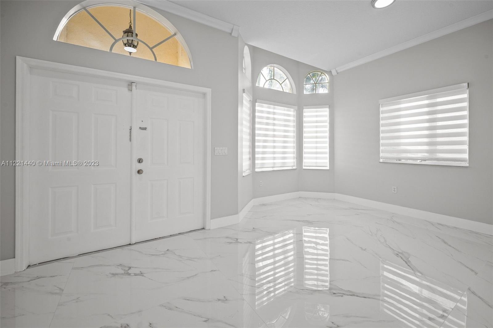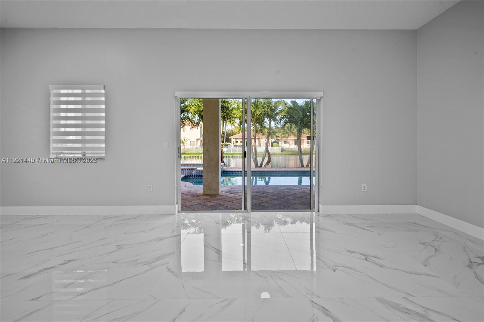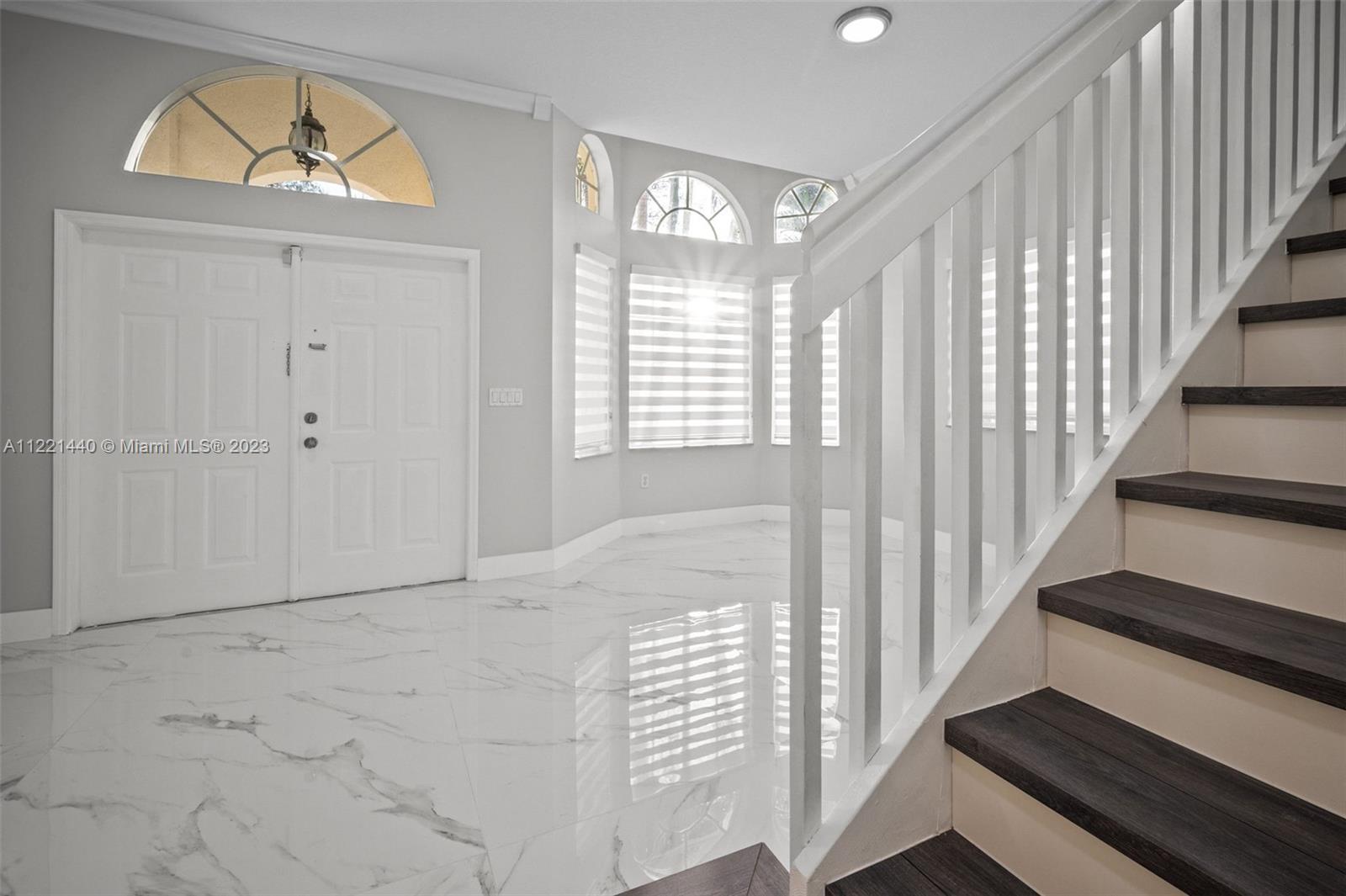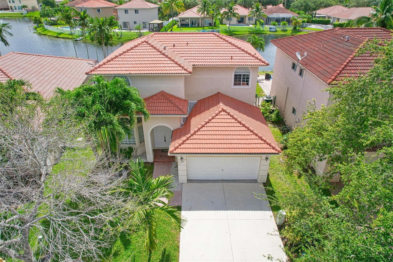 Meticulously upgraded waterfront 5 bedrooms home with private pool in the exclusive community of Monarch Lakes. Move-in ready home with brand new appliances. New flooring throughout the house, both floors. All bathrooms and kitchen remodeled with a modern design. The master bedroom is located in the first floor with direct access to the pool and a high-end master bath with a magical touch. The pool with jacuzzi and the lake front makes the backyard of this home perfect for outdoor entertainment and family relaxation. Vibrant and well located neighborhood.