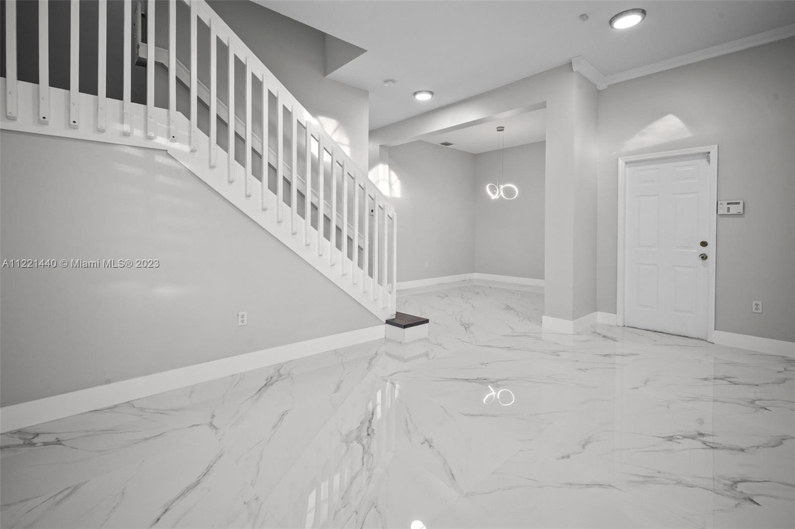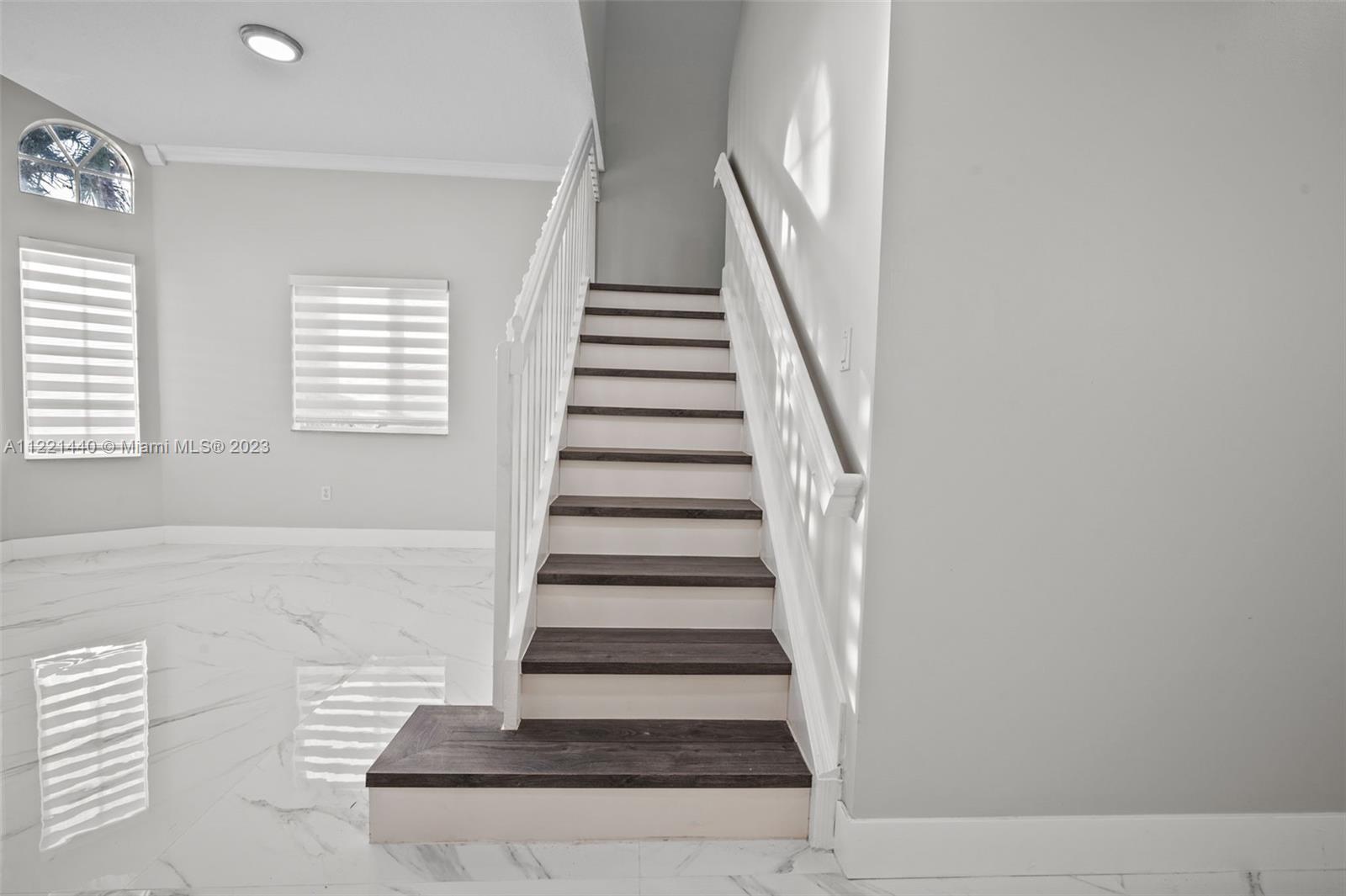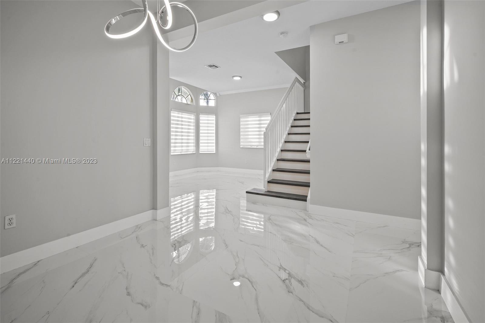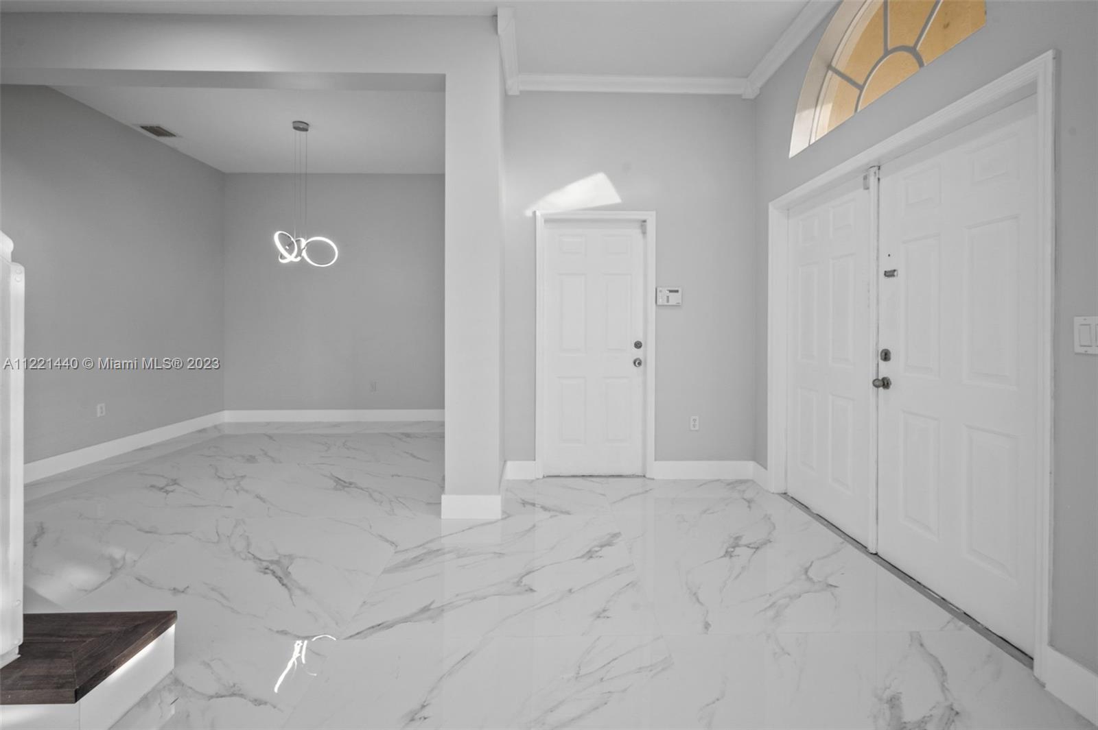 Meticulously upgraded waterfront 5 bedrooms home with private pool in the exclusive community of Monarch Lakes. Move-in ready home with brand new appliances. New flooring throughout the house, both floors. All bathrooms and kitchen remodeled with a modern design. The master bedroom is located in the first floor with direct access to the pool and a high-end master bath with a magical touch. The pool with jacuzzi and the lake front makes the backyard of this home perfect for outdoor entertainment and family relaxation. Vibrant and well located neighborhood.