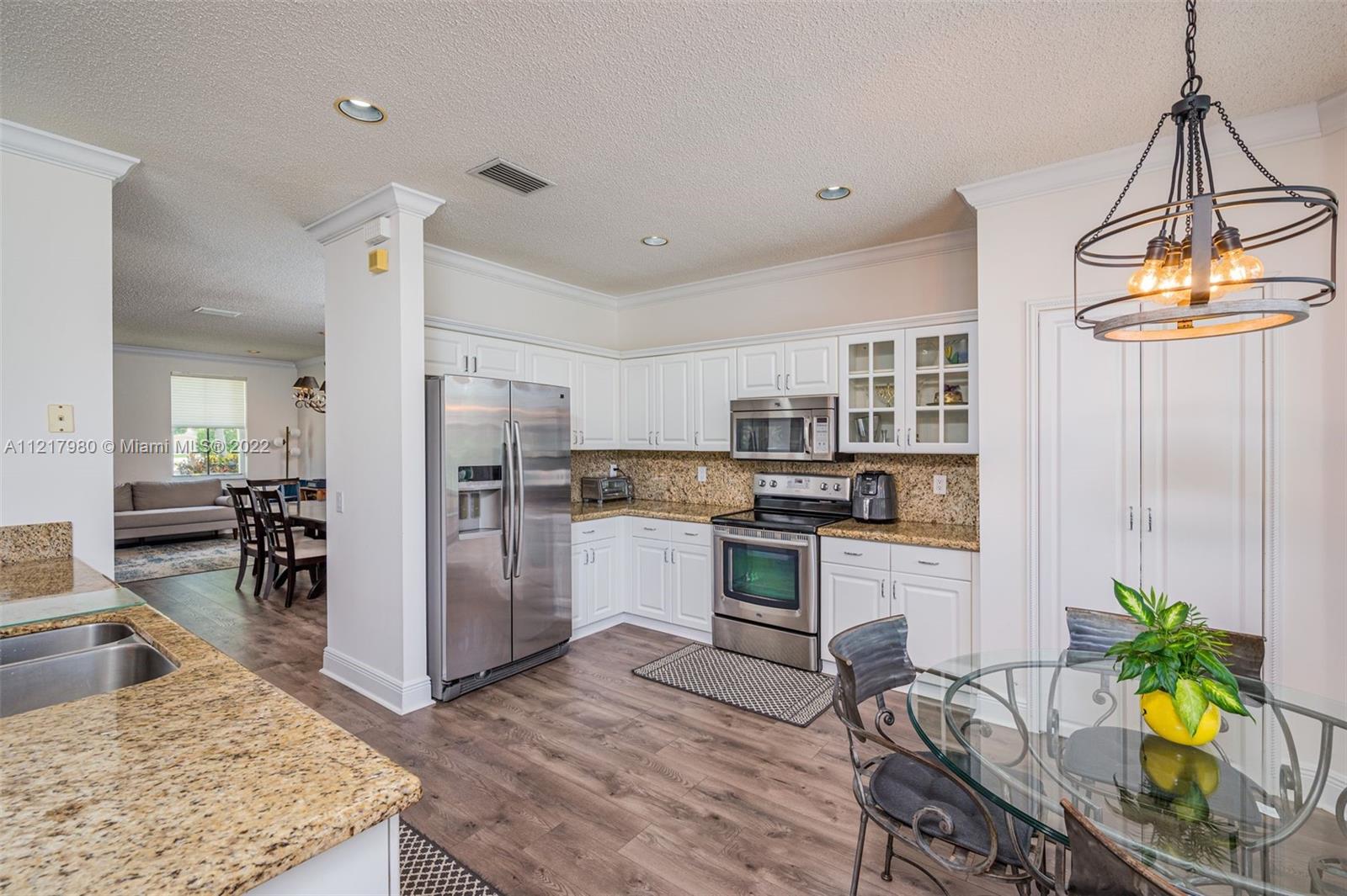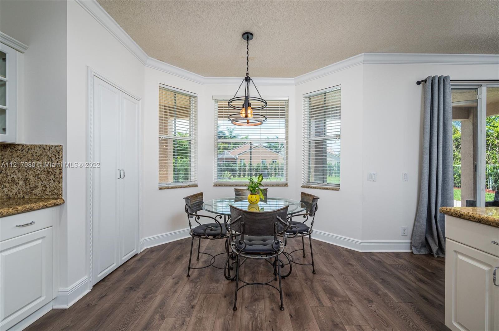 Magnificent 5 bedroom 4 bath home in the highly coveted Savanna Grove II neighborhood of Weston. Breathtaking foyer with 2-story ceilings and a grand staircase leading to the 2nd floor. Newly installed flooring throughout the 1st floor, with a clean, modern design. Freshly painted in cool grey tones to appeal to all tastes. Eat-in kitchen with white cabinetry and glass accent doors, granite counters and stainless steel appliances. Kitchen opens to the family room. The perfect setting to entertain or enjoy time together with the family. Separate living and dining area. Sliding doors lead to the outside patio and pool situated on a spacious backyard. Gated community with a fabulous clubhouse, pool and waterslides. A+ schools. Enjoy the South Florida lifestyle!!