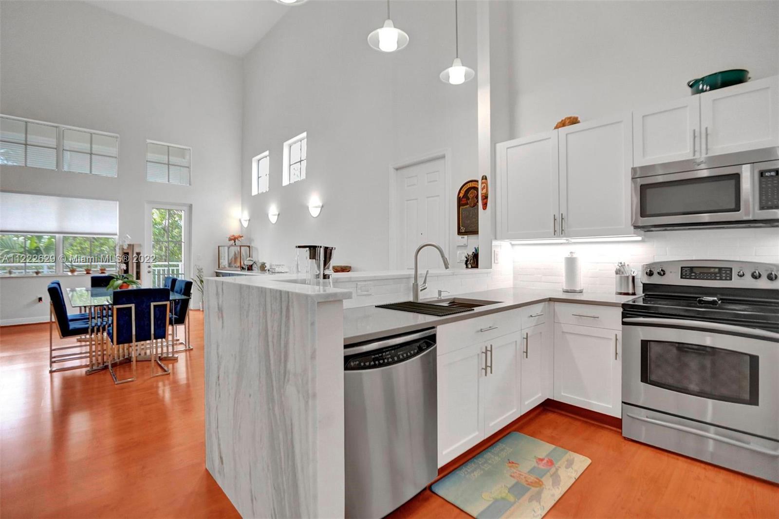 A must see home in Sailboat Bend! Large open floor plan, 22' ceilings and huge open concept end unit with loft in a desirable Key West style neighborhood. This east, south, and west facing unit is bathed in sunlight year round and surrounded by tree tops. Located in the heart of downtown Fort Lauderdale, you are just a short walk or car ride away from Las Olas' restaurants and shops, Fort Lauderdale's famous beaches and airport. Featuring a brand new kitchen with high-end appliances with quartz countertops, marble breakfast bar with waterfall edge, this is a perfect space to entertain all your friends and family. Upstairs is the expansive master loft. The full-length overlook to the first floor never gets old, the flexibility of this space is endless. Wont last long, schedule today!
