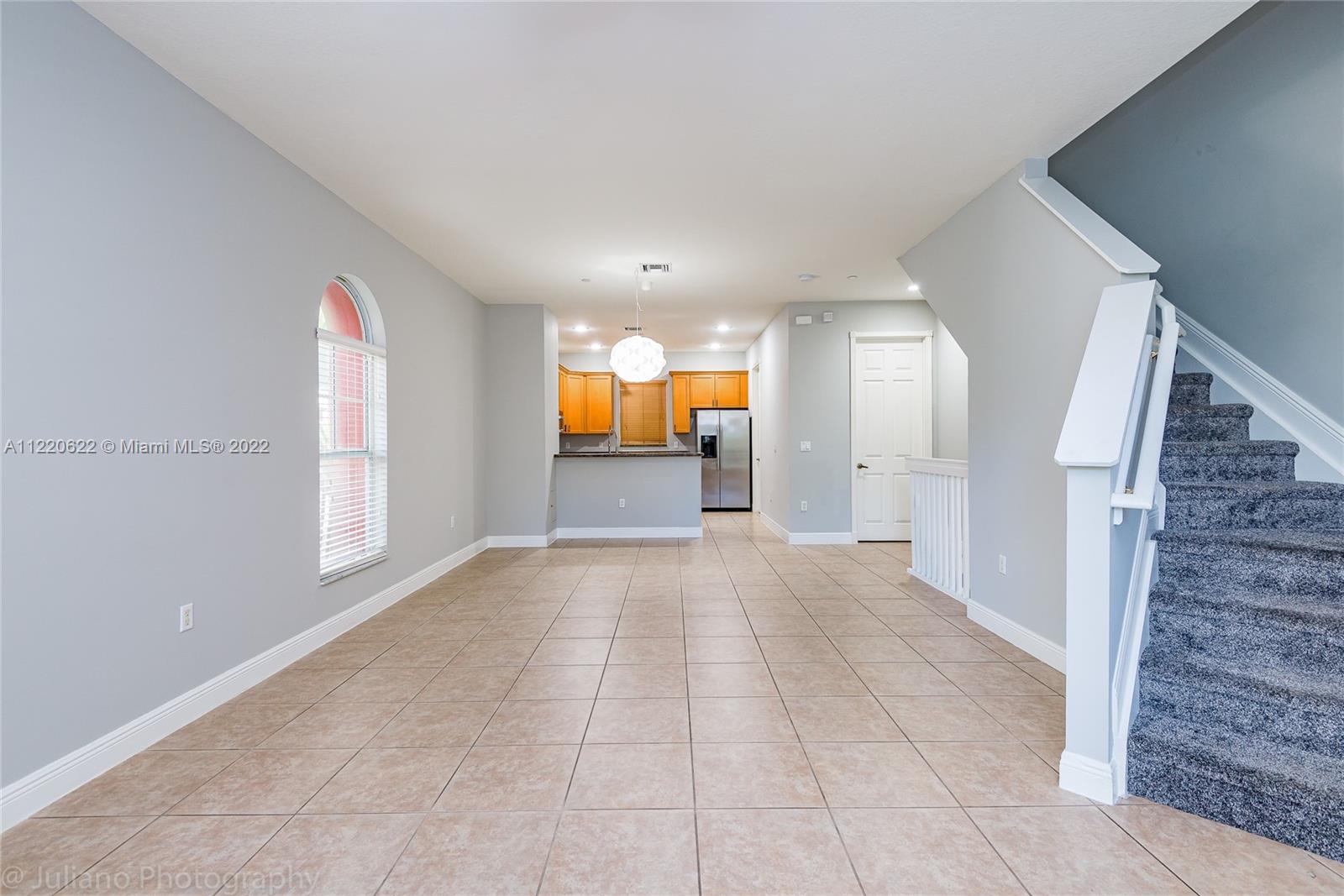 Stunning Tri-Level corner Townhome, getting plenty of sun right at the entrance and close to the pool. 3 suite with full bathroom and half bathroom on the second floor, 2 car garage, impact glass windows, brand new carpert upstairs, high ceiling with granite countertops, stainless stell appliances Located in a gates community with pool & BBQ area, fez minutes from the beach, close to bars, restaurants, pharmacies and groceries stores. The home is very spacious, master room has walking closet and a spa jacuzzi, lot of closets and pantry space. The house mas just painted and has 2 brand new HVAC AC units.
