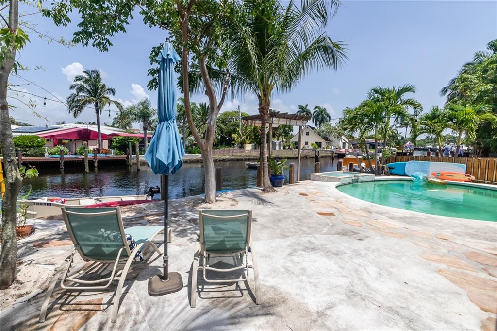 This waterfront pool home with a 2-car garage sits directly on the middle river. This home located on a dead-end cul-de-sac street tucked away in the best part of Poinsettia Heights "North Ridge" Split floorplan with large master on one side & French doors leading to the pool. A kids wing with 2 bedrooms on the other side-each with their own bathroom. Beautiful sunsets from your western exposure. This fantastic growing neighborhood is literally in the middle of everything. Walking distance to Federal Hwy Shops and restaurants like Nordstrom Rack, Trader Joes, Whole Foods, Gyms and more. Less than 2 Miles to the Ocean and Fort Lauderdale Beach, Less than 1.5 Miles to Galleria Mall. 1.5 Miles to Largest Park in Fort Lauderdale, Holiday Park. 2 Miles to Las Olas Blvd Shopping and Night Life.