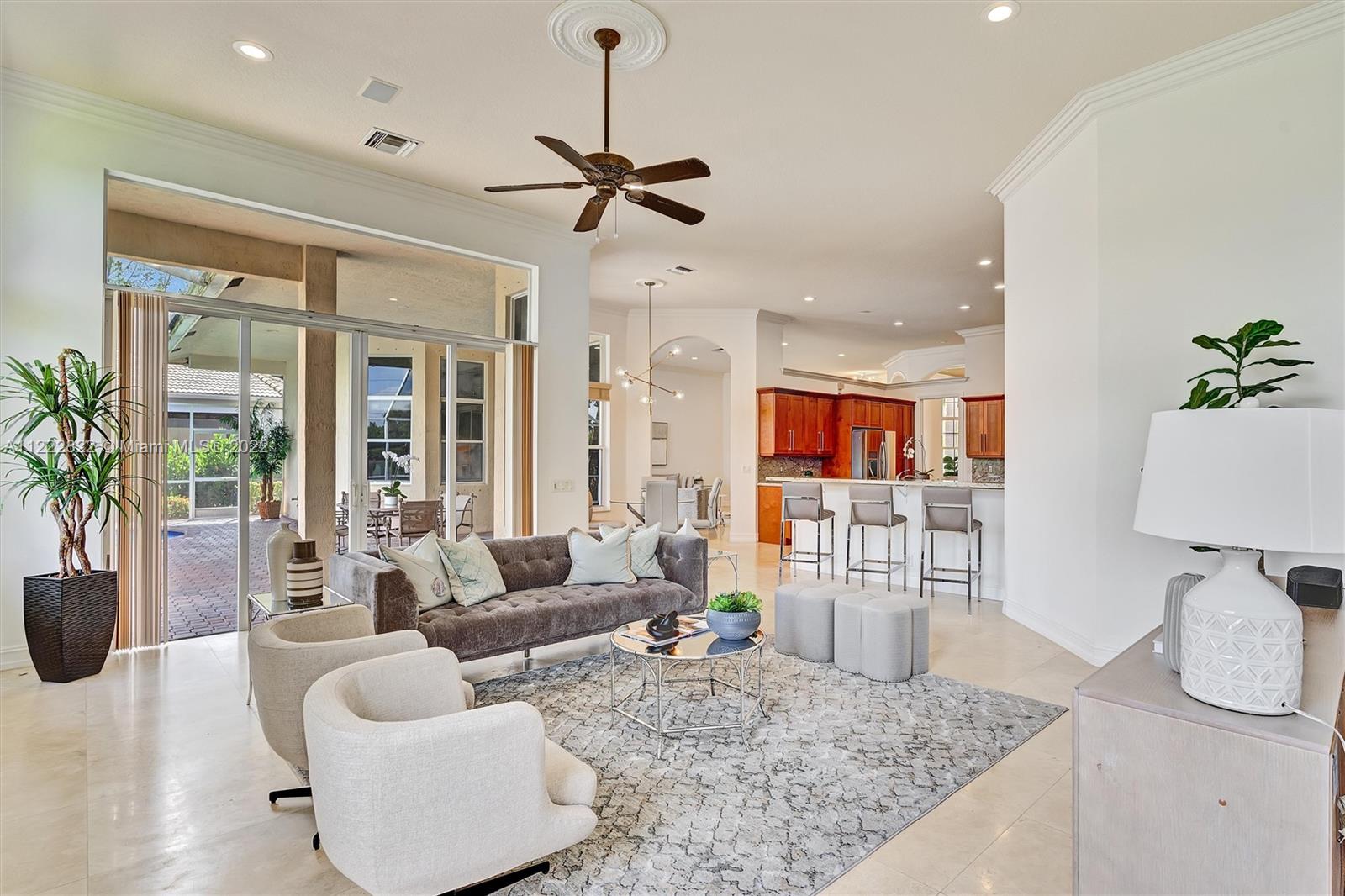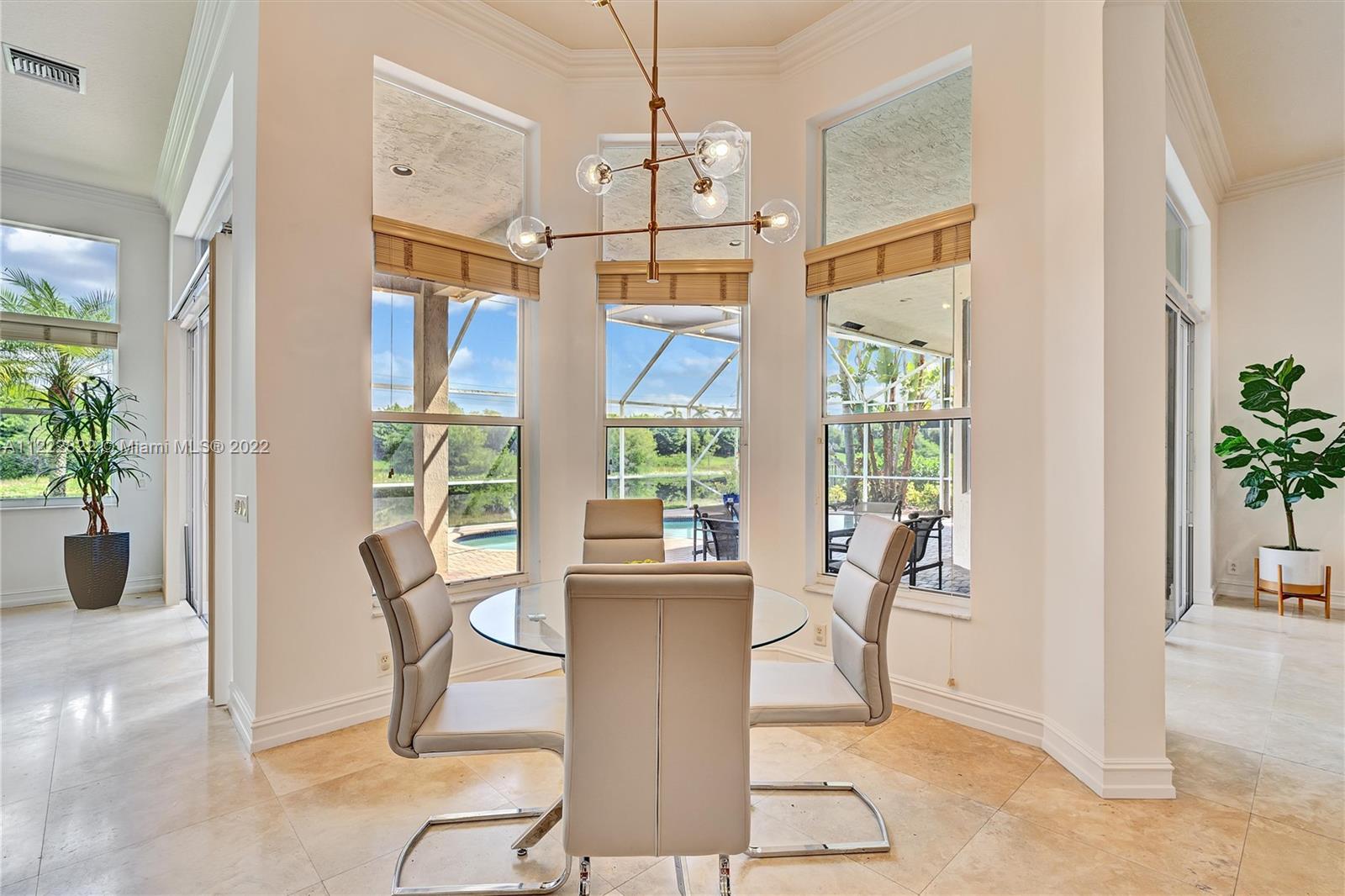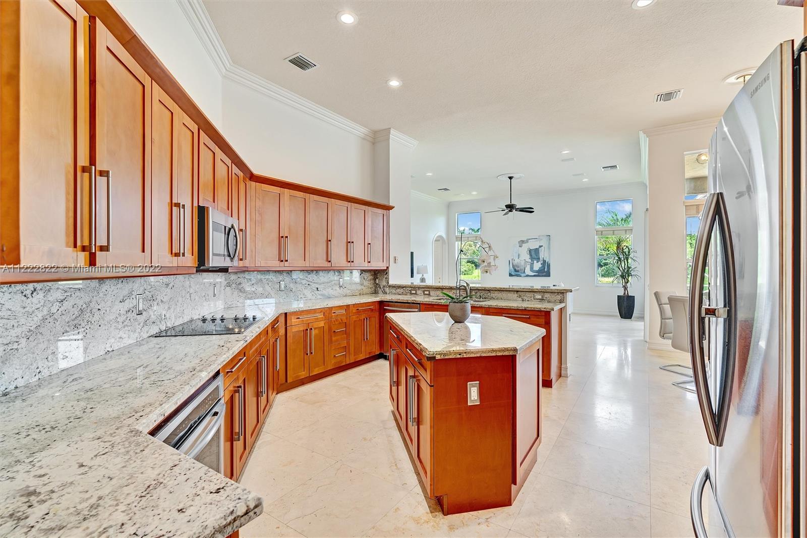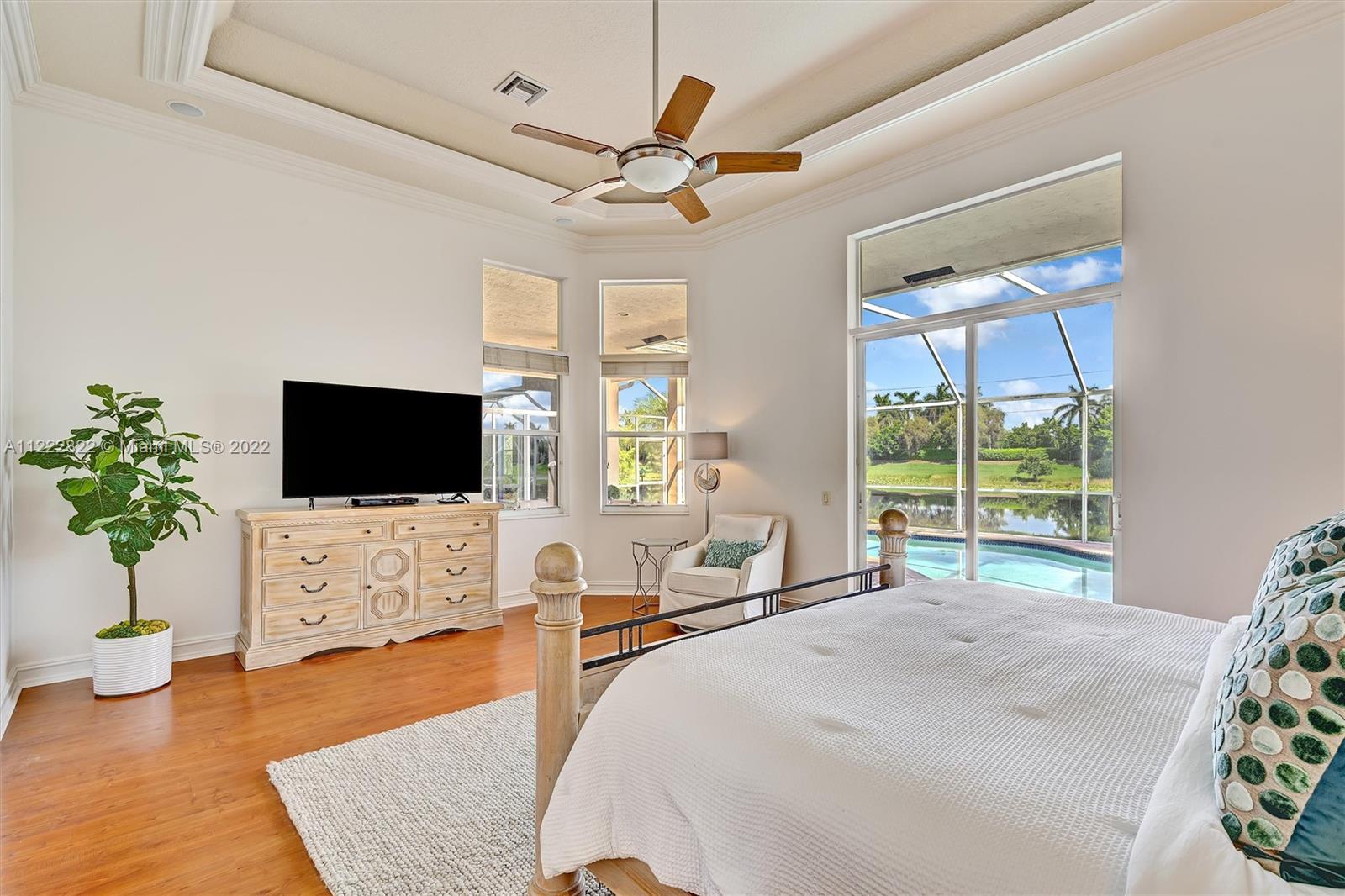 Gorgeous one-story lakefront home located in the prestigious golf gated community of Weston Hills Country Club. Open and spacious split floor plan featuring 5 bedrooms, 3.5 bathrooms and 3 CG with circular driveway. Volume ceilings, large living areas and open floor plan kitchen next to the family room, perfect for entertainment.The primary bedroom overlooks the lake and pool, while offering two custom walk-in closets and a spacious spa-like bathroom. Freshly painted interior with new LED lights and chandeliers. Newly designed modern landscaping. Marble flooring in main areas. Private outdoor, covered and screened patio overlooking the lake with a free-form pool. Perfect home for entertaining and enjoying South Florida living. Move in ready. Best schools in Florida.