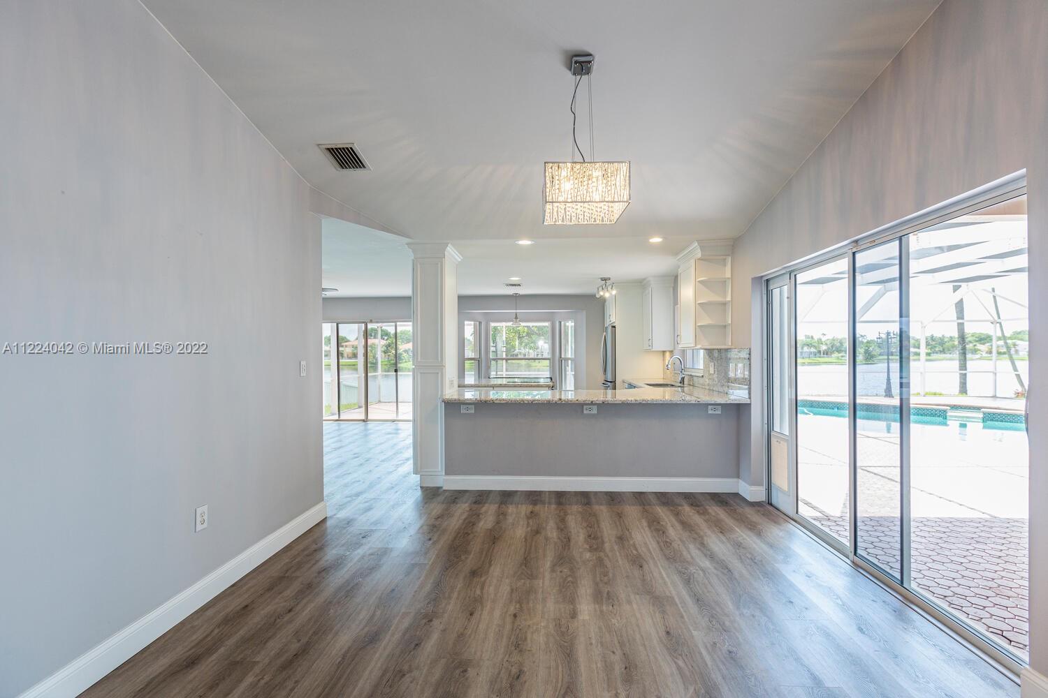 Step into this beautifully updated home in Bristol Isle. Beautiful water views from all the main living areas....you must see in person to get the fully experience! Fantastic home set up for great entertaining options or for your own private use. Home features a beautiful pool area overlooking a wide expanse of the lake. Enjoy morning sunrise views and glorious evening sunsets reflecting on the lake. Gorgeous custom gourmet kitchen with an oversized island. Plenty of cabinetry with pull out shelving and soft close drawers. Primary bedroom and bath have been customized as well...bathroom has been totally redone with oversized shower area, great dressing area too. Large walk-in closet with Elfa shelving. 2 additional bedrooms on other side of home give you space & privacy. Call today!