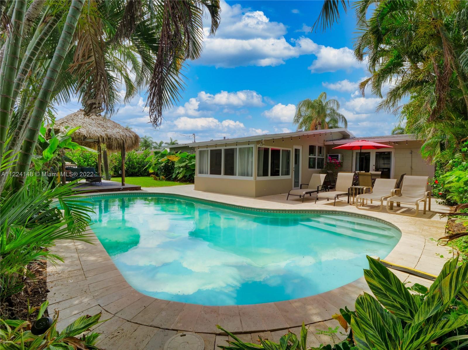 Tropical, Turn-Key Paradise Gem! 5-minute walk to the beach. Newer Ac, Impact windows and doors, New washer and dryer, upgraded plumbing (no cast iron) Relax and lounge in your outdoor with the extensive landscape, heated pool, bbq, and Tiki Hut. NO HOA. Operating as an AIRBNB with Fantastic Returns, the seller will transition the buyer into the new business, the buyer can keep the upcoming bookings or cancel as wished, and the buyer will have the ability to produce from day 1 after closing. Great price for a fast closing.