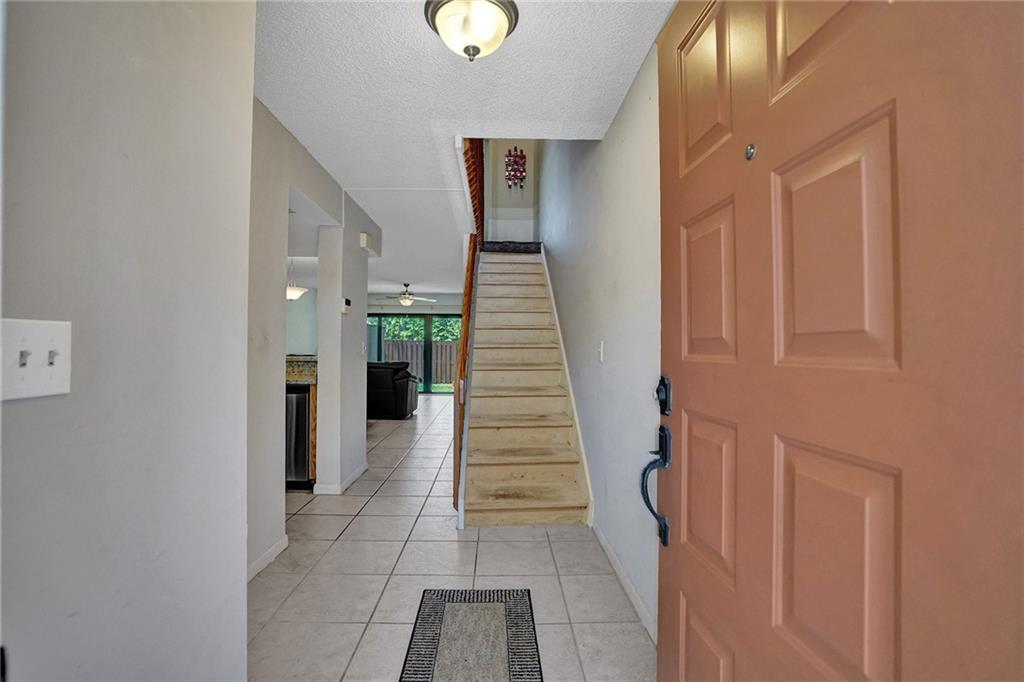 This spacious townhome boasts lots of natural light, and has a main floor patio overlooking green space and mature trees. The main level has tile floors, high impact patio doors and impact windows by the dinette. The washer and dryer are conveniently located off the kitchen, and there is additional storage on the patio. The townhome has a 1/2 bath on the main, and two upper level baths. The master is nice sized with great views, and both bedrooms are carpeted. Conveniently located to shopping, schools, universities, major highways, hospitals and more. The townhome is adjacent to the playground, and a short distance to the pool.