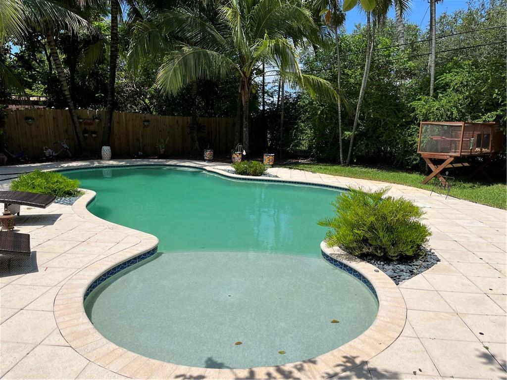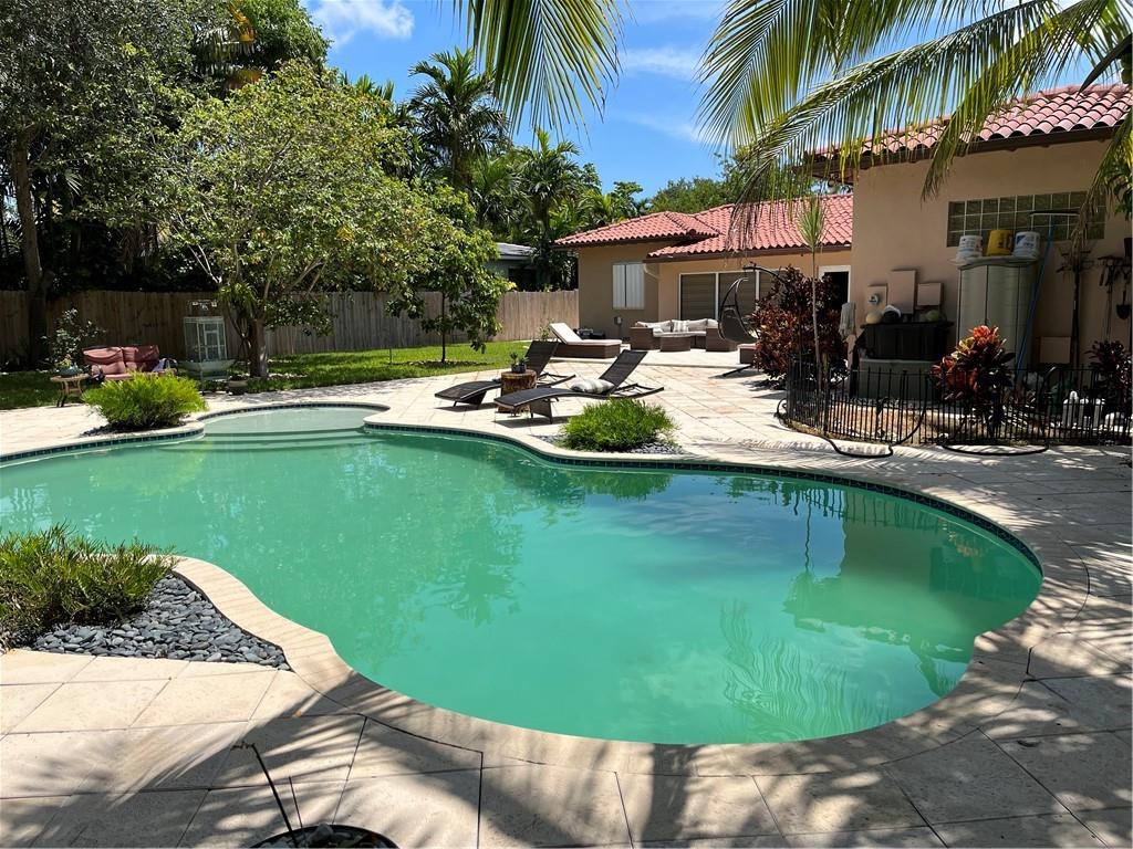 Beautiful home in the desirable neighborhood of Miami Shores. Located close to I-95 and 15 minutes from all major surrounding areas: Miami Beach, Downtown, Design District, Wynwood, Brickell and Aventura. Property features spacious secured backyard with luxurious landscape and beautiful large pool. Residence has plenty of space in both front and back of property. Home offers 3 bedrooms, 2 bath with cozy kitchen, generous living space, A/C one year old.