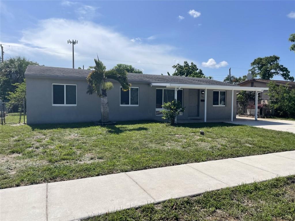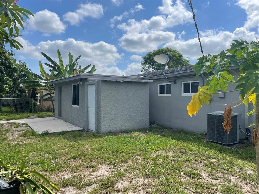NO HOA!!!! All tiled 3 bedroom 2 bath with an additional room that can be office/den or even a fourth bedroom. Also can be opened to expand dining area. Large Florida room!! IMPACT WINDOWS!!. A/C is only 2 years old. New hot water heater. Storage room in the back. Incredible Fruit trees that include mango, banana, papaya and even a Florida peach tree in this fenced in backyard. Extra storage room, an additional shed and another slab already there for a playhouse or extra storage. Covered front porch. Driveway large enough for 4 cars plus a space for your boat.