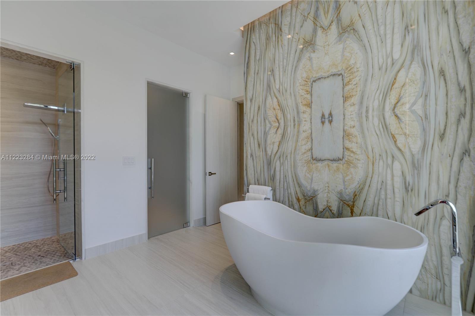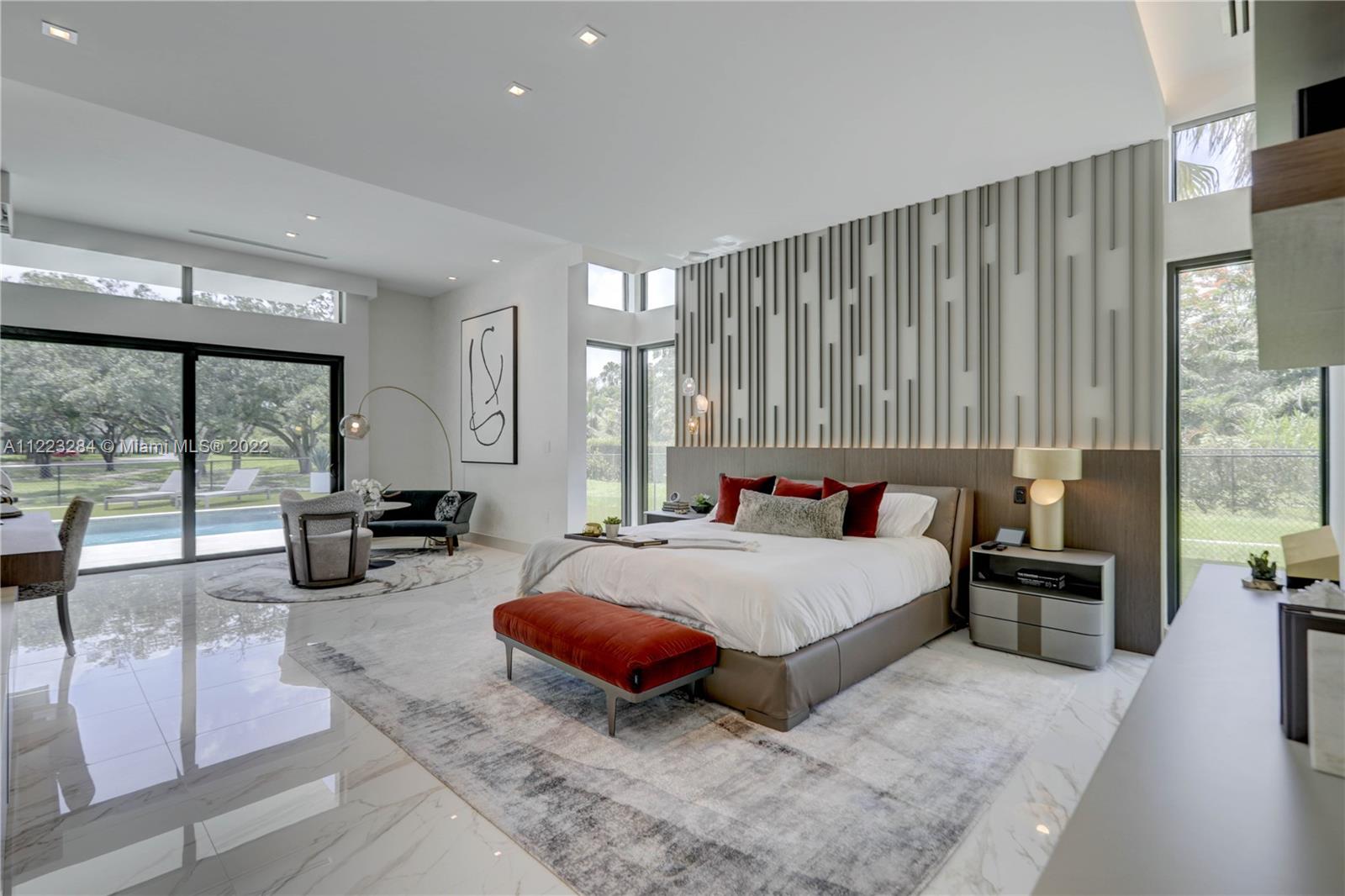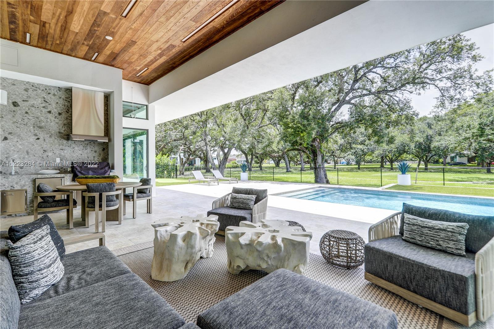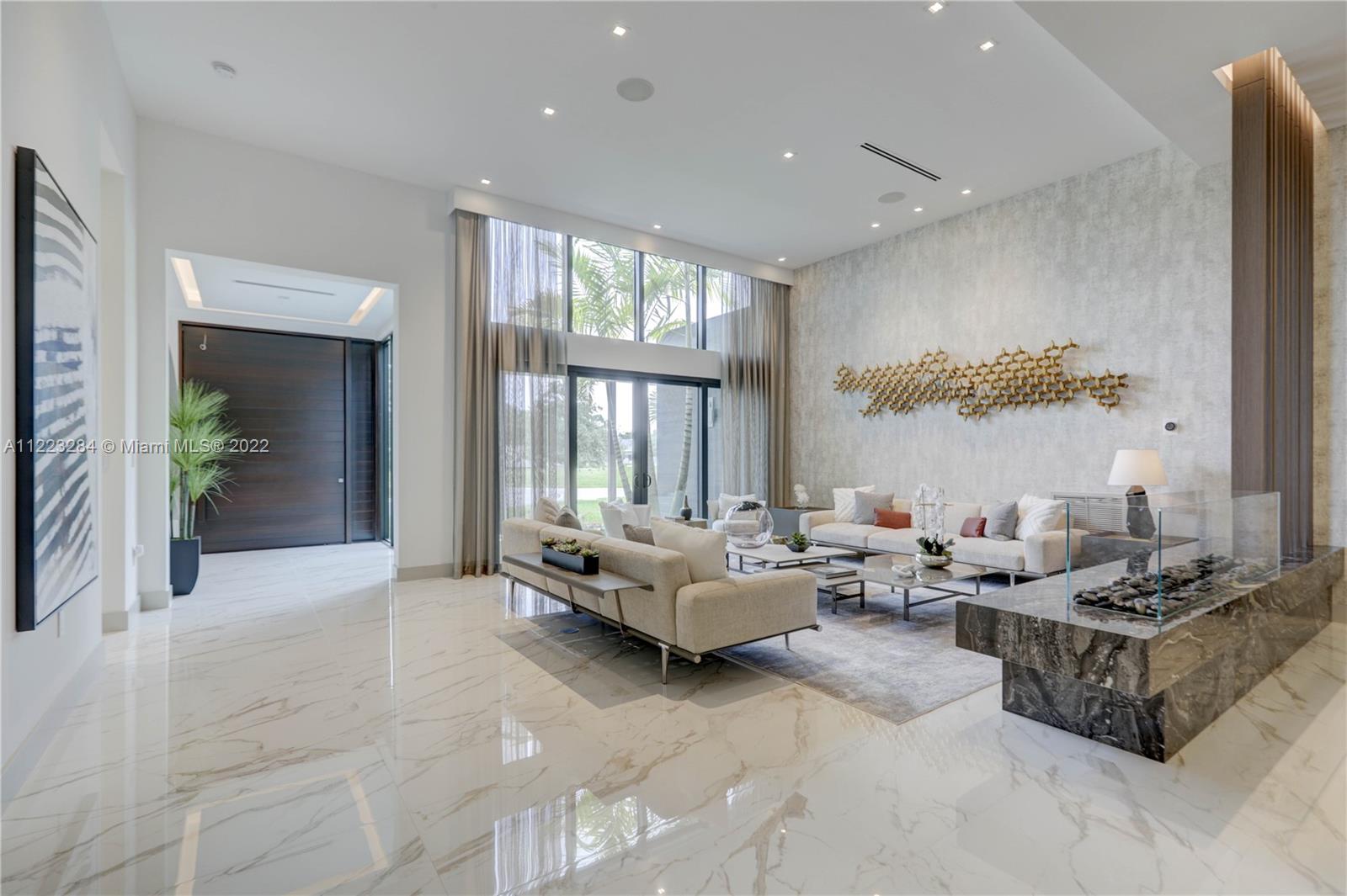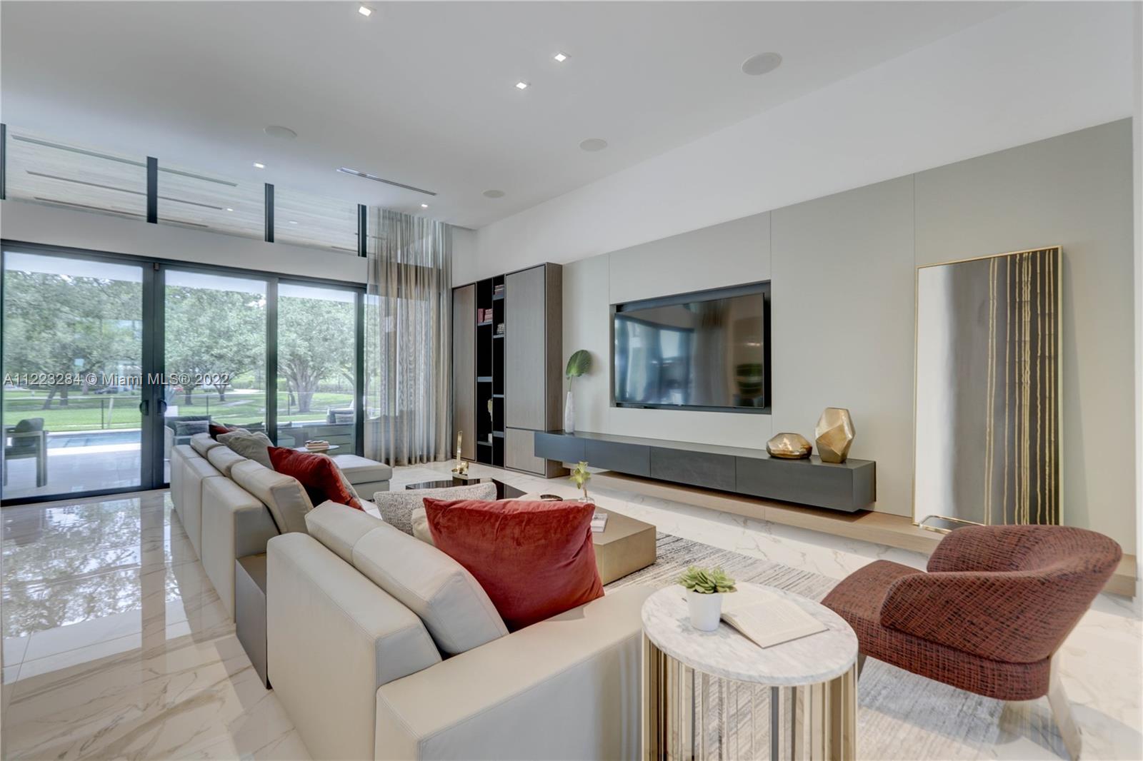 Elegance & luxury abound in this 5 bedroom, 5 bathroom home including 2 half baths, & media room with sound system in fabulous Oak Park. Exquisite Italian porcelain tile in all main living areas & bedrooms. Open floor plan with volume ceilings featuring custom millwork throughout the home. Expansive Chef’s kitchen including white quartzite counters, custom high end cabinetry, Wolf appliances, & Subzero refrigerator & 200 bottle wine cooler that overlooks the family room which is perfect for those who like to entertain. Large master suite w/sitting area, dual walk-in closets, & grand master bath w/Zen meditation garden. Big secondary bedrooms all with en-suites. Oversized patio w/built in summer kitchen, cooling deck around the salt water pool, outdoor turf/putting green, & camera system.