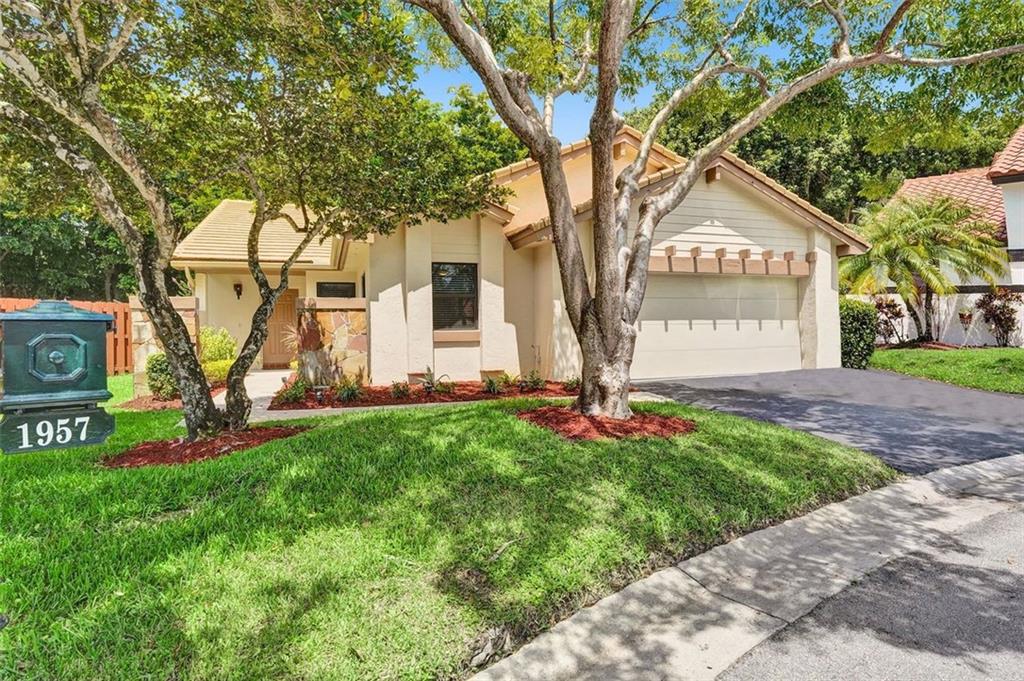 First time ever on market! NEWLY RENOVATED MODERN spacious 3BD/2BA/2CG single story on peaceful private 7410 sq ft cul-de-sac lot. Entire home recently remodeled with IMPACT GLASS throughout, NEW flooring, NEW LED lights, NEW modern kitchen, NEW bathrooms, NEW flat ceilings & walls, NEW hurricane impact garage doors. Amazing gigantic "indoor/outdoor" screened Florida Room patio essentially adds an extra 500+sf of living area to the home! Sparkling new kitchen has top of line sleek dual tone white & gray cabinetry, new stainless appliances, quartz counters, huge island w/extra cabinets & TV/display niche! Split floorplan w/living, dining, office niche, family room & primary suite w/trendy custom closets with opaque glass doors + walk-in closet. HOA incl lawn & comm pool. Weston A+ schools!