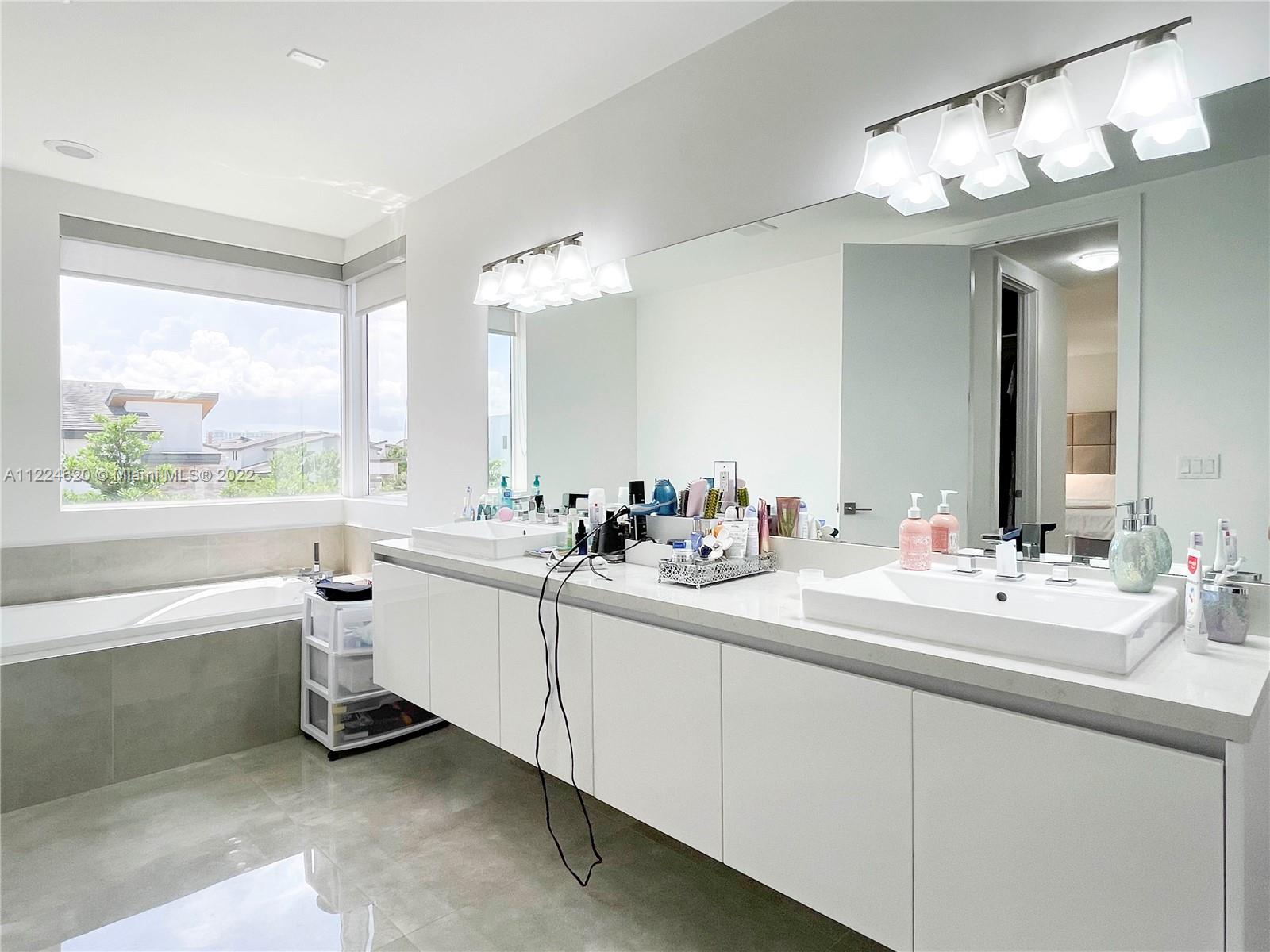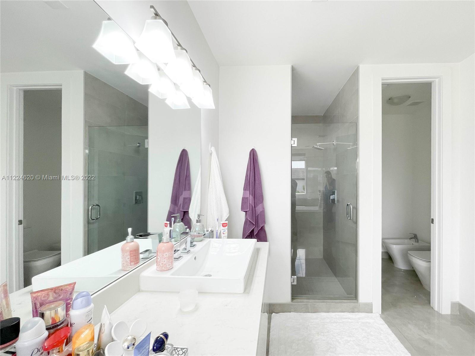 Welcome to Modern Doral 60. This beautiful 5 bed 5 bath 2 story modern home is located inside Doral exclusive gated community. This home has upgrades galore, stainless steel bosh appliances, master bedroom with his and her’s custom walking closets, bathroom with dual sinks, roman tub and a separate shower, custom roller shades on wall windows and doors for privacy. Minutes away from shops, restaurants, nightlife entertainment. The clubhouse offers gym, party room, business center, pool and BBQ area. Make this modern house your home!