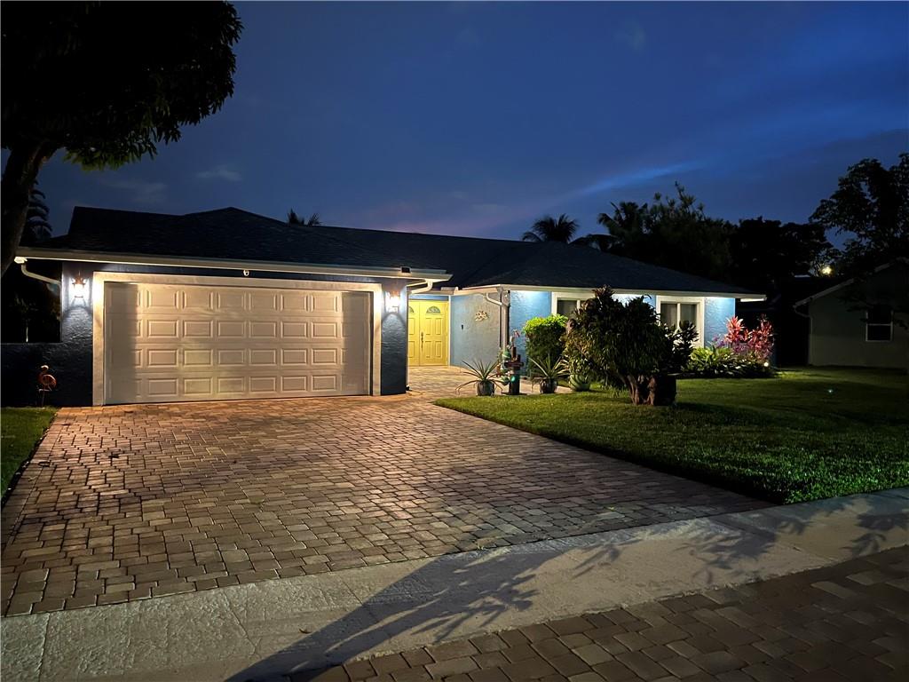 BEAUTIFUL LAKE FRONT 3 bed 2 bath home!! Come and sit on your private patio and enjoy the heated saltwater pool while enjoying the stunning sunsets in your own personal paradise year round. Walk in through the double front doors to find a beautiful open floor plan with stunning views of the pool and lake. Home has vinyl plank flooring and tile throughout, kitchen has SS appl, custom painted cabinetry, quartz countertops and subway tile backsplash. Guest bathrm remodeled in 2020, exterior was painted in 2020 as well. LED lighting throughout, custom epoxy garage floor, exterior landscape lighting, led lights under front eves, hybrid water heater, Hurricane Impact Windows and doors, paver driveway & patio. House is move-in ready. Close to I-595, FLL Airport, beaches, shops etc.