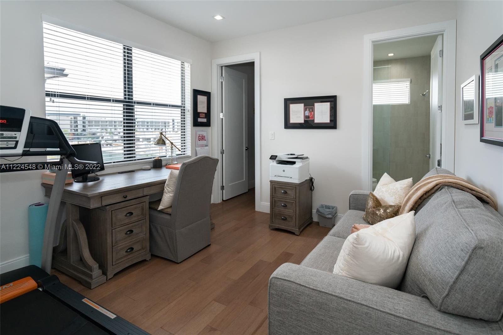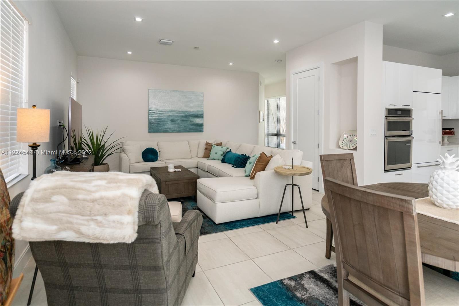 Come and see the Beautiful Canarias, Ibiza Model C located in Downtown Doral. This corner lot home has the Primary Suite with Spa Designed Bath, and 2 Additional Bedrooms with Ensuite Bathroom located on the 2nd floor. All Bathrooms are outfitted with Kohler Fixtures, and Frameless Shower Enclosures. Laundry Room comes with Washer & Dryer, and full set of cabinets. Downstairs is the Great Room with Ceramic Tile Floors, Volume Ceilings, lots of Natural Light. The kitchen has European Style Cabinets, Quartz Counters, Gas Range, and Built in Ovens and Refrigerator (all Jenn-Air). Located within a short walking distance to the New Clubhouse that has a state of the art Gym, resort style Pool. Close to shopping, dining, and entertainment. Excellent Schools. Some Furniture For Sale.