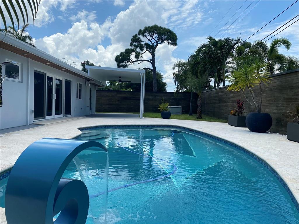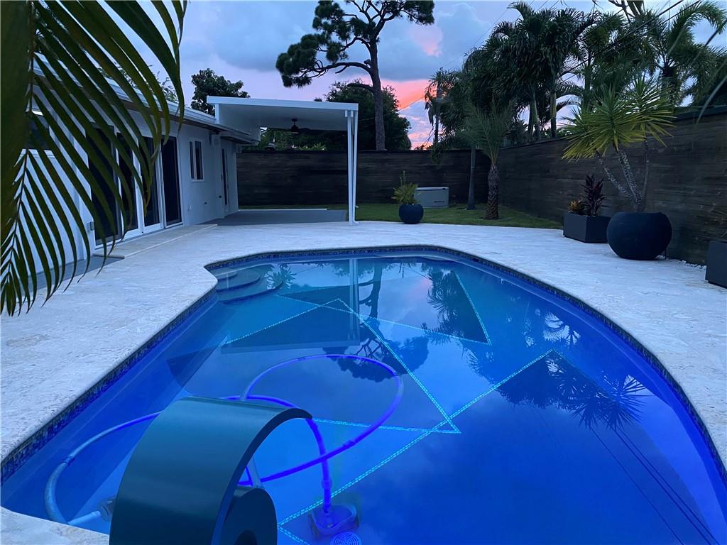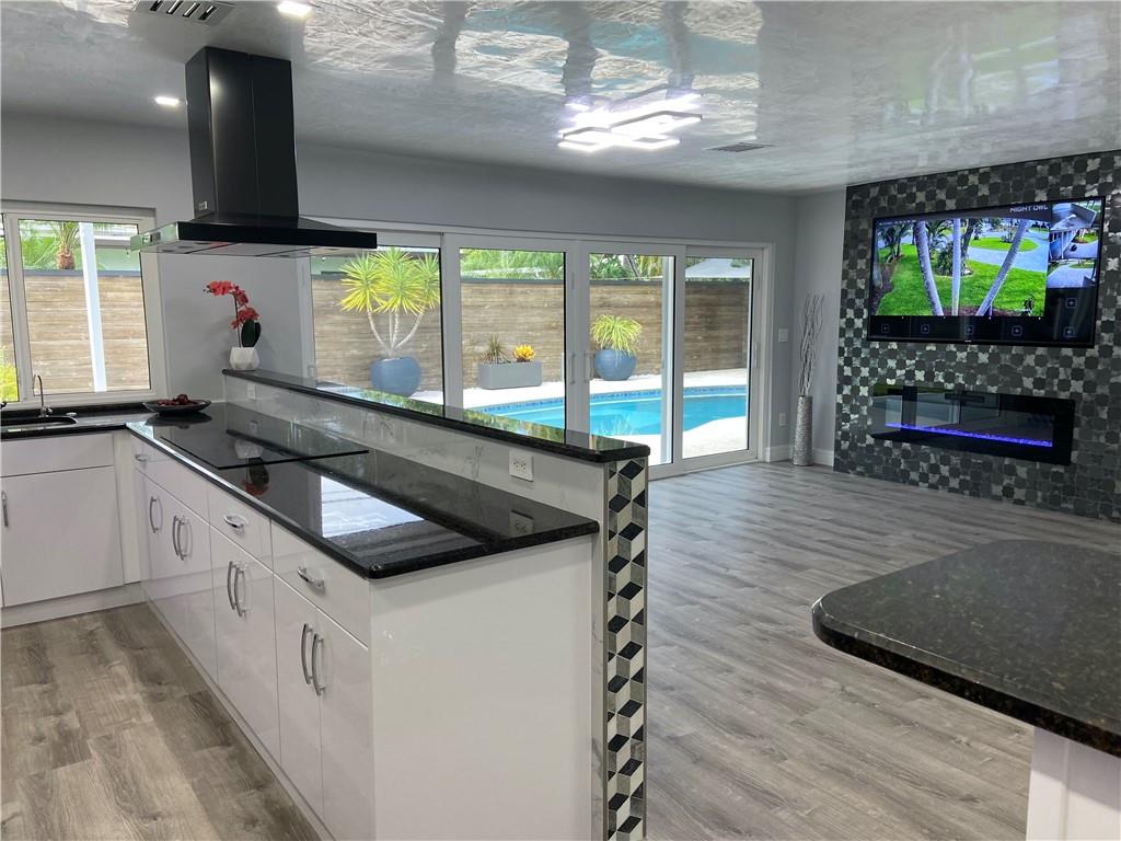 Completely remodeled (2022) 3 bedroom, 2 and half bathroom single family house in Pompano Beach. Auto GENERAC 20KW natural gas GENERATOR, new kitchen with SS KitchenAid appliances, BRAND NEW A/C (2022), NEW aluminium ROOF (2022), freshly painted, new driveway pavers, new landscaping, Samsung washer & dryer in large laundry room, salt heated pool, natural Caribbean coral pool deck (cold even during summer days), outside shower, night lights, vinyl IMPACT WINDOWS and doors, showers/bathtub with jets. SMART HOME (pool, NEST, smoke detector, cameras with motion detection and night vision, sprinkler system and more), brand new electronic blinds, TV wall with fireplace (75" LCD TV included), ready for outside kitchen (water, drain, electricity and gas prepared), TV antena, wine cooler.