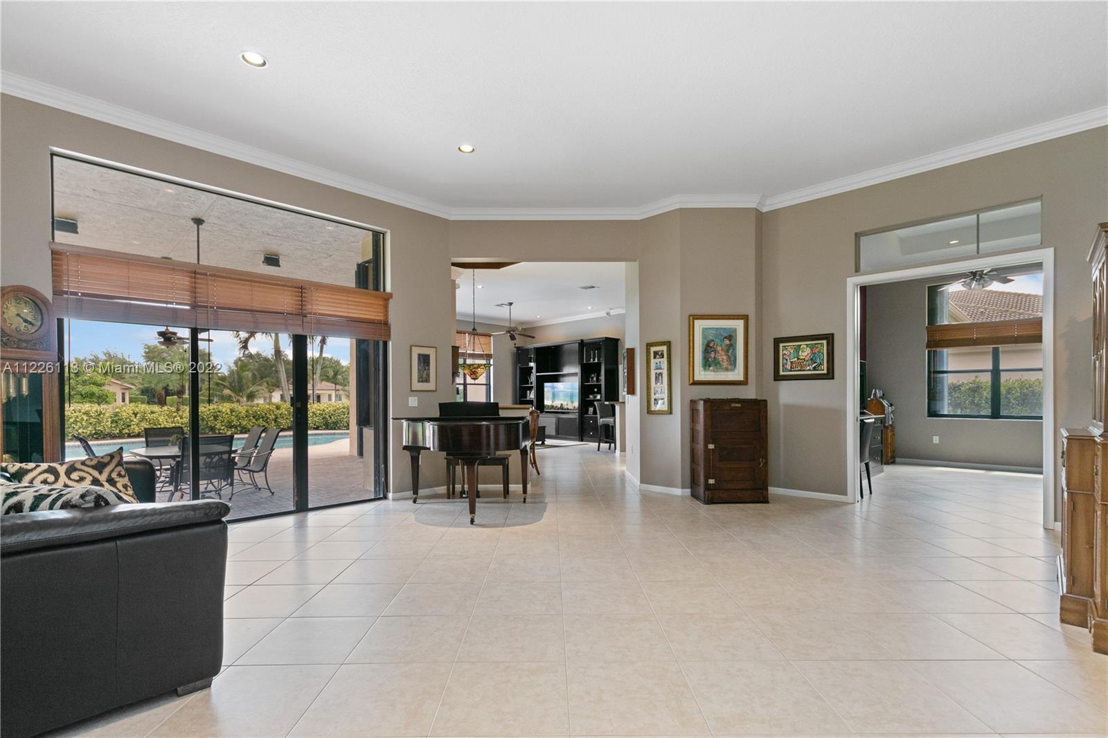 Beautiful 6/4 pool home plus bonus room on the lake in the coveted community of Imagination Farms. This lovely home features a large upgraded kitchen with pantry, spacious family room, 4 upgraded full bathrooms, neutral tile and wood floors throughout, built in closets, accordion shutters and partial impact windows, fenced in dog area, 3 car garage, paved driveway and walkway to the yard. The backyard boasts a tranquil view of the lake, oversized salt water pool that was recently diamond brighted, outdoor hot water shower and a large paved patio for entertaining as well as mango, avocado and banana trees. The yard also has a large separate storage area for pool supplies and chemicals This home is move in ready!