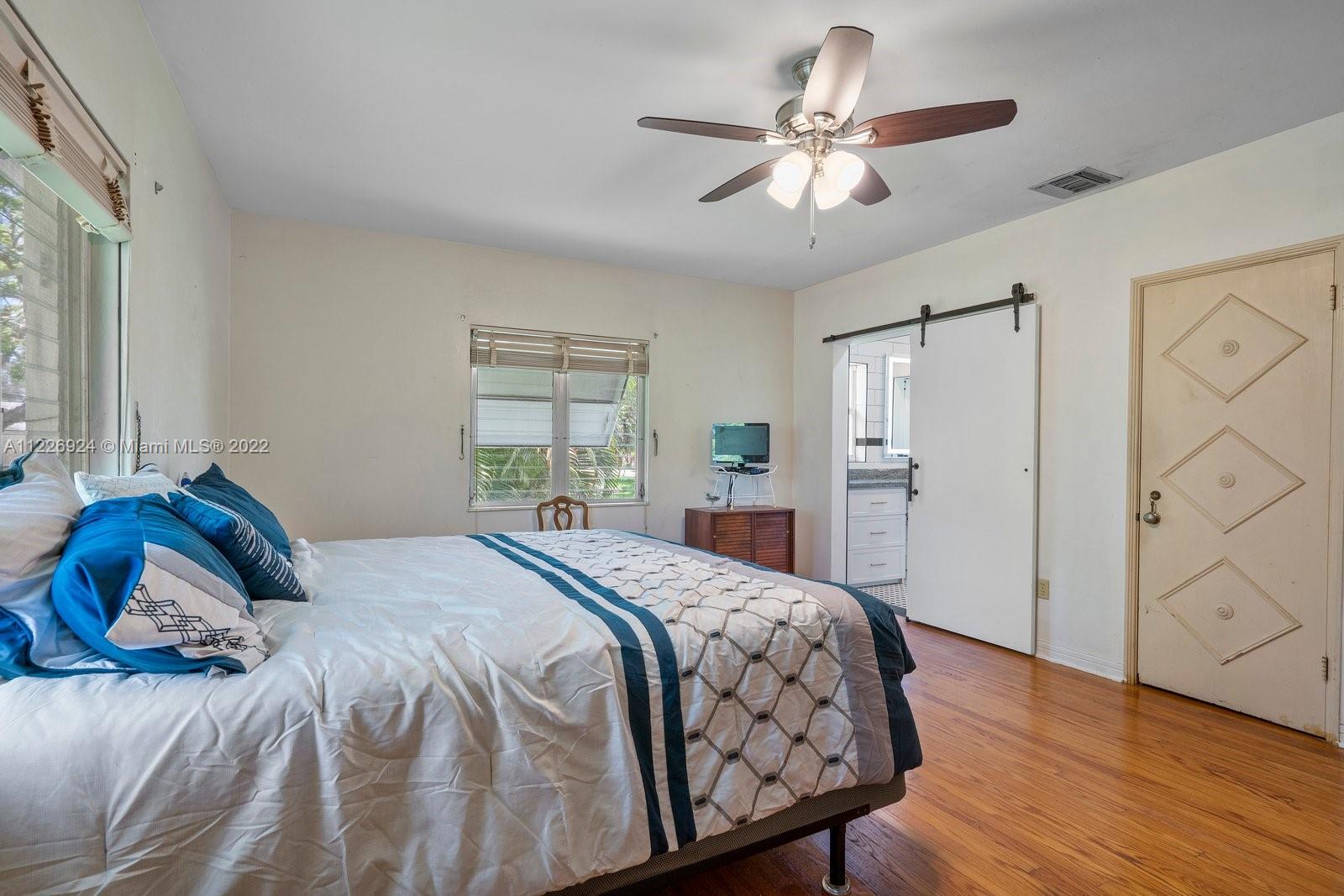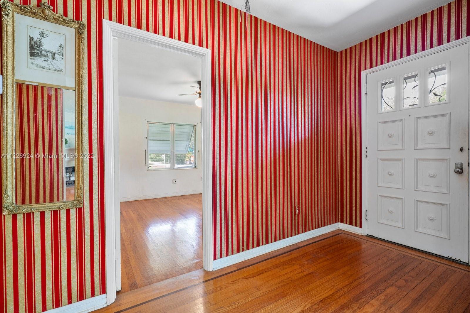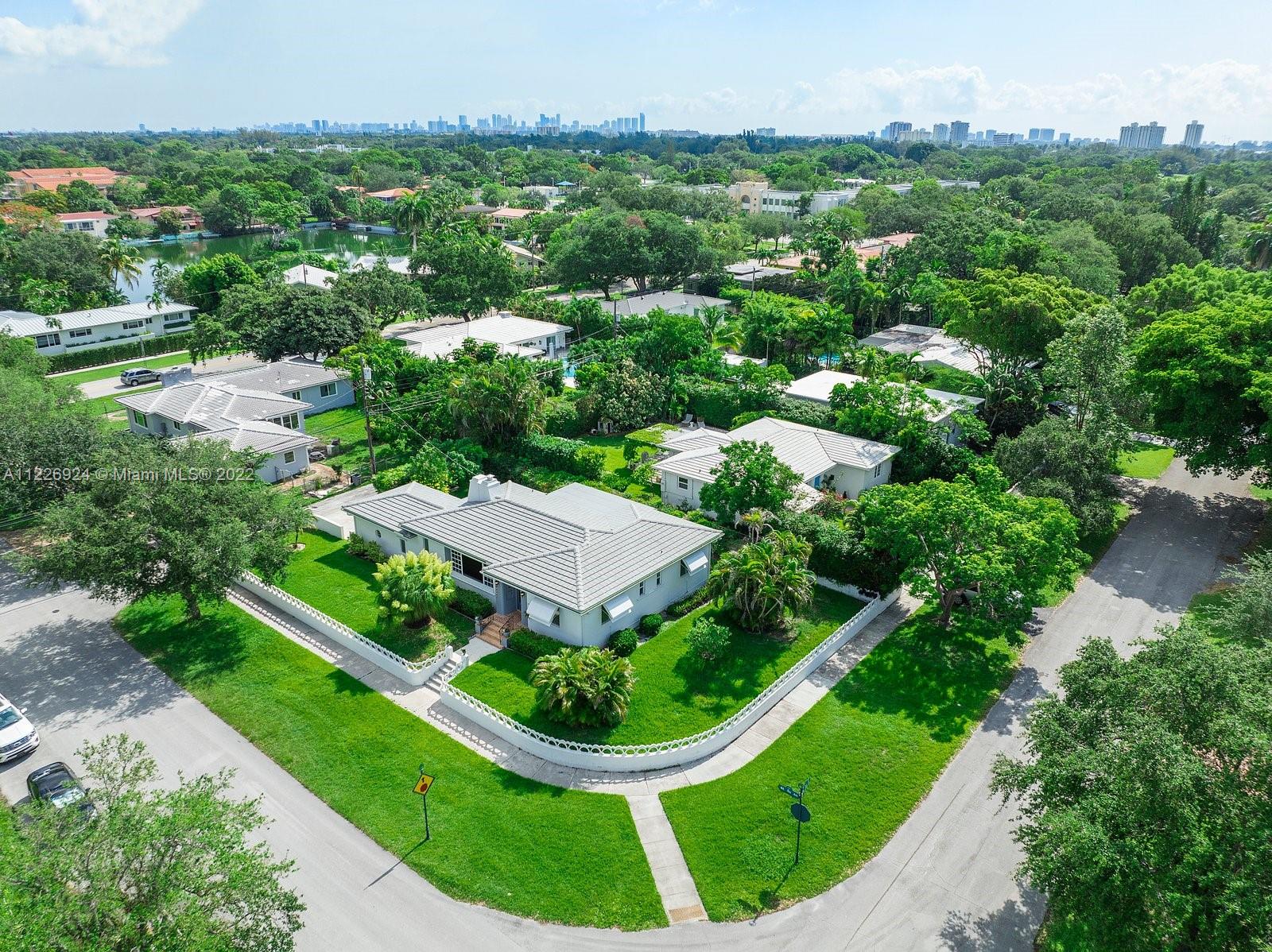 Character sets the stage for this one of a kind Central Miami Shores home! Enjoy the elegance of 1930s architecture as you enter through a gracious foyer and are greeted by a spacious living room, formal dining and Florida rooms with large windows. Architectural details like 8.5' ceilings, a working corner fireplace, original oak floors with inlaid wood details, custom crown/door molding and porthole windows will delight. 2 lrg bed + 1.5 baths. Not in a flood zone and elevated above street level, this home has an oversized one car garage containing an additional 1/2 bath. The corner lot is beautifully landscaped and bordered by a charming wall railing. Enjoy living within the popular Central Shores area and walking distance to local schools as well as shops and restaurants in MIMO/2nd Ave.