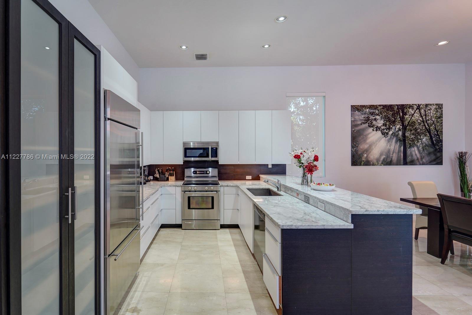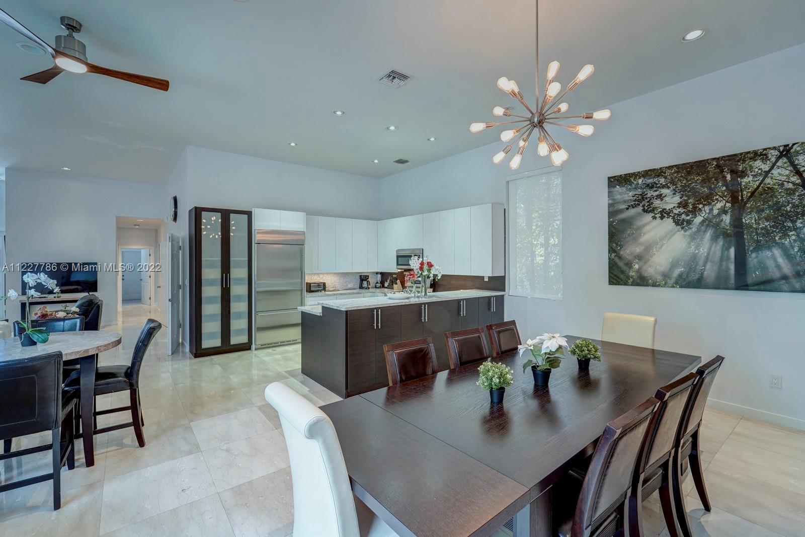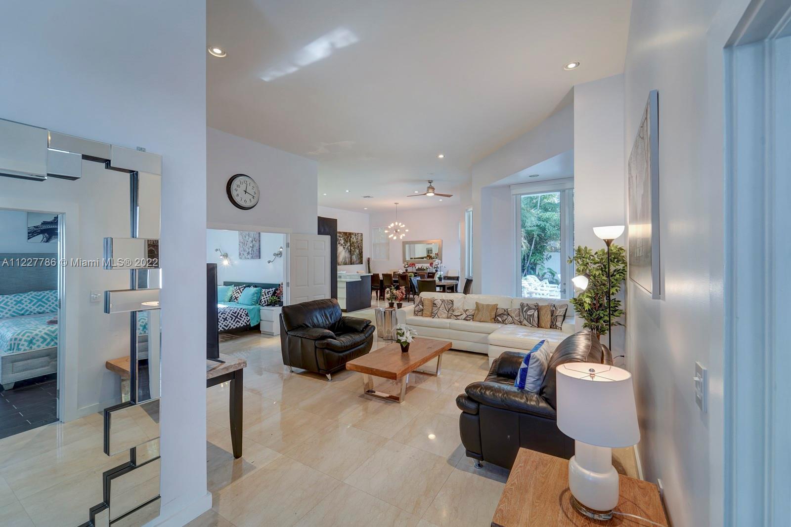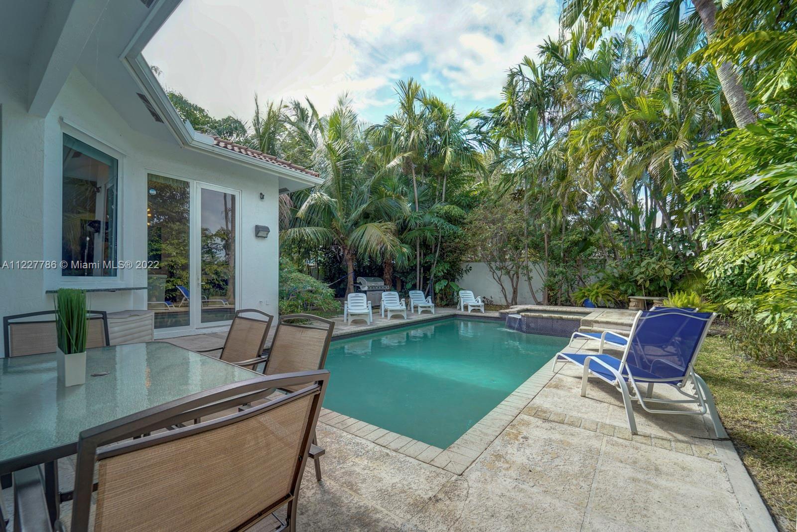 Beautiful home in a great location. With high vaulted ceilings, large windows bringing in plenty of sunlight. This updated home has fresh new feel with 4 bedrooms and 2.5 bathrooms. With a beautiful fenced private backyard with a pool and large entertaining area. Kitchen has stainless steel appliances and impacted windows. Selling price includes all the furniture. Home is easy to show.