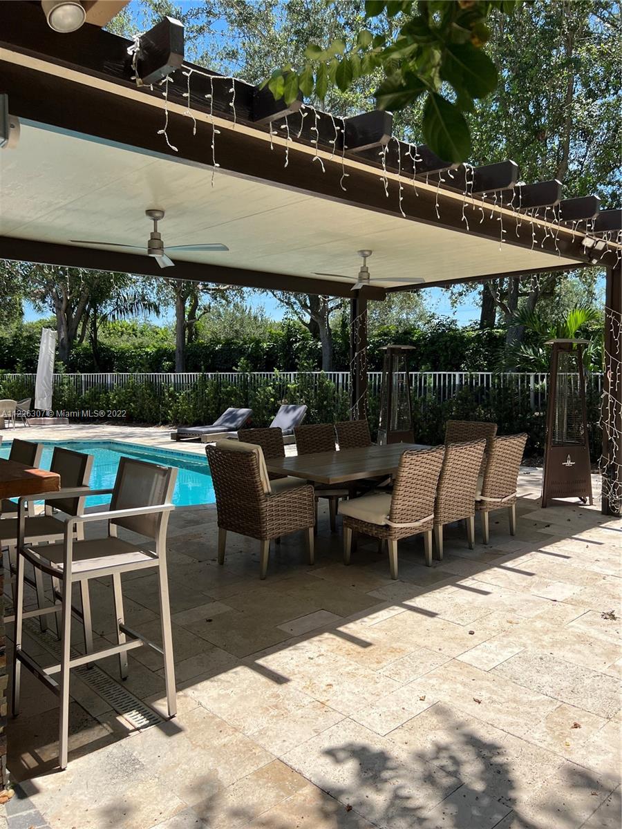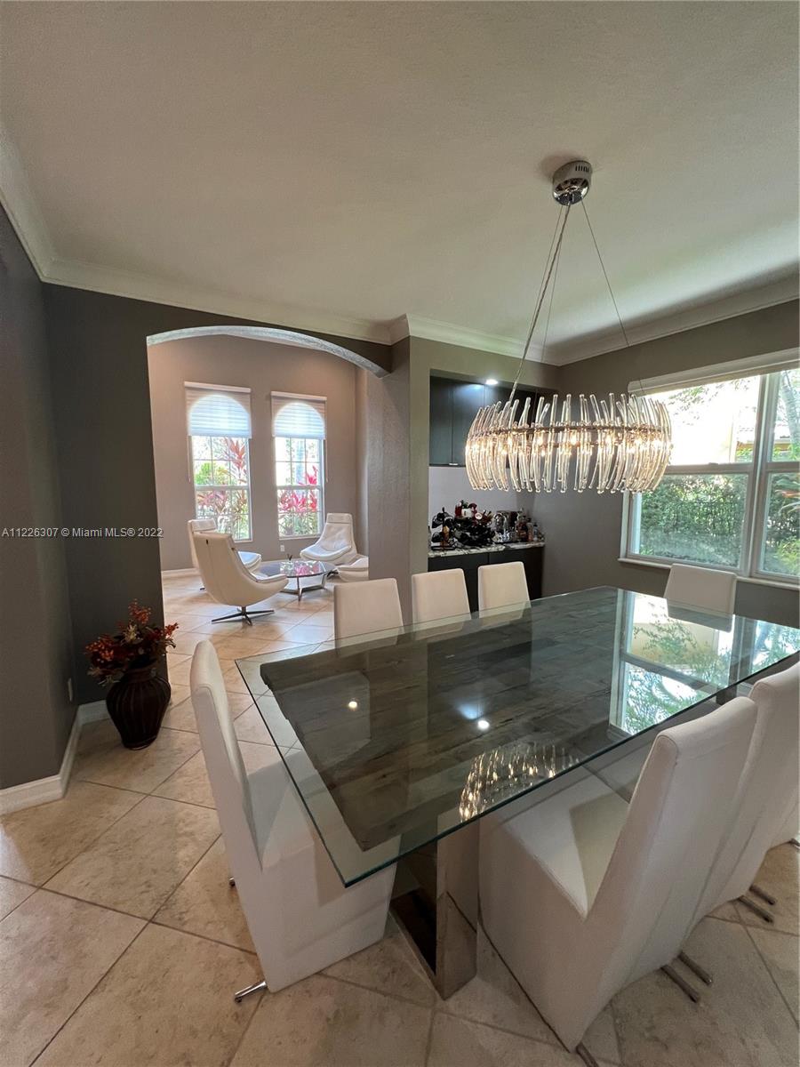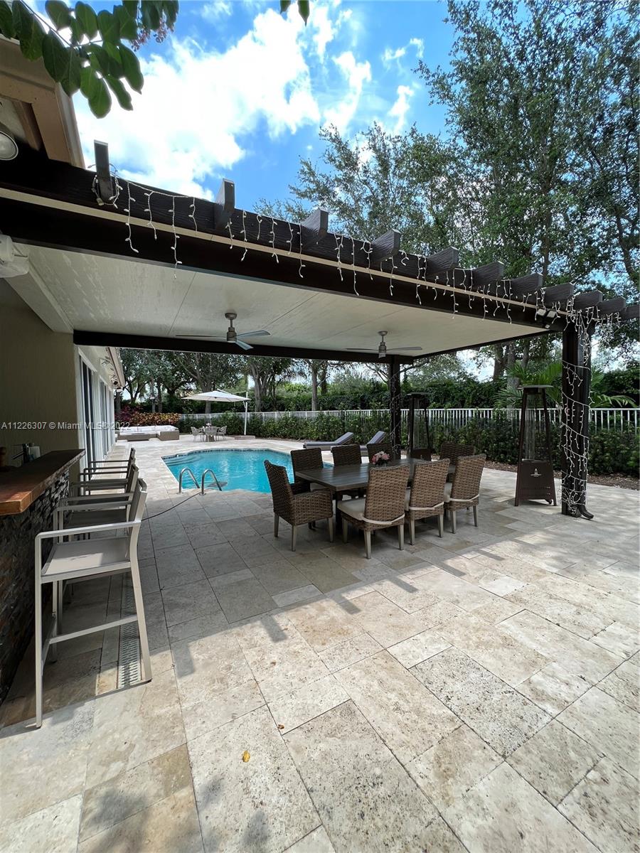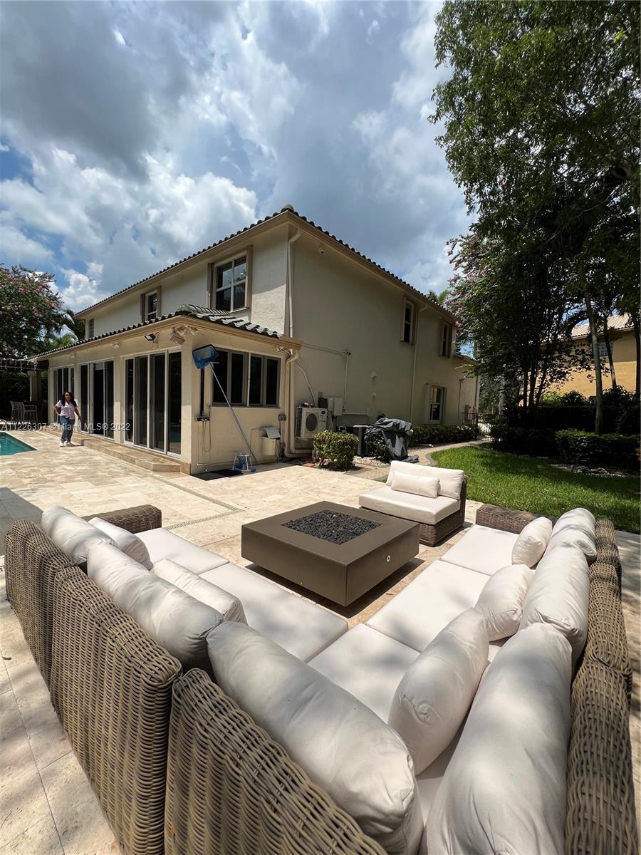 Original owners are ready to downsize as they are empty nesters! Five bedrooms, five full bathrooms. Three-car garage located in Isles At Weston. The house underwent a significant remodeling process in 2017; Enclosed lanai serves as a gathering for the man of the house with their bar and entertainment area. They remodeled the backyard in 2021 with a heated pool, outside shower, a pergola serving for a dining table outdoor, a fully equipped kitchen, and a sitting area with a fire pit connection. Gas Generator installed in 2020—impact sliding doors. The front and interior doors are new—built-in closets in each bedroom. Items that do not convey are the outside heaters and beer fridge cabinet inside the garage—items that convey the TV inside the LED fireplace and the TV in the outdoor kitchen.