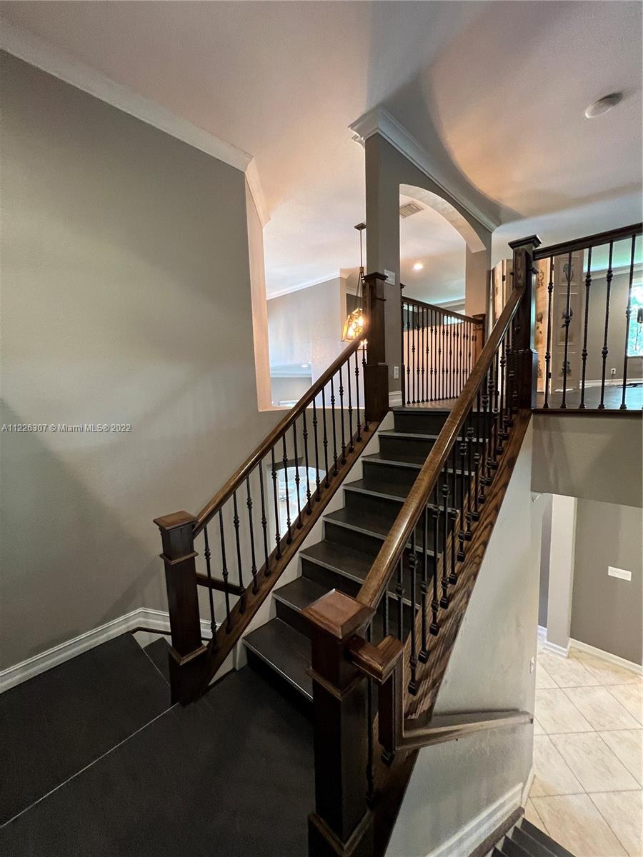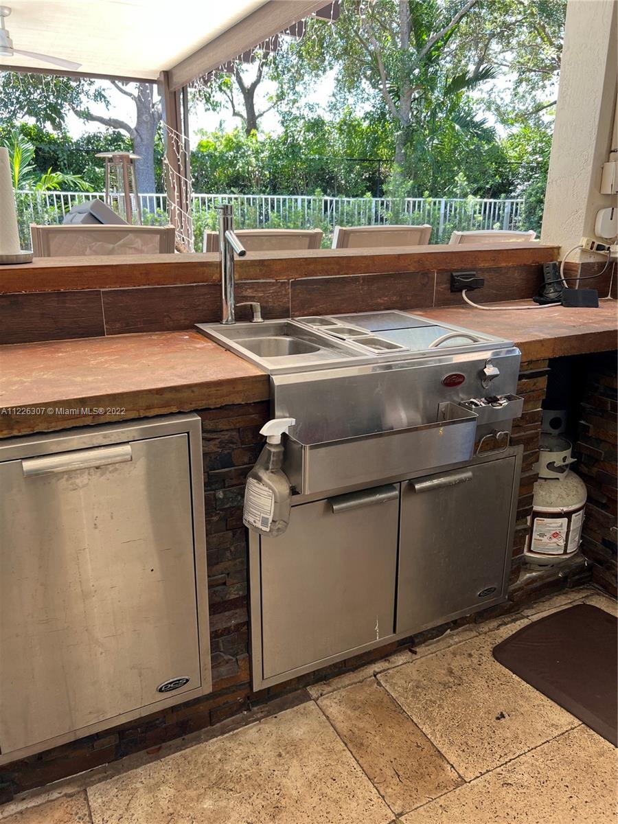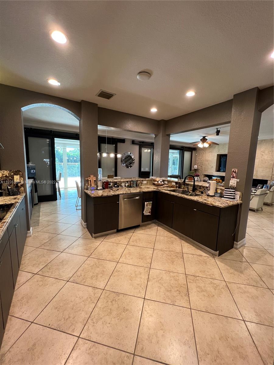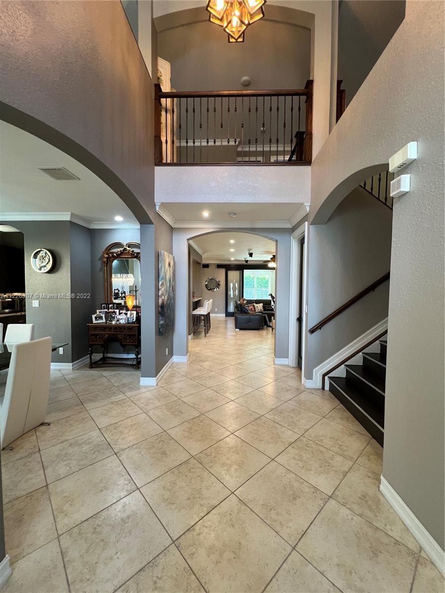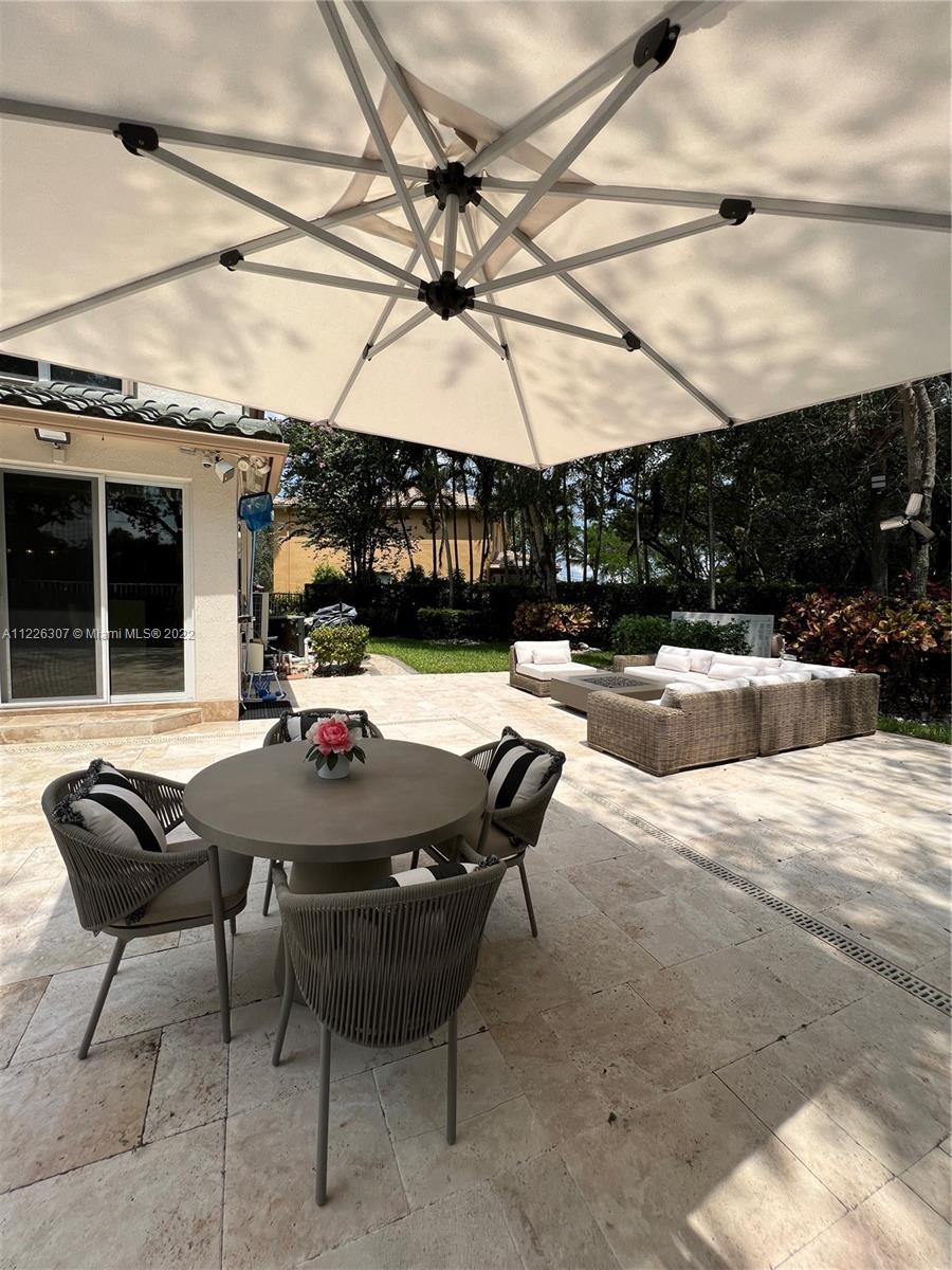 Original owners are ready to downsize as they are empty nesters! Five bedrooms, five full bathrooms. Three-car garage located in Isles At Weston. The house underwent a significant remodeling process in 2017; Enclosed lanai serves as a gathering for the man of the house with their bar and entertainment area. They remodeled the backyard in 2021 with a heated pool, outside shower, a pergola serving for a dining table outdoor, a fully equipped kitchen, and a sitting area with a fire pit connection. Gas Generator installed in 2020—impact sliding doors. The front and interior doors are new—built-in closets in each bedroom. Items that do not convey are the outside heaters and beer fridge cabinet inside the garage—items that convey the TV inside the LED fireplace and the TV in the outdoor kitchen.