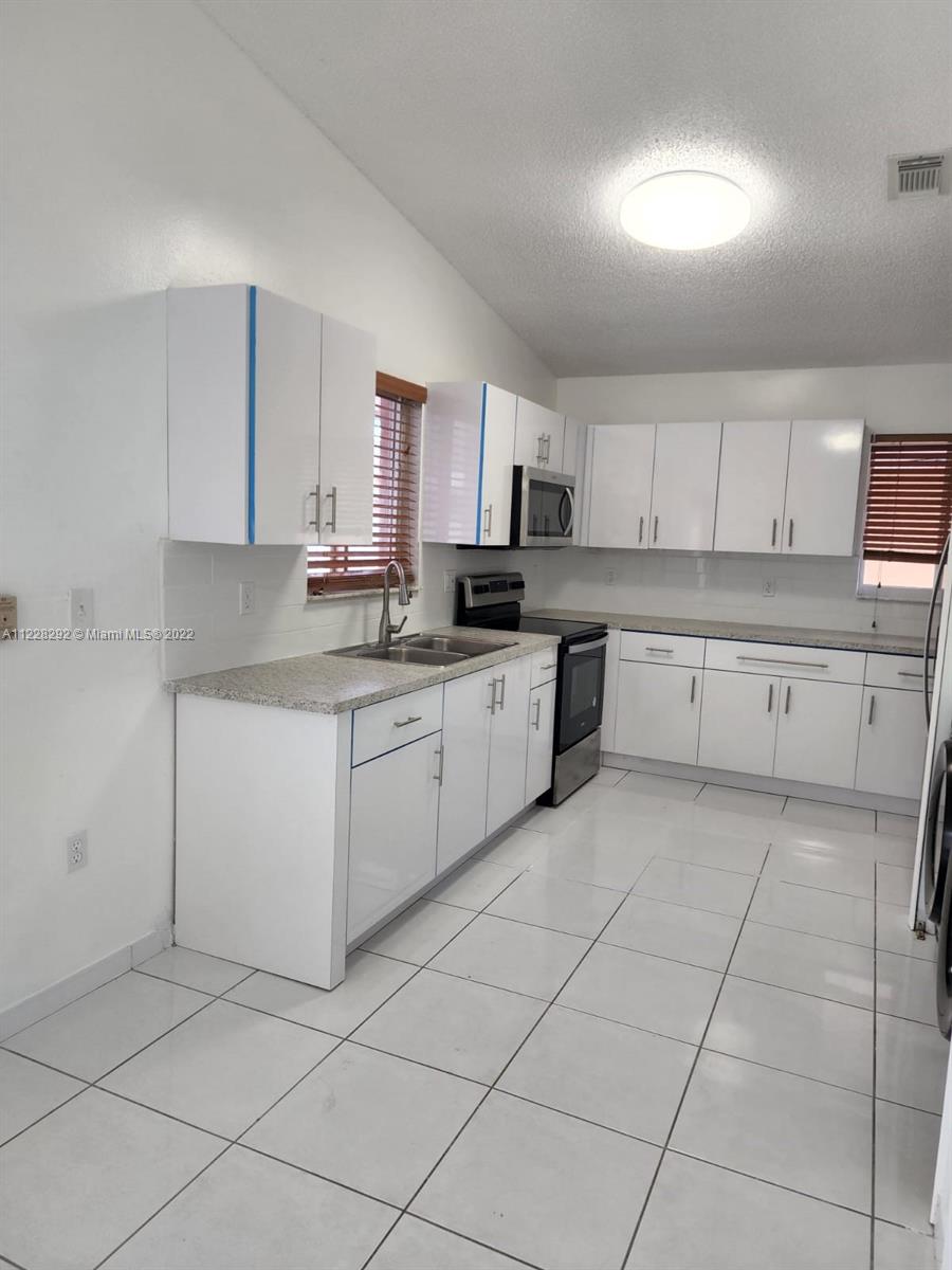 Spectacular house in Hialeah with a covered terrace and tile floor. The community does not have an HOA Fee. Beautifully updated 1 story 3 bedrooms 2 bath, new kitchen cabinets, new sink and faucet, impact glass windows and doors, driveway for 4 cars, new electric range, Fridge, and microwave. New Samsung washer and Dryer. AC and Water heater were replaced 2 years ago. New bathroom sink and faucet. The home was painted recently, with New ceiling fans and lights, new electrical switches. close schools & shopping centers. Easy access to expressways. Centrally located near major hospitals and has easy access to I-75, Palmetto, and Turnpike. House has Ring Bell and Flood Ring working with cameras and WIFI. House also has gutters around the house. We have lenders ready to finance the property.
