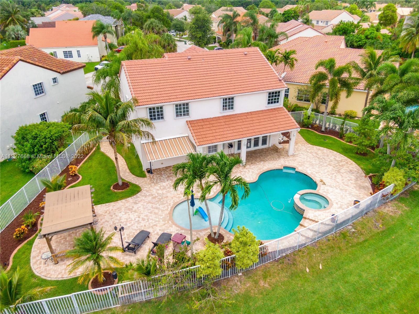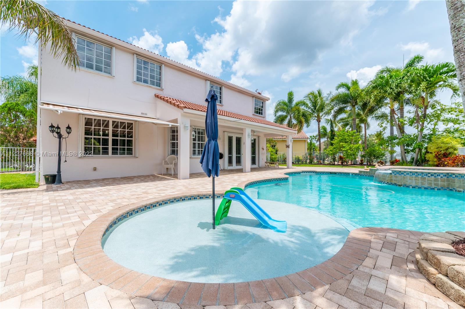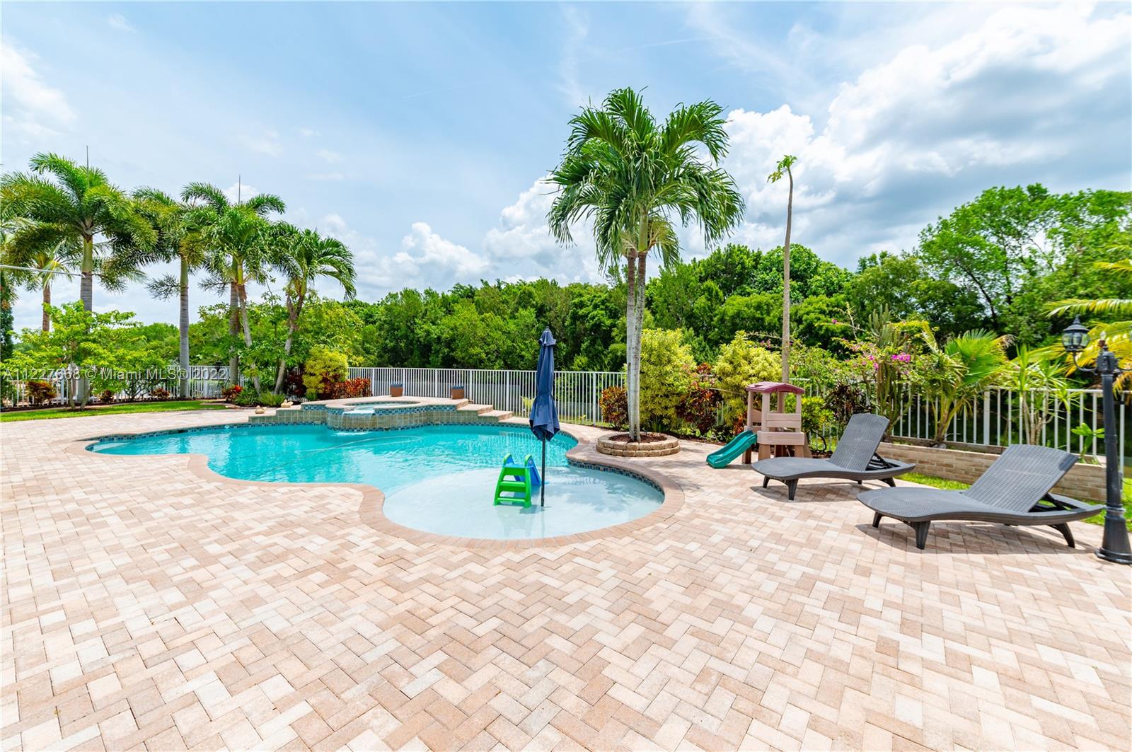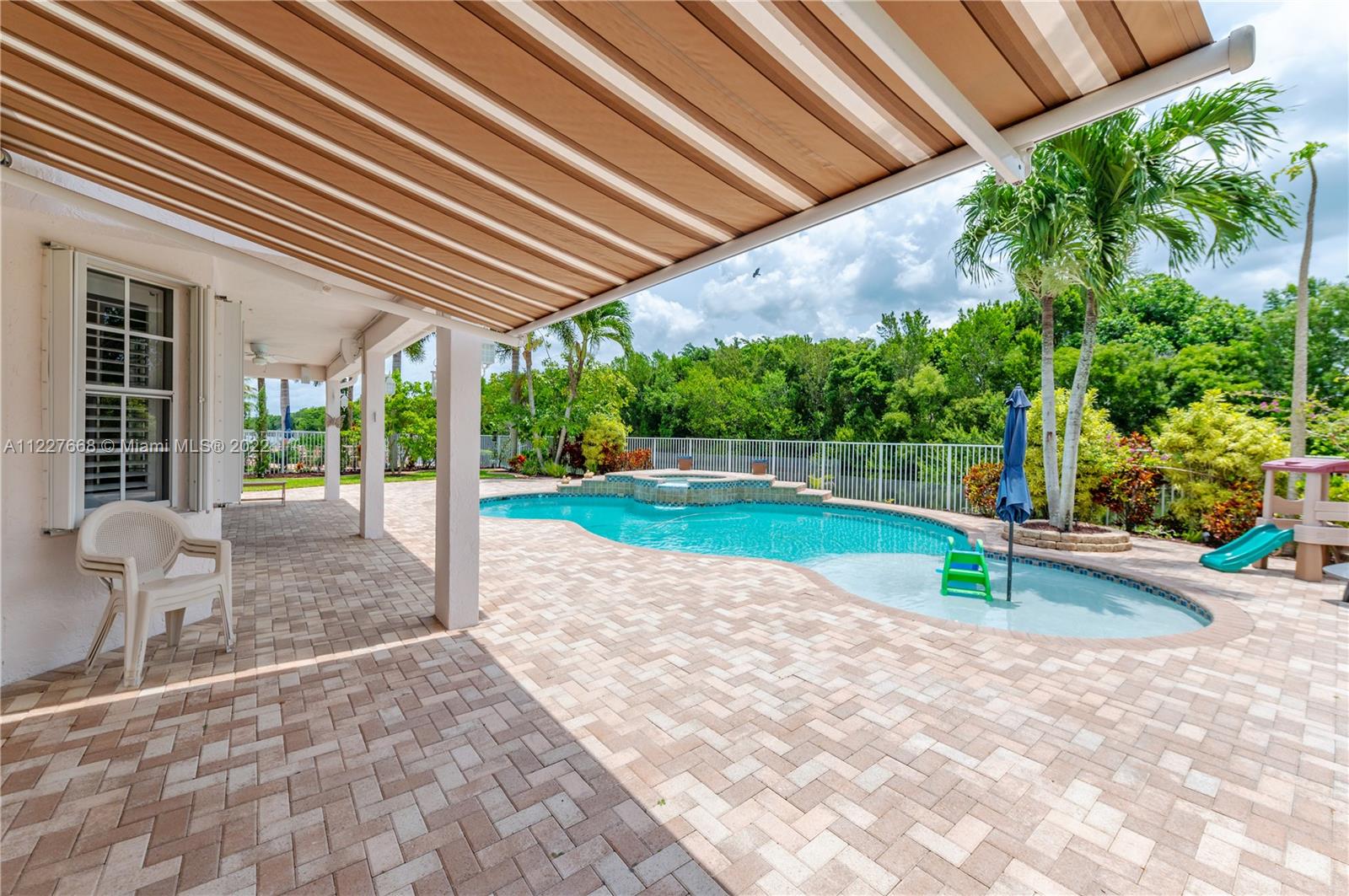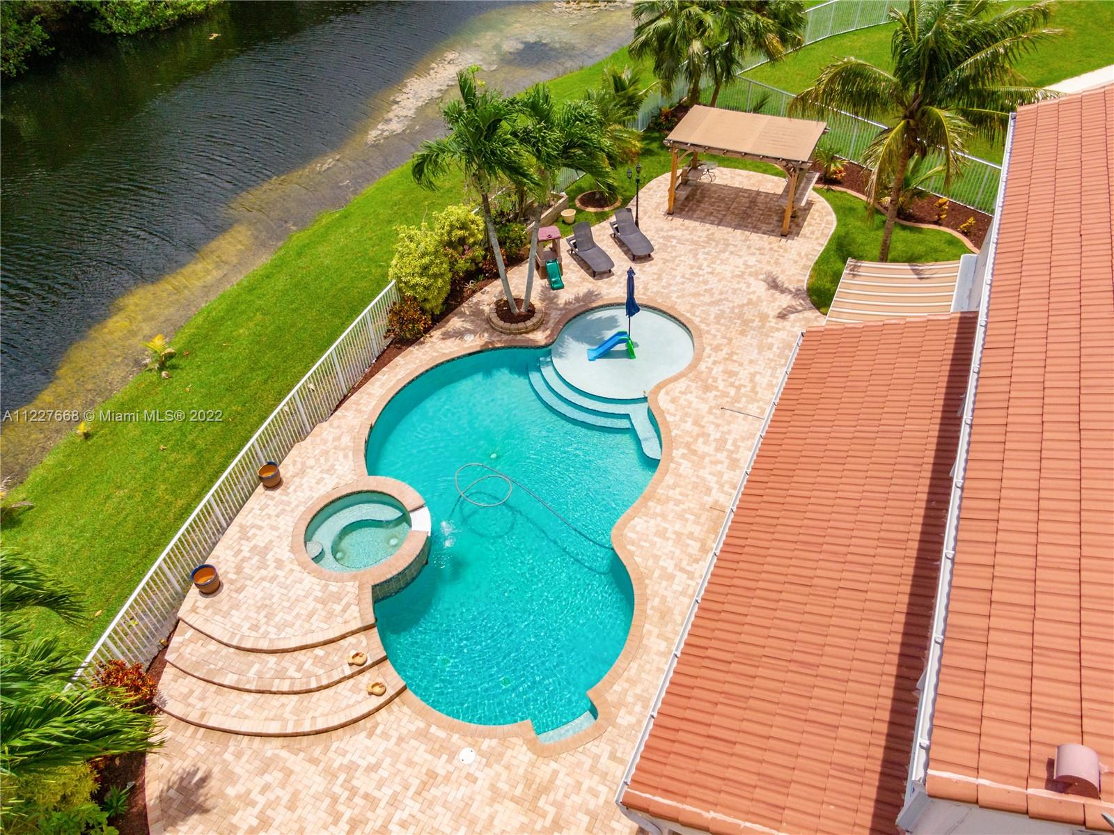 This unique home is located at the end of Cameron Drive peninsula on a cul de sac over a 12,383 sq ft lot. This provides ultimate privacy, a serene water view, and trees that make the sunsets an incomparable spectacle. The private backyard has a magical oversized pool and the patio has been paved and manicured turning the space into one you never want to leave. A brand new roof, installed on 10/2021 will give your family, security, and peace of mind for many years to come. The huge master bedroom offers an additional space that could be used as an office, nursing room or TV area, and his and hers walk-in closets. Accordion shutters throughout the house. This home has been fully upgraded and it's within walking distance from elementary school Eagle Point.