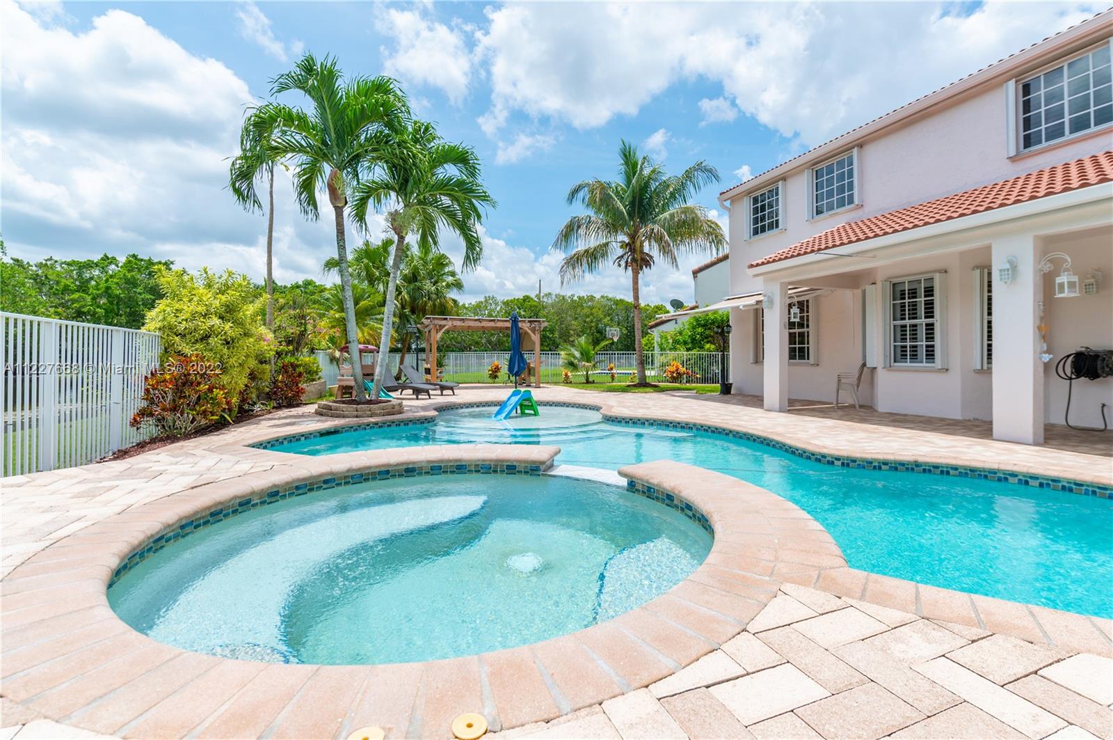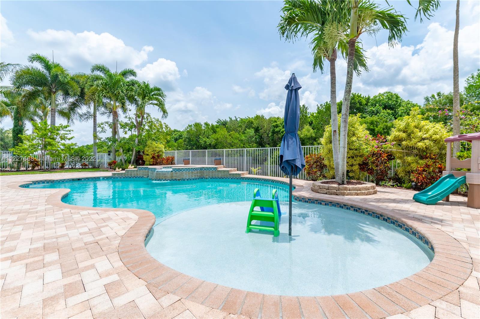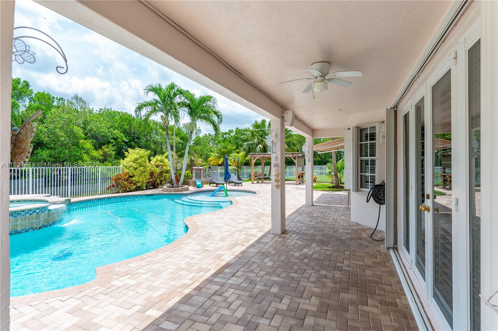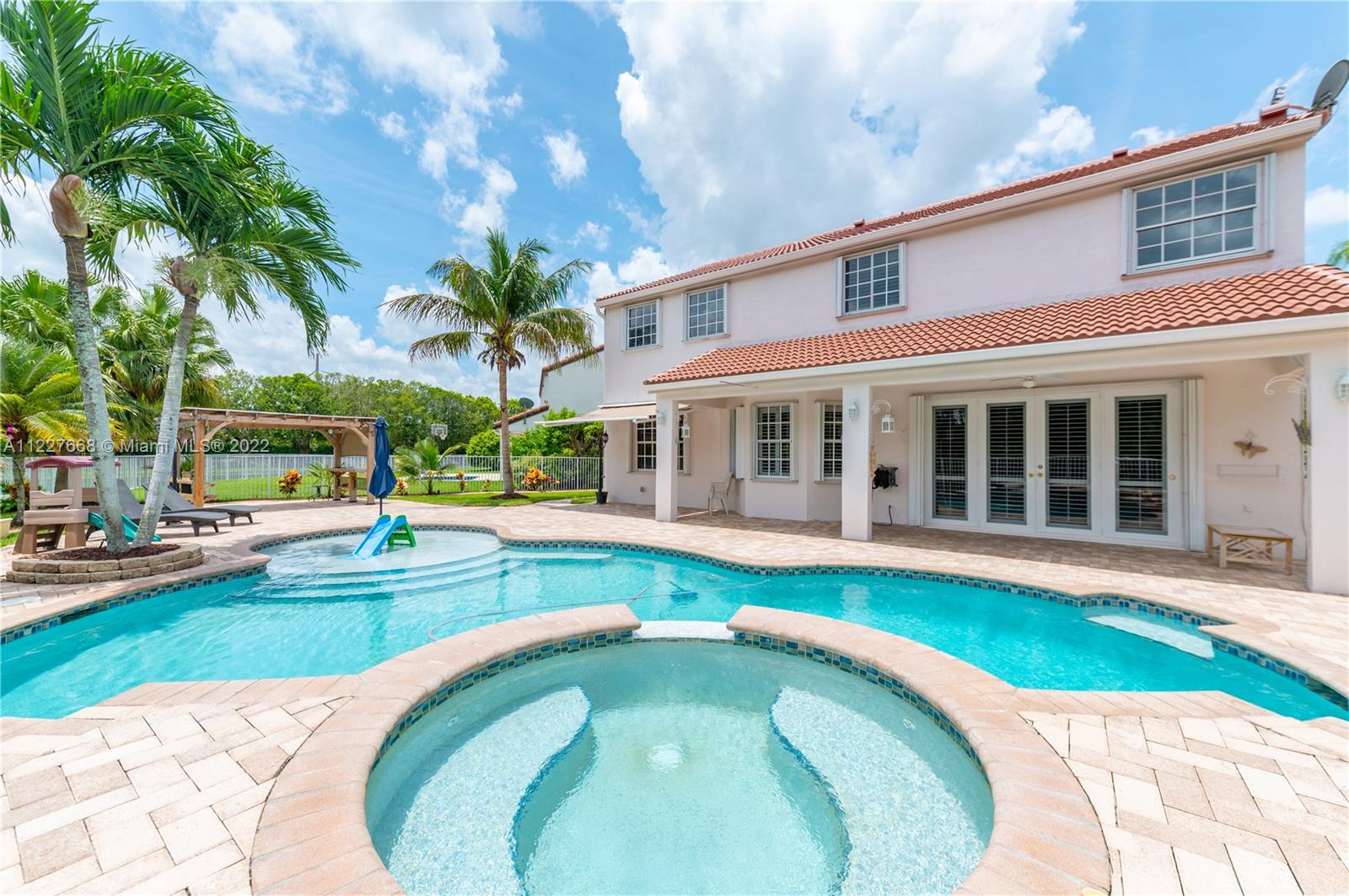 This unique home is located at the end of Cameron Drive peninsula on a cul de sac over a 12,383 sq ft lot. This provides ultimate privacy, a serene water view, and trees that make the sunsets an incomparable spectacle. The private backyard has a magical oversized pool and the patio has been paved and manicured turning the space into one you never want to leave. A brand new roof, installed on 10/2021 will give your family, security, and peace of mind for many years to come. The huge master bedroom offers an additional space that could be used as an office, nursing room or TV area, and his and hers walk-in closets. Accordion shutters throughout the house. This home has been fully upgraded and it's within walking distance from elementary school Eagle Point.