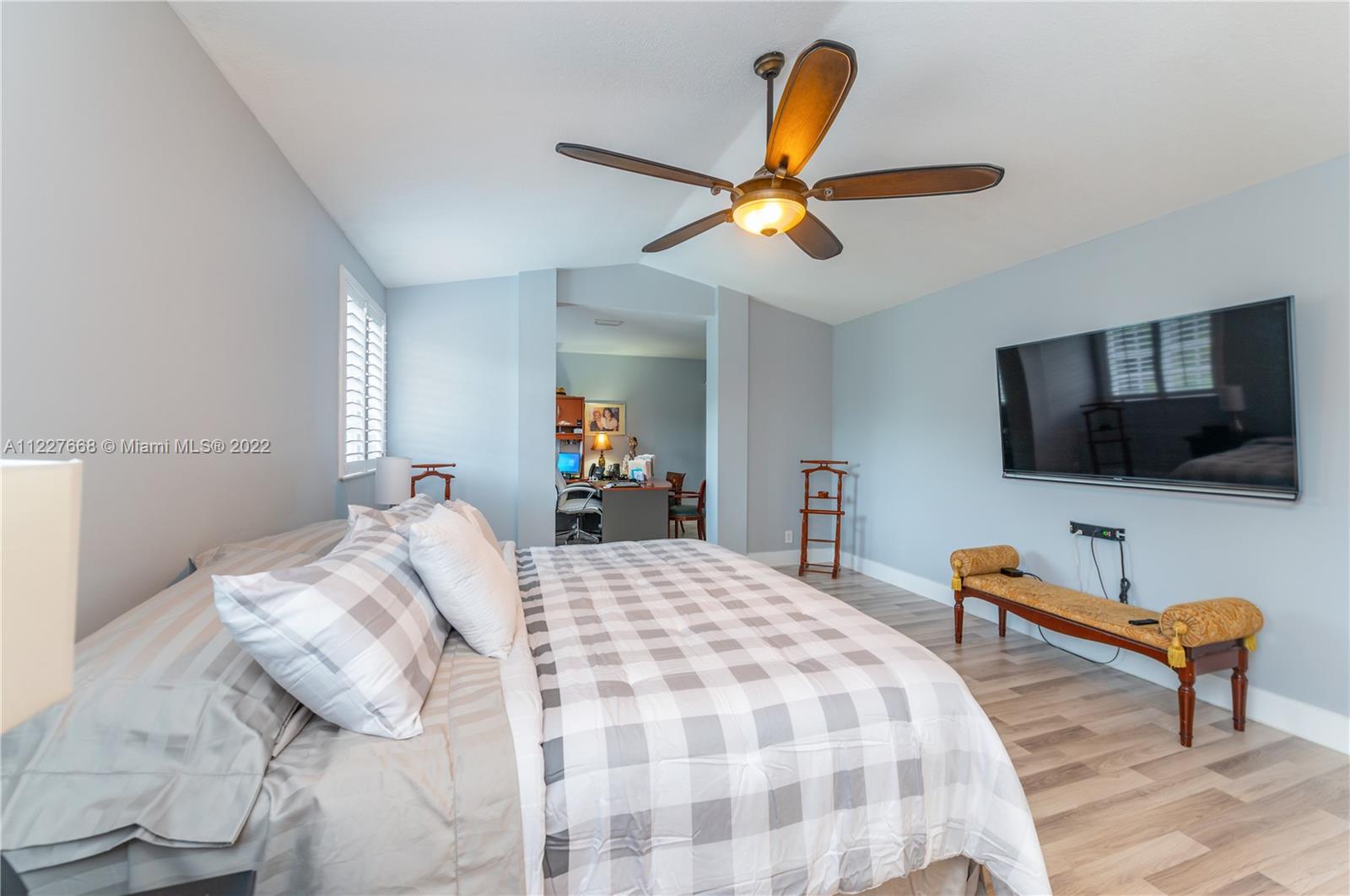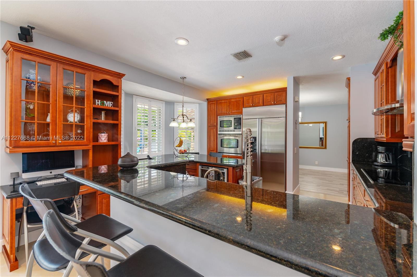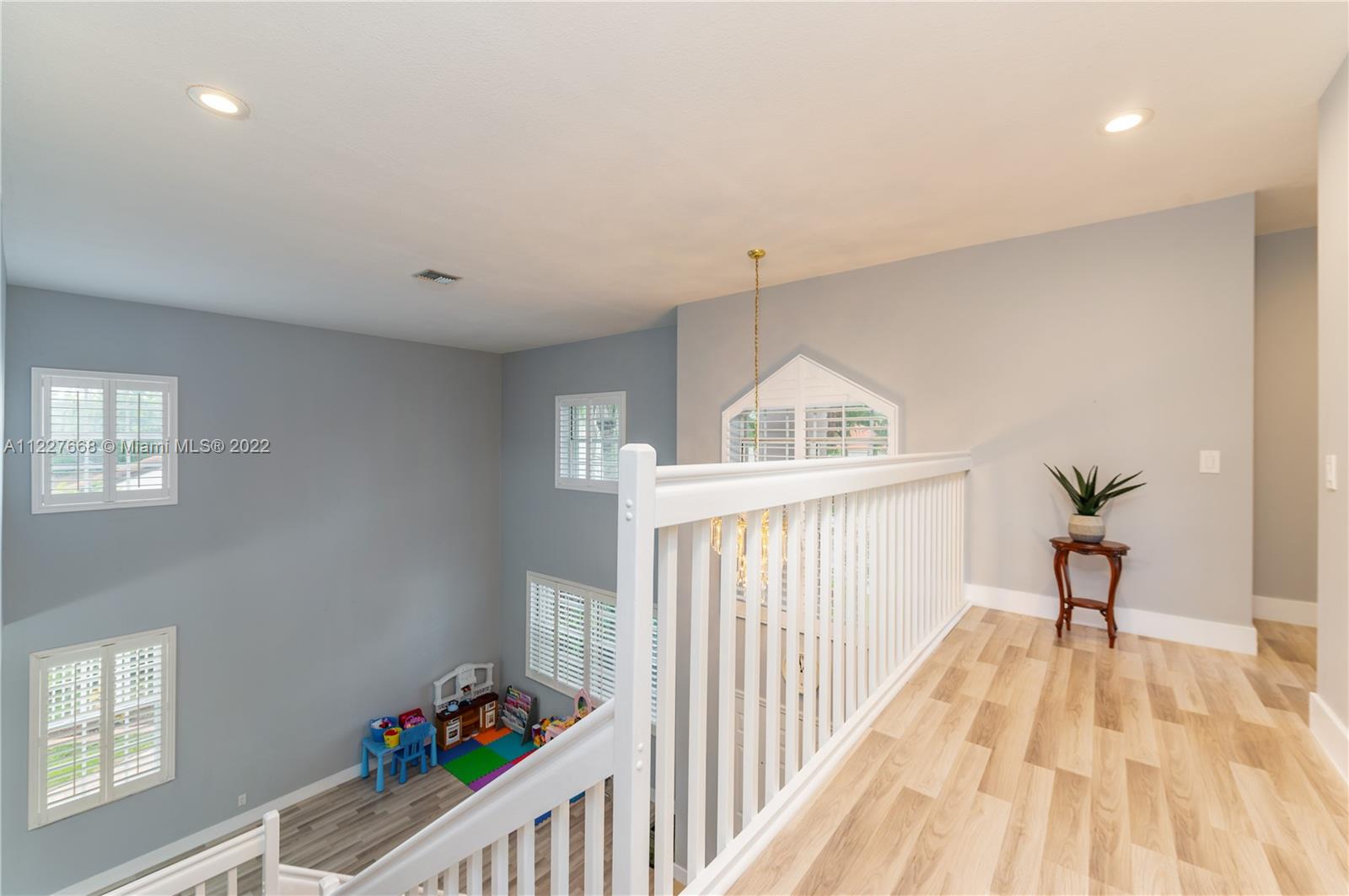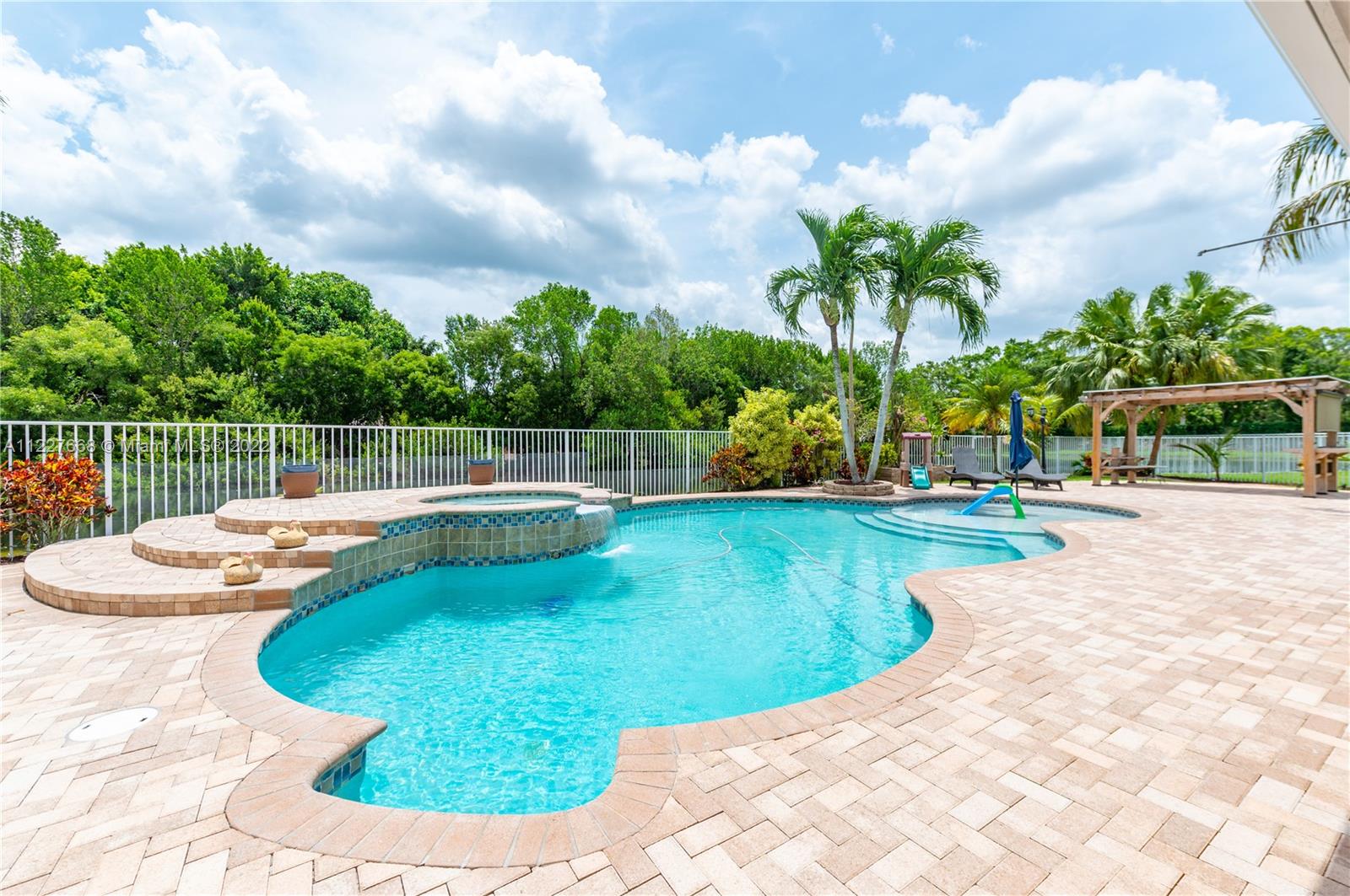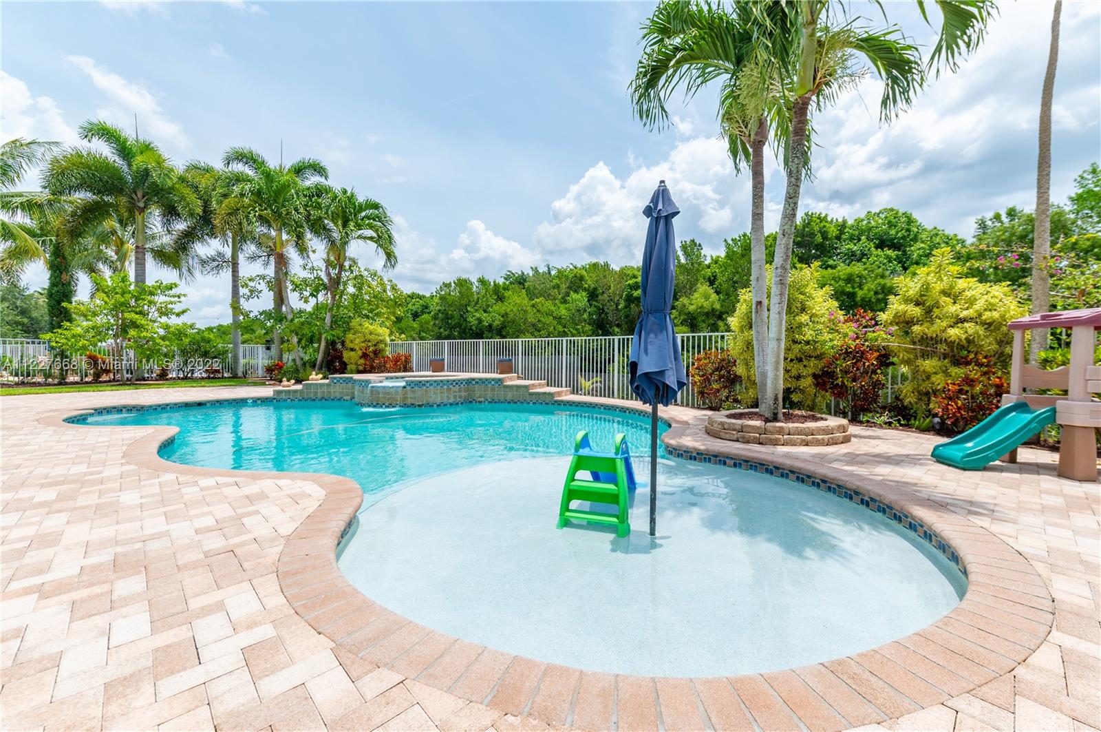 This unique home is located at the end of Cameron Drive peninsula on a cul de sac over a 12,383 sq ft lot. This provides ultimate privacy, a serene water view, and trees that make the sunsets an incomparable spectacle. The private backyard has a magical oversized pool and the patio has been paved and manicured turning the space into one you never want to leave. A brand new roof, installed on 10/2021 will give your family, security, and peace of mind for many years to come. The huge master bedroom offers an additional space that could be used as an office, nursing room or TV area, and his and hers walk-in closets. Accordion shutters throughout the house. This home has been fully upgraded and it's within walking distance from elementary school Eagle Point.