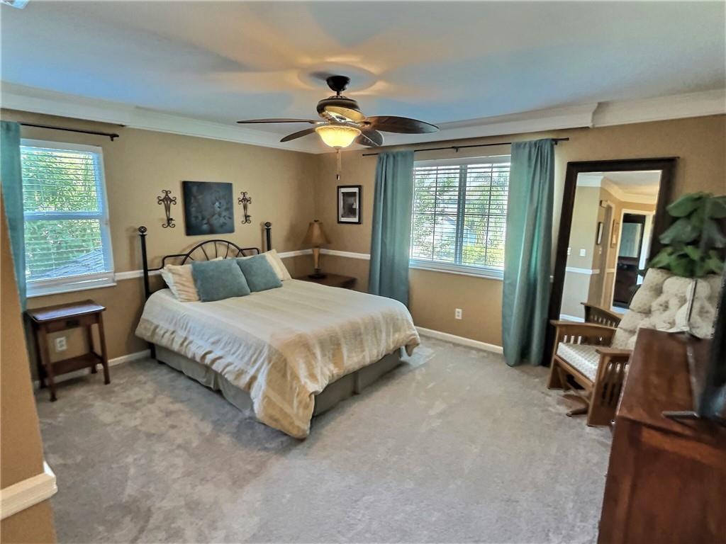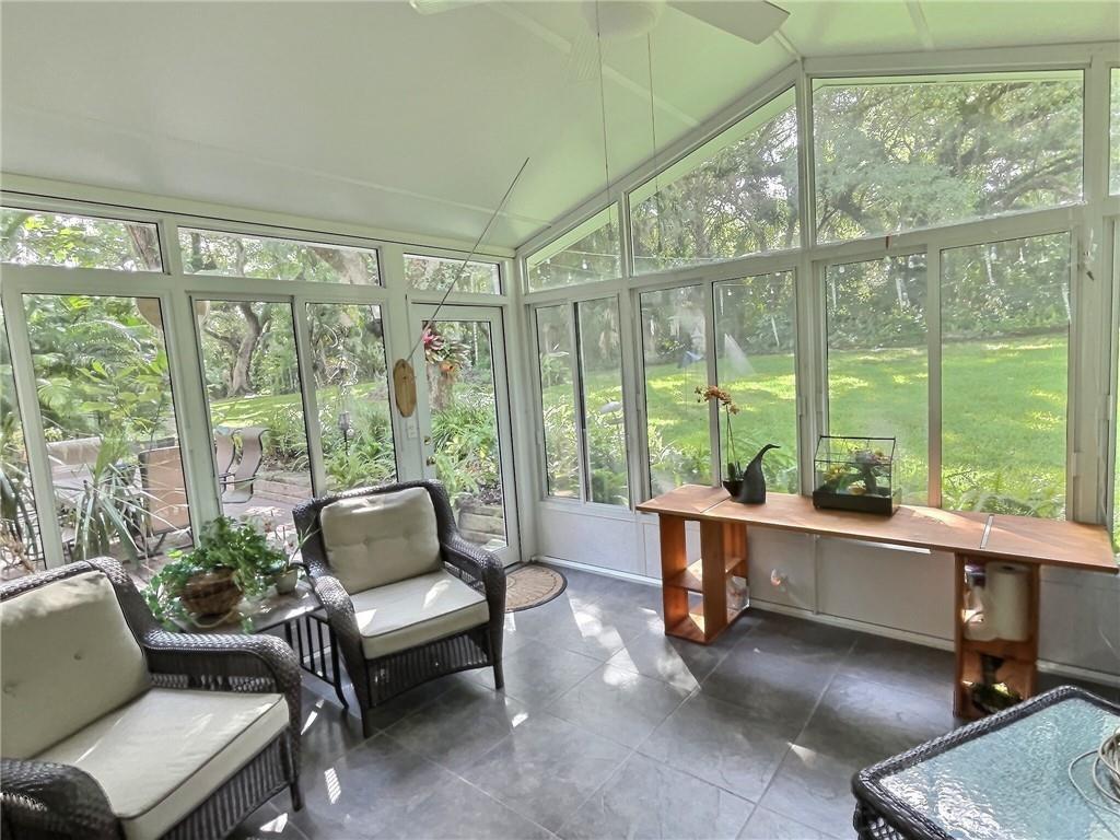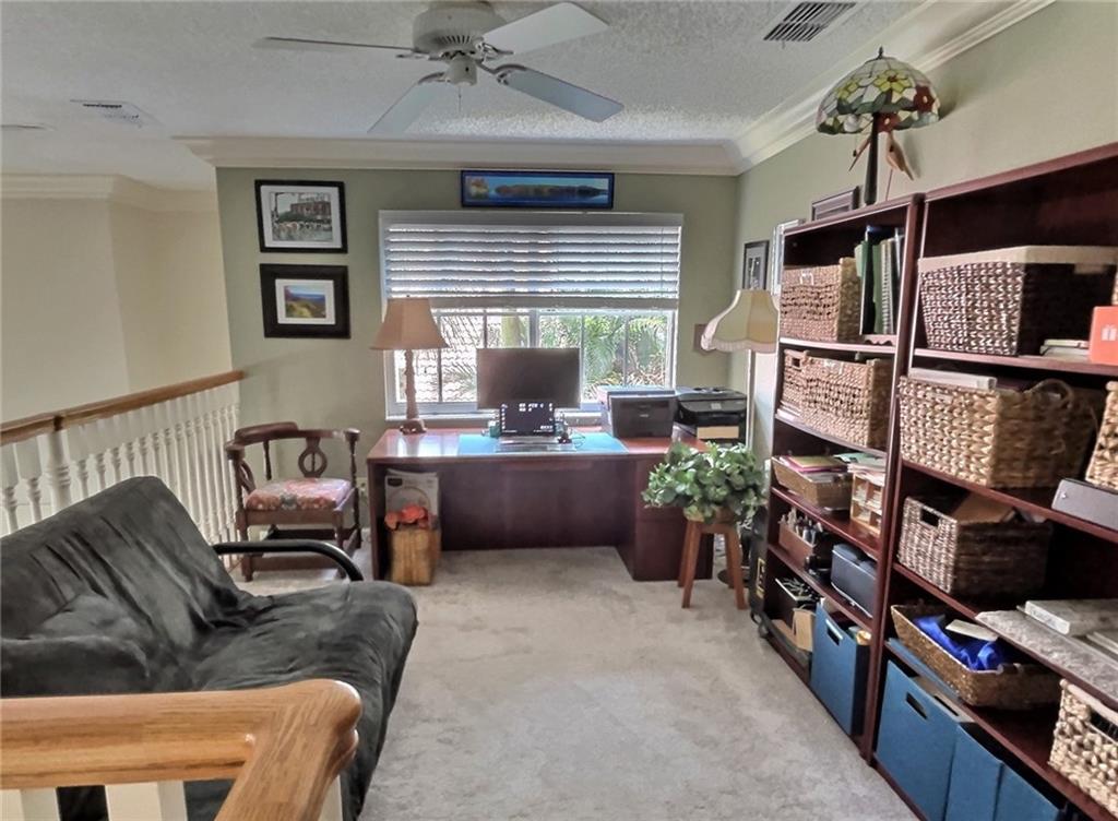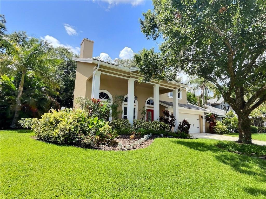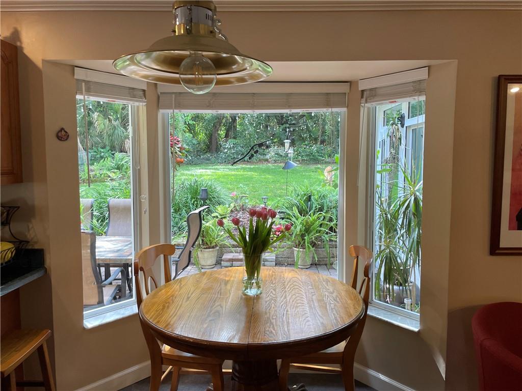 Spacious model home on the RIDGE with tons of upgrades, private wooded backyard, & comfy living spaces. Upgrades include fireplace, sunroom, hurricane windows and doors, vaulted ceilings, granite, heated jet tub, built-in wine fridge, stainless steel appliances, loft/office easily converted to 4th bedroom, mirrored panels, garage with built-in cabinets, natural stone driveway pavers, new AC & water heater, and crown modeling. Community includes miles of wooded trails, lake access, and automatic membership in golf/country club, large community pool, fitness room, playground, tennis, basketball, pickleball, and restaurants. 1 mile to shopping and highways. Great schools. Newly painted exterior. Mature oaks and a private backyard on Pine Island Ridge set this gorgeous home as a rare find!