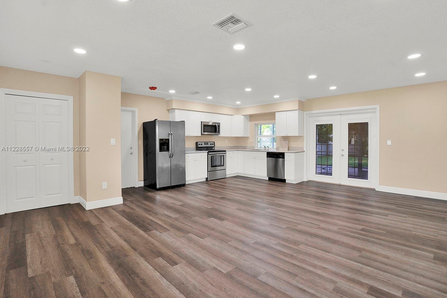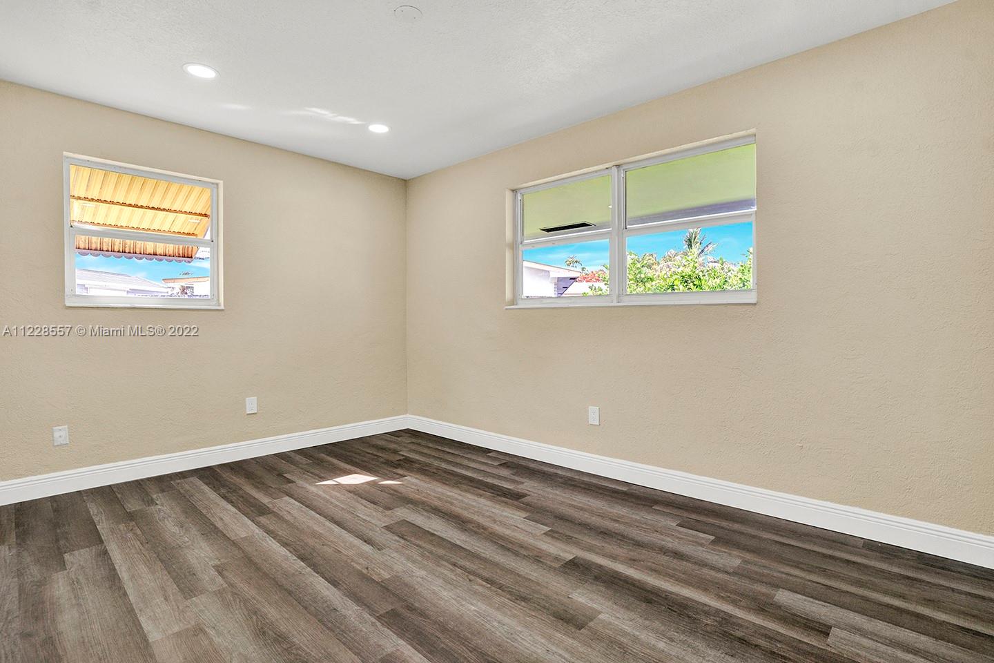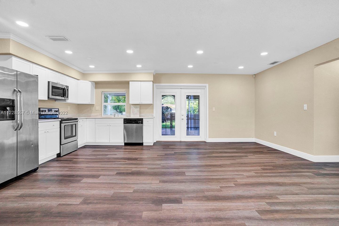 Remodeled 2/2 with an office that could be a bedroom is ready to move in! Addition not reflected in tax rolls total sqft is 1650. Property is on a large lot (10,000+ sq. ft.) and features new vinyl flooring, new a/c, updated kitchen with stainless steel appliances, hurricane impact windows, redone vanities in baths, huge patio, one-car garage and so much more. Make this your home today!