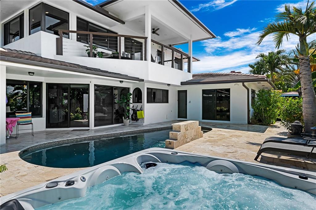 Have you ever found something valuable hiding in plain sight? Here is a prime example, a jewel of property minutes to everything that Fort Lauderdale has to offer, yet tucked away in the Exclusive, gated neighborhood of Bal Harbor. This magnificent waterfront property offers privacy and tranquility, with 3064 square feet of gorgeously finished living space on 7,500 Sq Ft overlooking the Middle River. The advantages are endless: 75 ft of water-frontage, 17,000-pound boat lift, an open floor plan, fully renovated in 2019. New roof in 2020. The pool and deck were just renovated. There is natural gas off the street. The second floor is the primary bedroom encompassing 1,800 sq ft. All hurricane impact windows and doors.