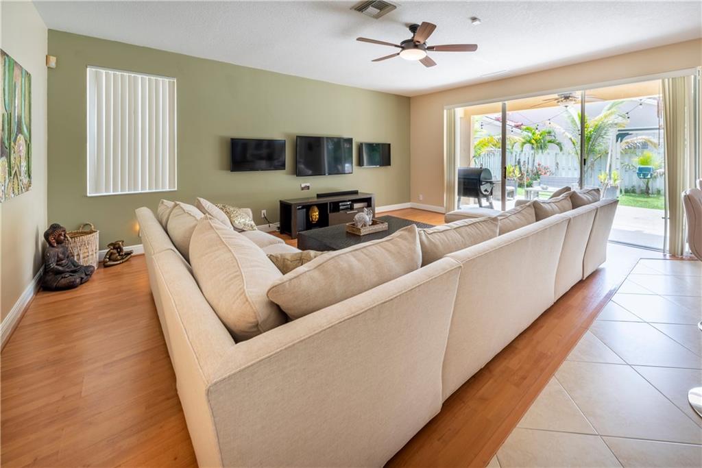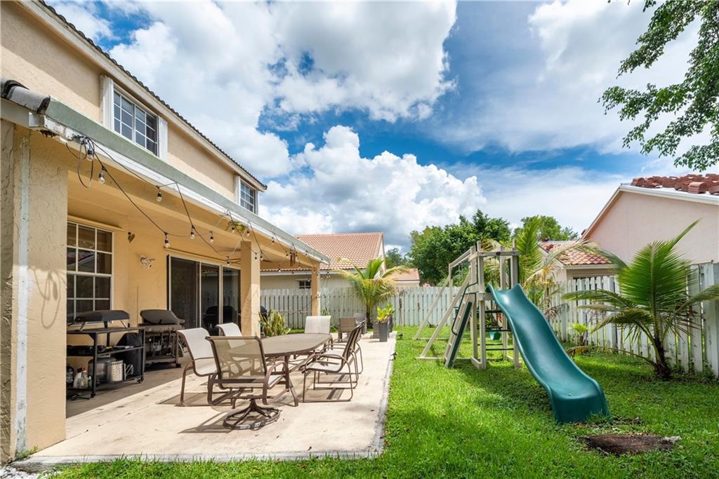 Walk in and feel right at home! This 4 bedroom, 2.5 bathroom home is light and bright! Features include oversized master with sitting area, full hurricane protection, tile and laminate flooring, formal living and dining rooms, family room, smart thermostat, keyless entry, Nest door bell, white kitchen cabinets, granite counters and stainless appliances and more. The refrigerator and dishwasher are brand new. Located in Desirable Weston Gated Neighborhood, community pool and playground and walking distance to Publix and A rated Weston schools! This one won't last!