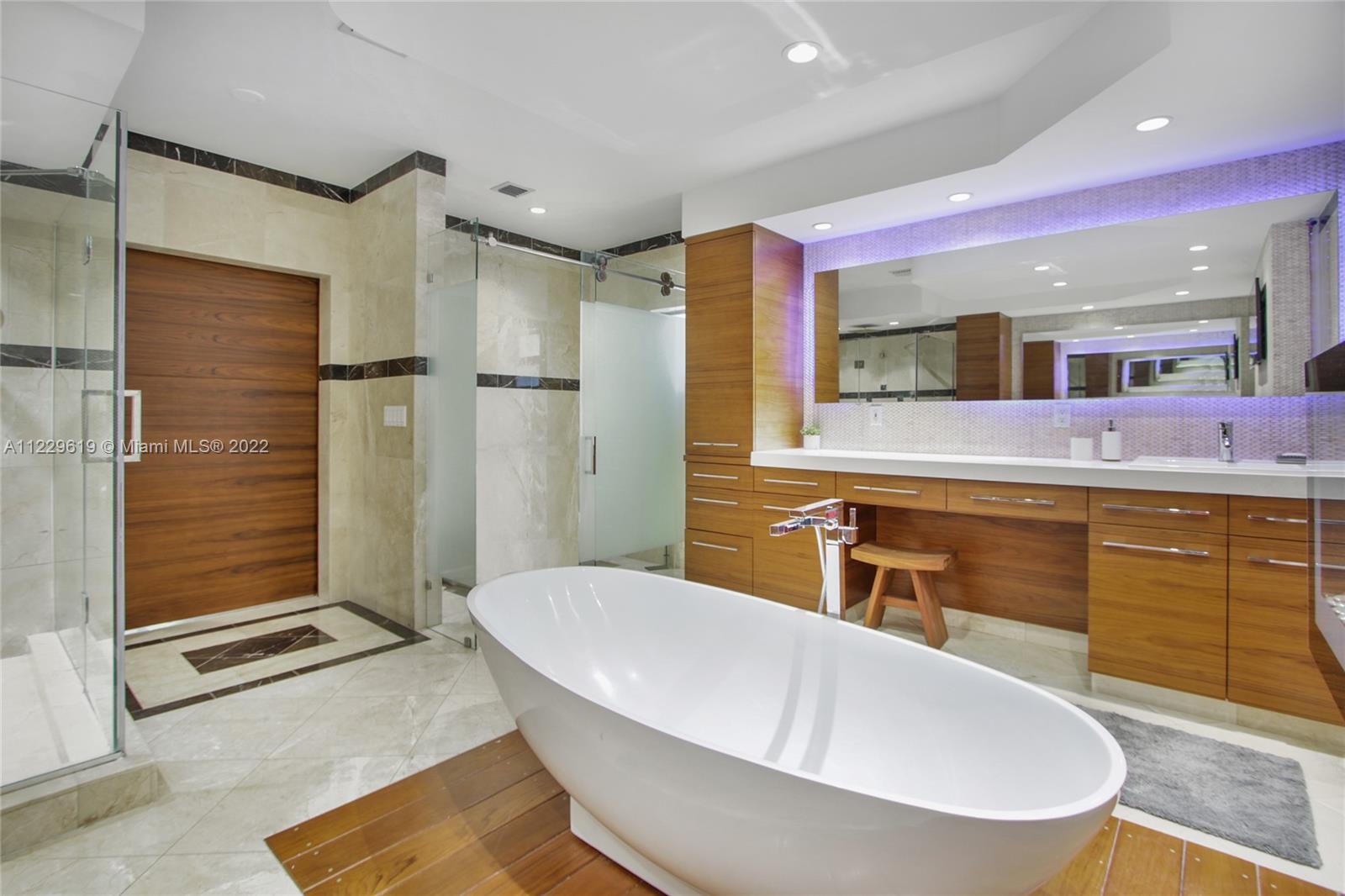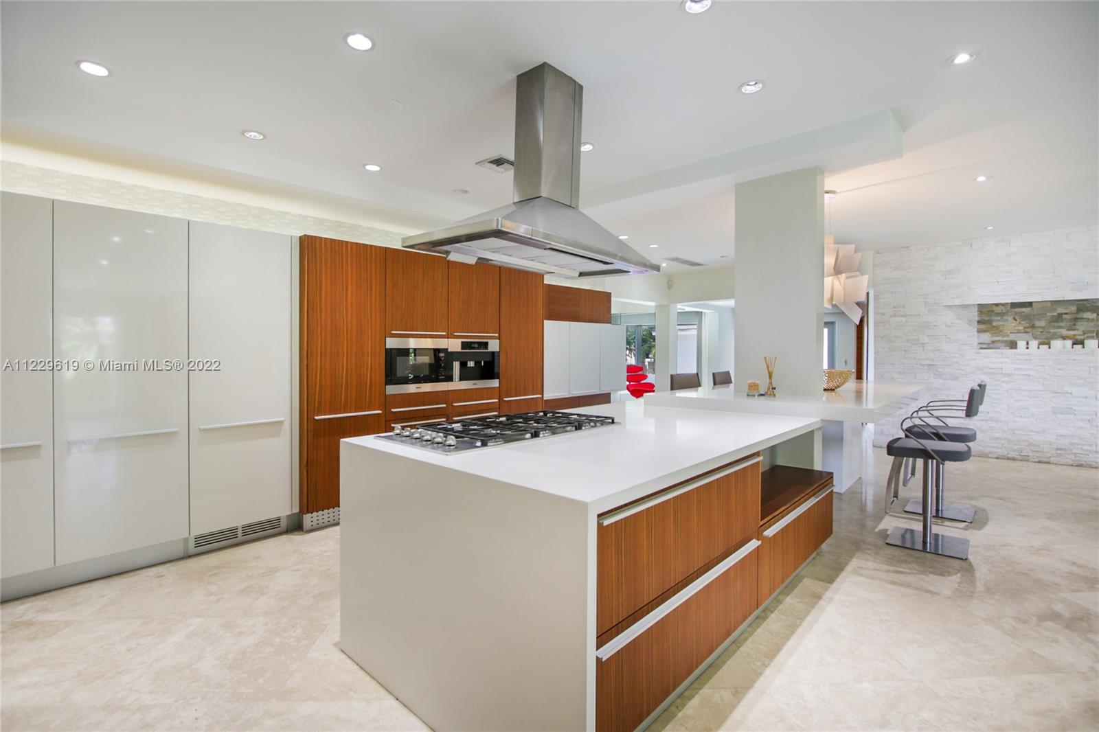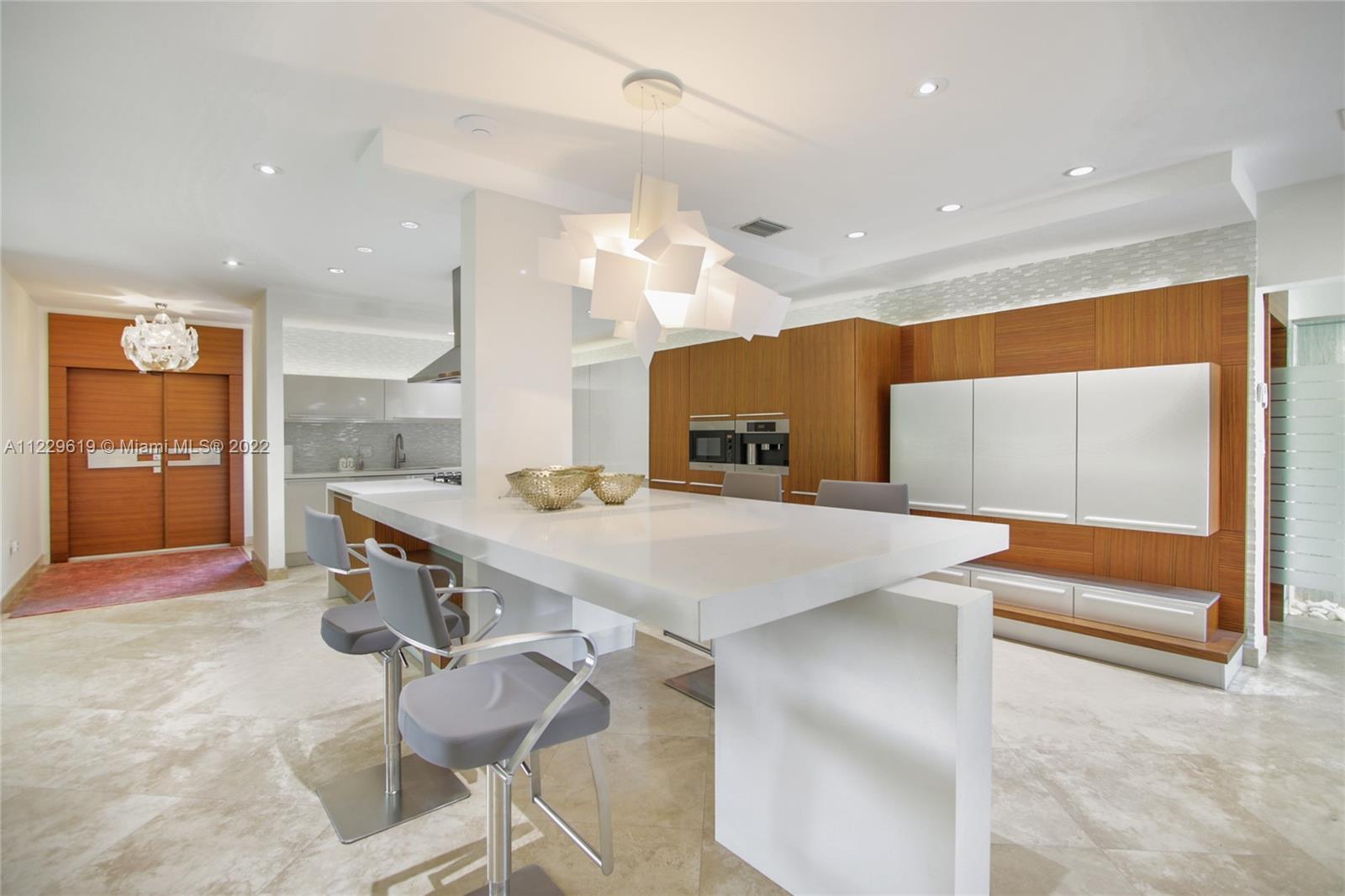 Spectacular fully renovated house in desirable Bay Harbor Islands, featuring 4 bedrooms + DEN & 4.5 bathrooms Turn-key residence with Modani & Addison House Furnitures. Huge master bedroom overlooking the backyard/ pool. Master bathroom with bidet and double sinks. Beautiful dining room overlooking the front yard. State of the art kitchen with top-of-the-line appliances (Miele and Liebherr) In the upper floor, three big bedrooms (two overlooking the backyard) and two full bathrooms. Downstairs there is an open area that can be used as an office, guest room or a DEN. It has a full bathroom next to it. Two car garage. Motorized blinds, impact windows, two new air conditioners & generator.