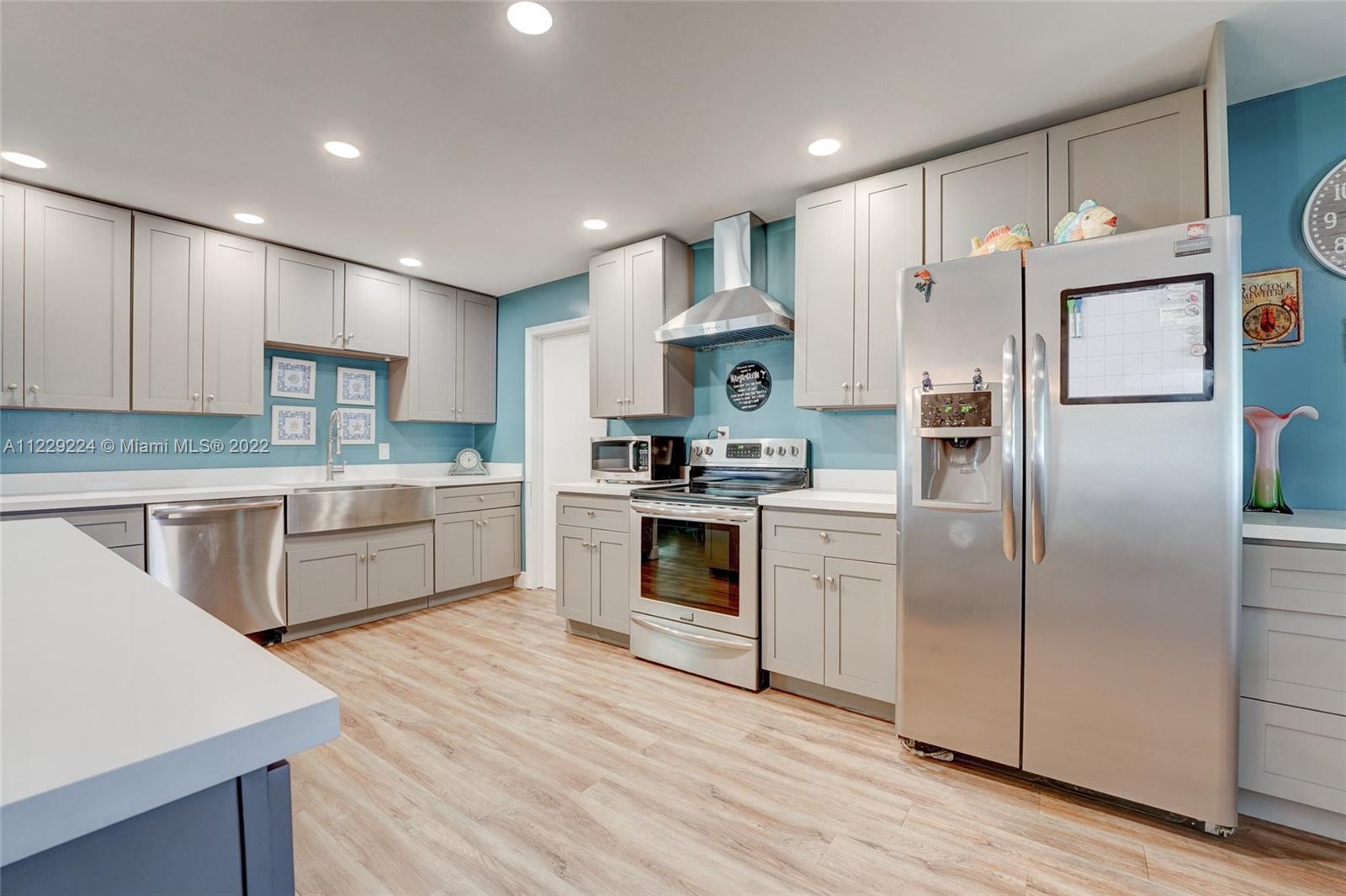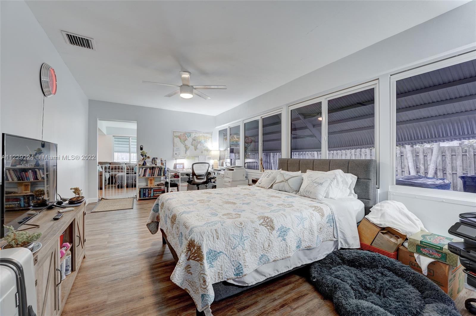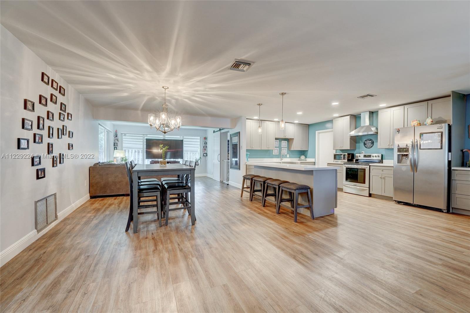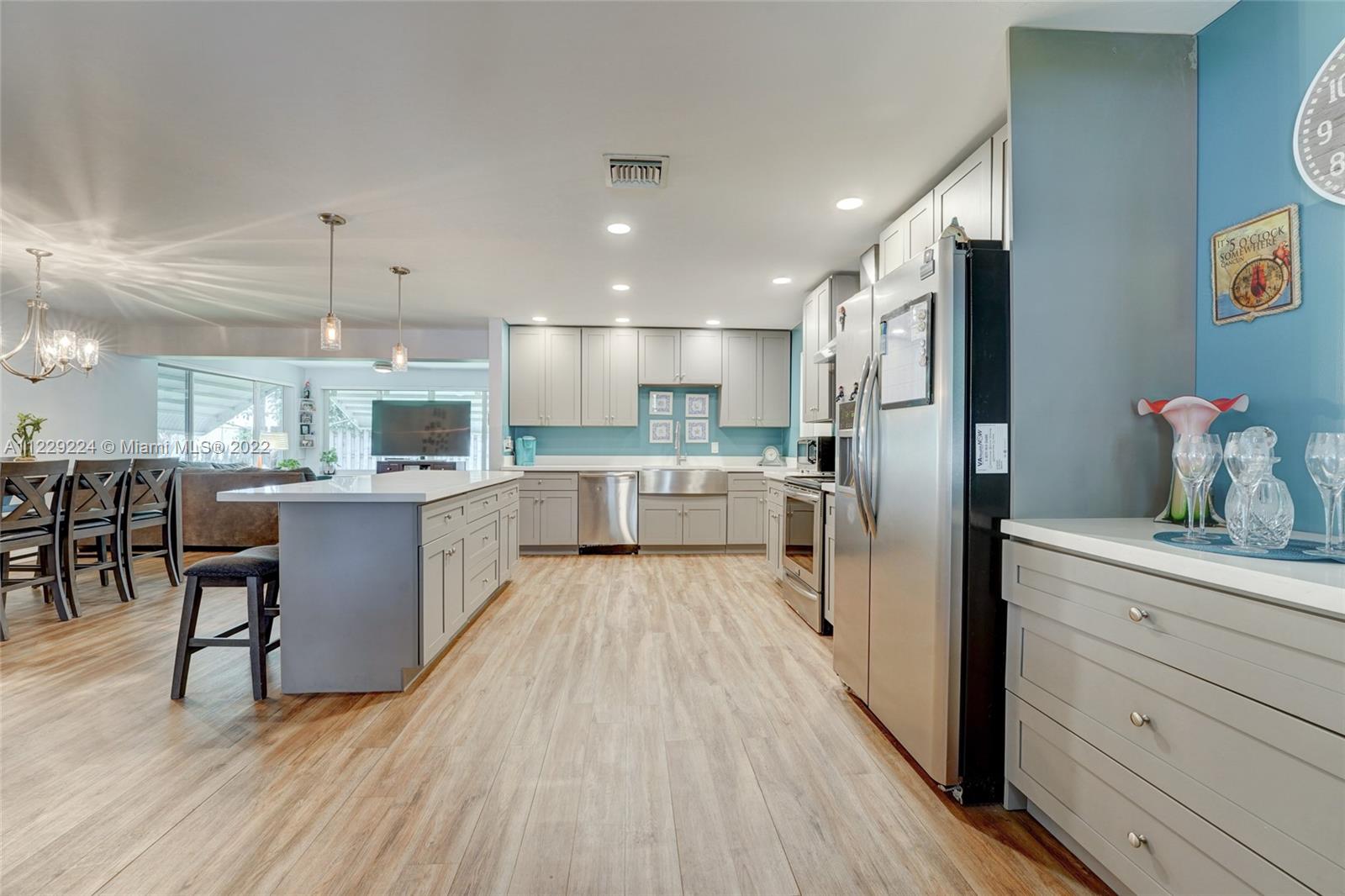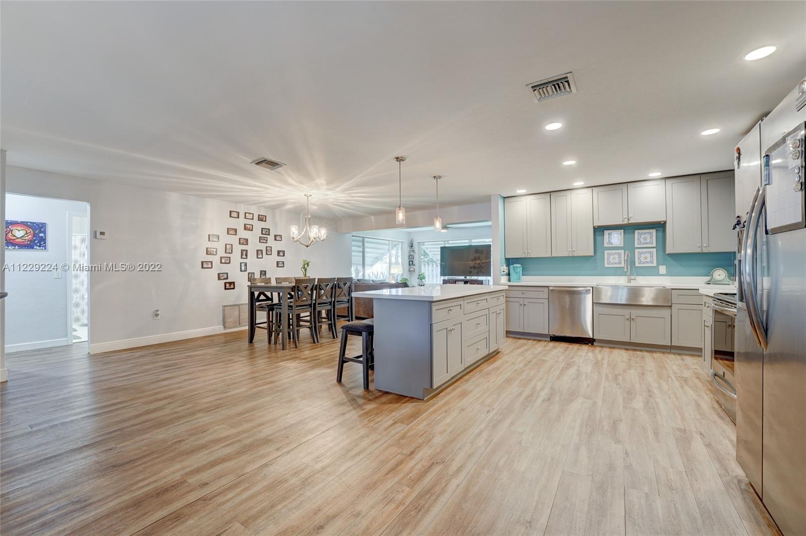 1400 sqft of open concept living space in this beautifully remodeled 2/2 plus an enclosed Florida room that is being used as huge 3rd bedroom. Amazing updated kitchen featuring huge center island with quartz countertops, soft closed drawers, wood cabinets and s/s appliances which is the centerpiece of the house. Neutral vinyl flooring throughout. 90% of the home is impact windows except for the enclosed family room. Huge fence in yard with plenty of room for a pool. Large front screened in enclosure. No HOA. AS IS. Can rent right away.