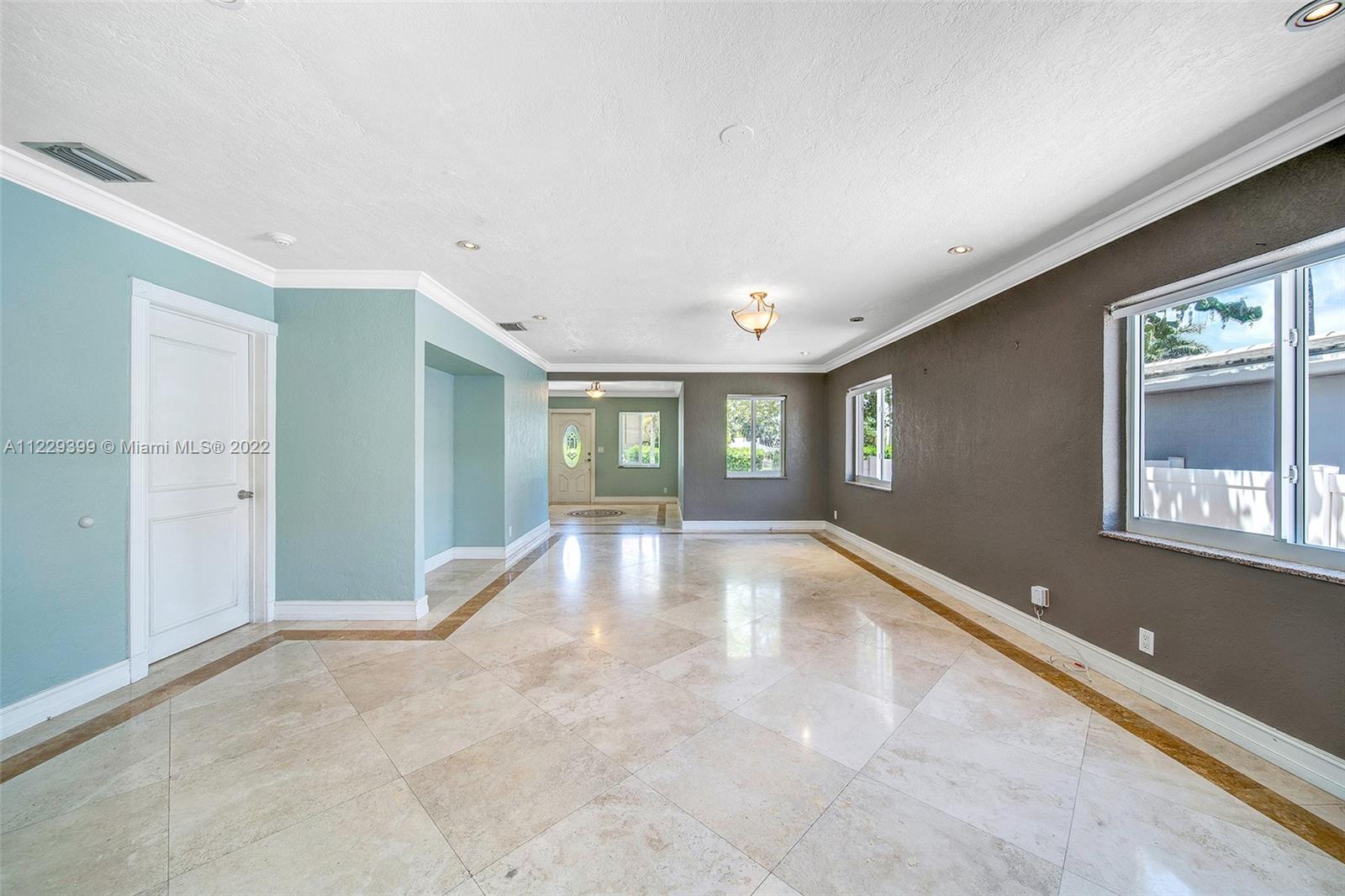 LOCATION, LOCATION...!! DRASTICALLY REDUCED PRICE Hollywood blvd. East of US1, close to Hollywood downtown, banks, bars, shops and famous Ocean Hollywood boardwalk! Inter coastal. Many beautiful restaurants on the water, fancy Margaritaville! 2 bedrooms + office with 2 full bathrooms. Nicely kept house with marble floors, open kitchen, dining room, big living room. Hurricane proof windows, high elevation with crawling space uncommon for this area, which helps with flood insurance. New high efficiency A/C (about a year old) and NEW aluminum roof w/warranty with solar panels (paid off). SELLER IS VERY MOTIVATED, please send offers. Termites inspection is done recently, so its clean. Link for video at You tub with address.
