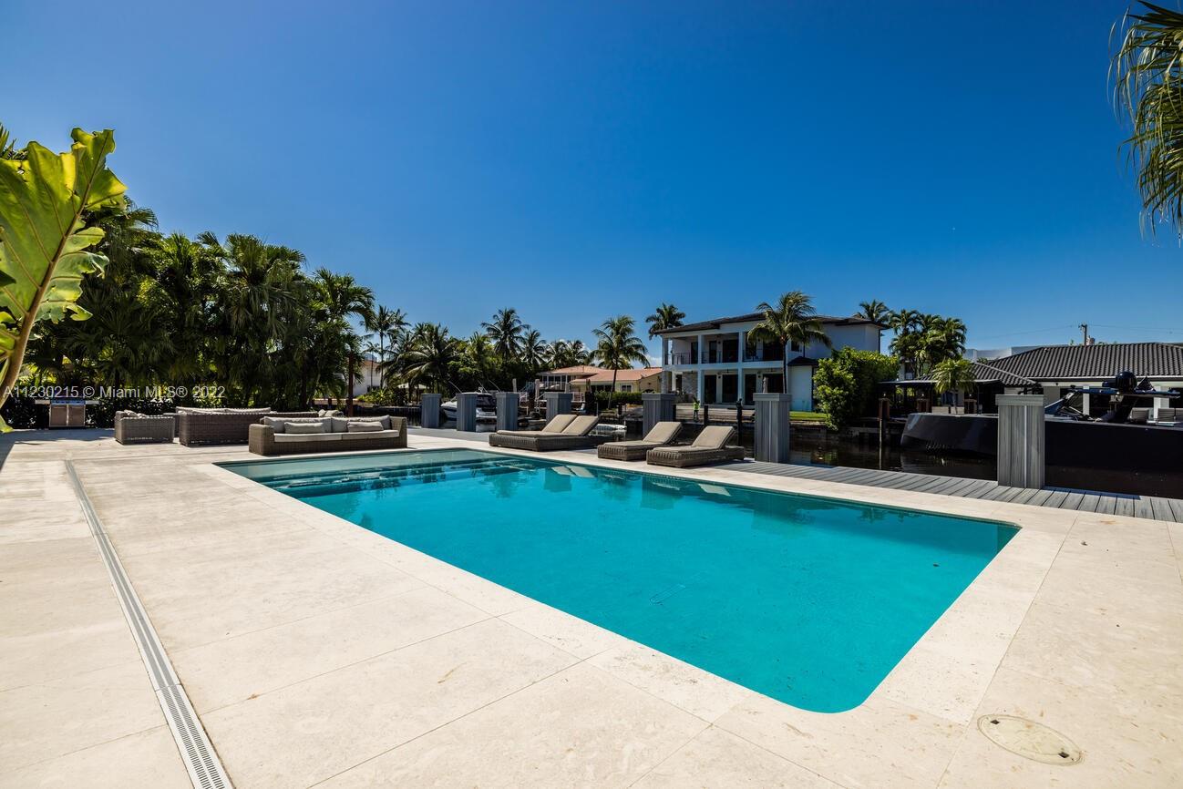 Brand New Construction Waterfront Home with 80 ft of dockage on oversized lot located at the private gated community of Eastern Shores. Boaters dream no fixed bridges & New Sea Wall. This luxurious masterpiece features many upgrades that were custom handcrafted, equipped w/ Sonos sound system, Tesla fast-charging station, and automated AC, lighting, & curtains controlled from app. Endless amounts of natural lighting in the huge high ceiling living area w/custom fireplace, stunning 16ft waterfall island Kitchen, and porcelanosa floors leading you upstairs to an oversized master suite offering bathtub and double shower & sinks, with private balcony to enjoy great sunset water views. Just minutes away from Sunny Isles Beach, Bal Harbour, Aventura Mall, and more shopping & dining.
