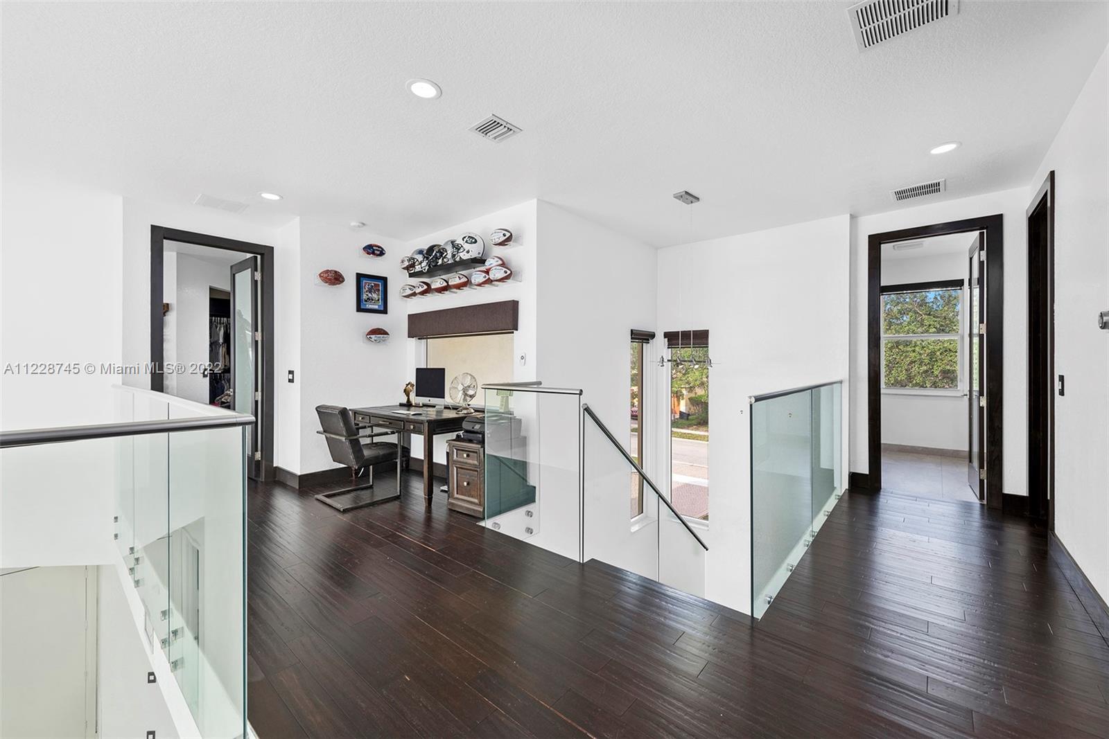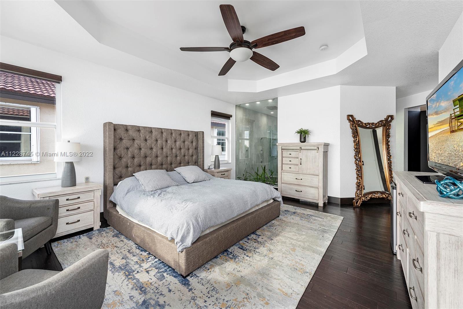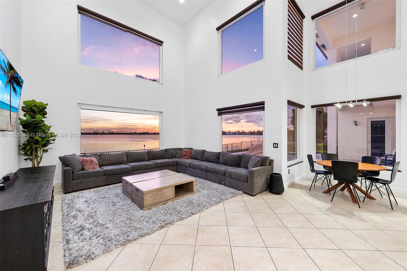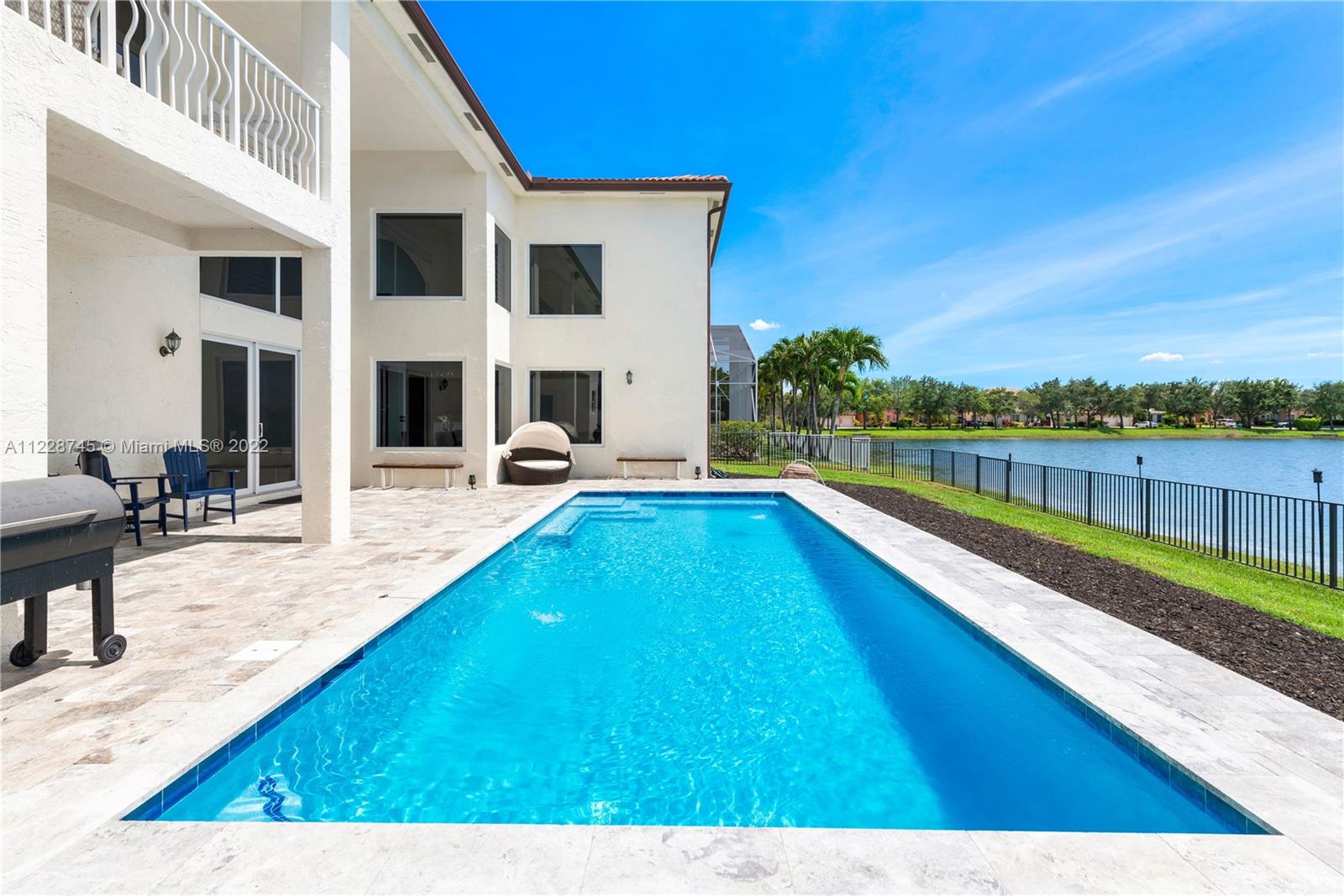 This stunning two-story waterfront home is located in the Resort style community of Sunset Lakes. As you step into the home you are captivated by the high ceilings, beautiful water views and natural light. The remodeled second floor includes a private master suite with a balcony and expansive master bath with rain shower, wall jets and separate soaking tub. Also included are custom glass railings, closets, wood floors, LED lighting, electric window treatments and impact windows. The downstairs features a large open kitchen/family room, separate formal dining/living room, office, laundry and guest bedroom with bath. This Catherine model offers a great layout and is perfect for entertaining with a new heated saltwater pool and patio area that offers amazing panoramic lake and sunset views!