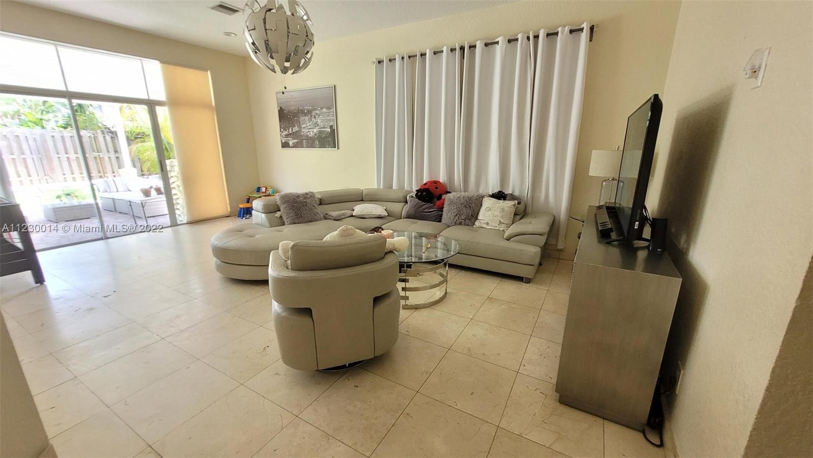 Beautiful Single Family Home with 4 Bedrooms 3 Full Bathrooms 2 Car Garage, Great Patio, large kitchen, high ceilings, spacious rooms, outdoor porch for family gathering. Stainless steel appliances, granite counter tops, marble floors in 1st floor. Near A+Schools, shopping center, restaurants, and close drive to Miami International Airport. 24 hours. Security with large playground area. Make this House yours !!!
