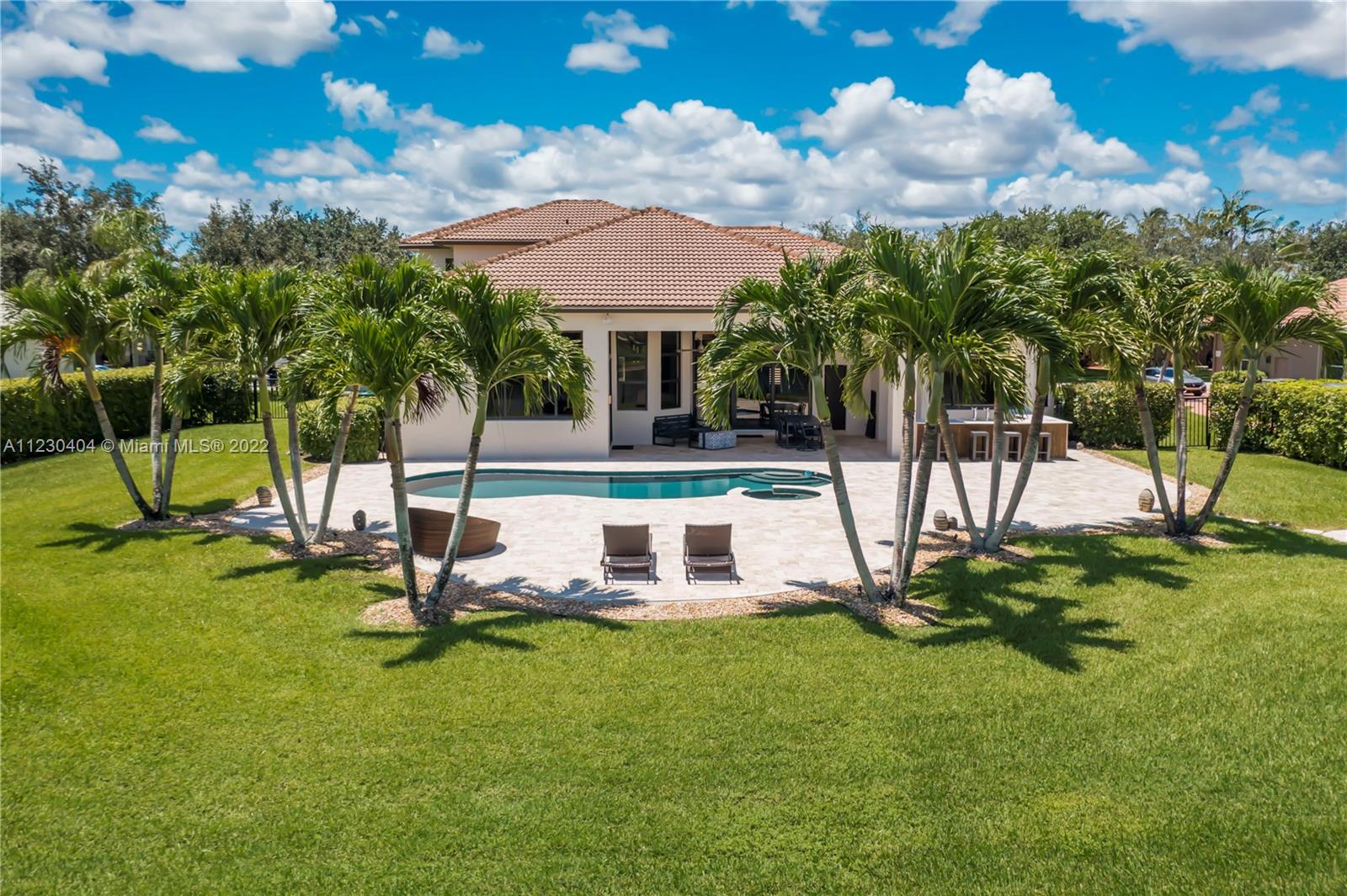 Gorgeous estate home in the sought-after community of Imagination Farms in Davie.  This marvelous 5 bedroom, plus den home, boasts luxurious details throughout; including double high ceilings, custom staircase with iron details, millwork throughout, expansive lake views, a fully remodeled custom designed kitchen open to the family space and impact windows throughout the home. The primary suite is found on the ground floor with a completely remodeled master bath. On the second level, find 3 additional bedrooms and 2 baths.  Enjoy South Florida living at its finest with a summer kitchen, sparkling pool and serene garden.  All with incredible views of the lake.  The maintained community offers recreational areas and playgrounds, as well as a manned 24hr gate.