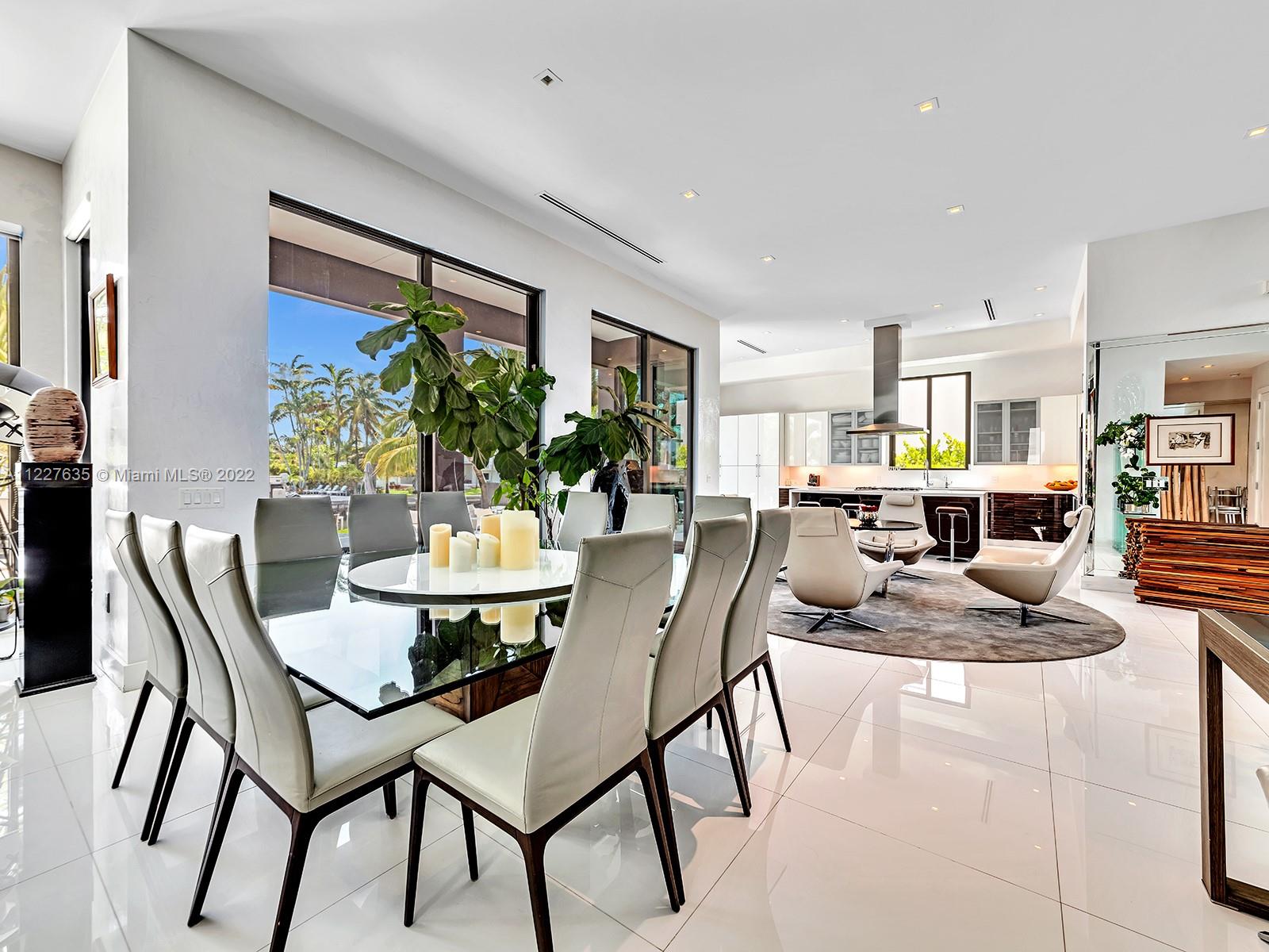 Located in exclusive and gated Sans Souci Estates known as North Miami's "hidden gem" is this modern two-story waterfront home with direct bay/ocean access. The 4,818 SF, six bedrooms + den/in-home office, seven bath home features a spacious floor plan with soaring 10 ft+ ceilings, a grand master suite including his/hers wood and leather finished walk-in closets and a massive balcony over looking the water. Open gourmet kitchen featuring Wolf gas cooktop, Sub-zero fridge/built in wine cooler. Complemented by custom-designed closets throughout the home for ample storage, a large laundry room, salt water pool, jacuzzi, private dock, boat lift, fish pond, two-car garage + four-car driveway. Short drive to the Beaches and some of the finest shopping, dining & entertainment.